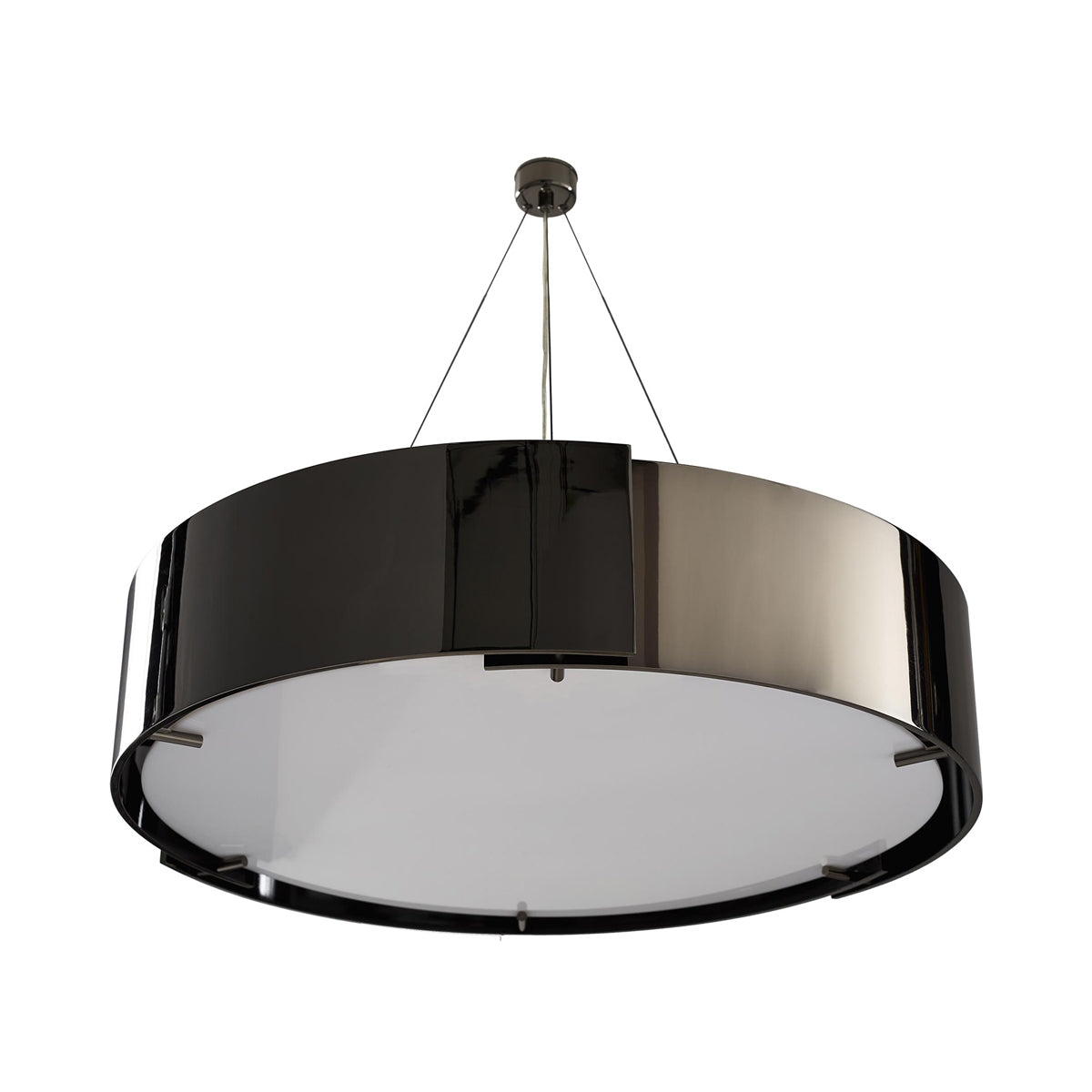 Easy design forms fashion a statement-making look in a modern space craving ambient lighting with tasteful aesthetics. The Dante Chandelier from Arteriors creates a round shade of sleek nickel bands that overlap and build a sense of unfinished edgy drama. Ambient light infuses downward through its frosted acrylic diffuser, as slender cables suggest a hint of industrial style.