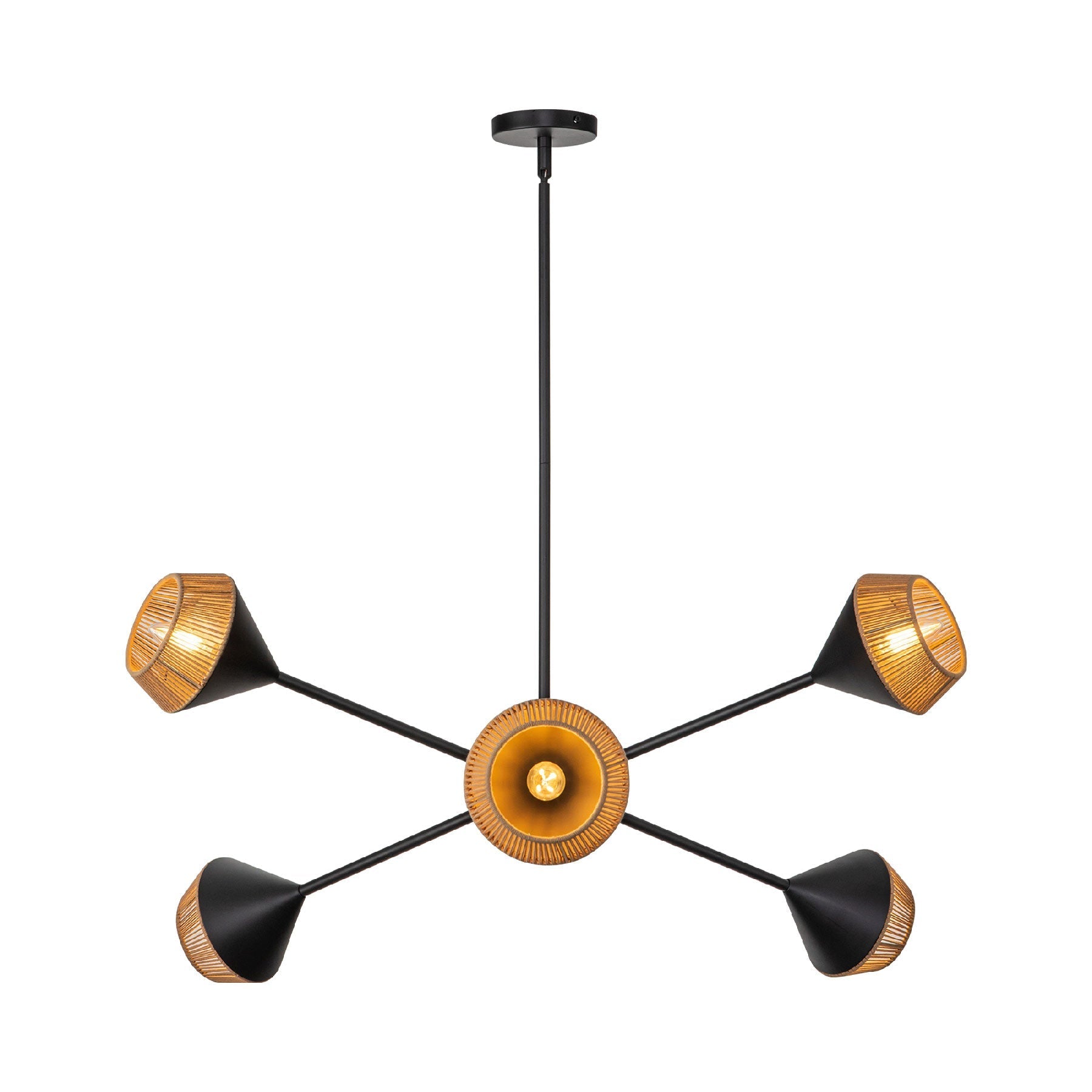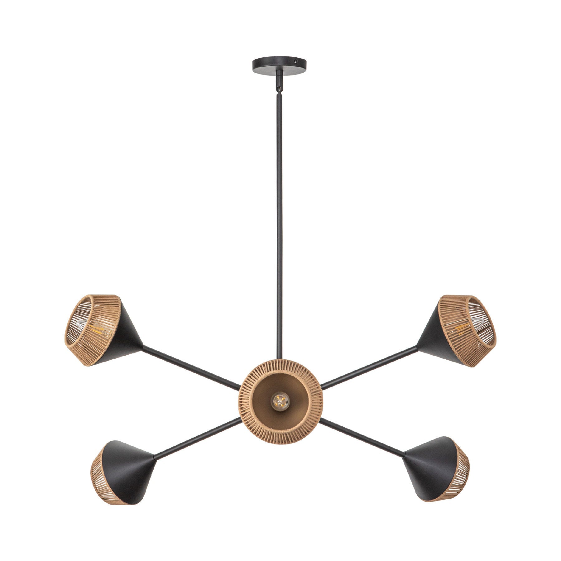 Eastern influence collides with mid-century character in the modern Daphne Chandelier from Alora Mood. Perfect for a patio or porch, it's a fresh design with petite lights that expand in various directions to create excellent illumination. Rope details and geometric shapes play up its retro allure to perfection.