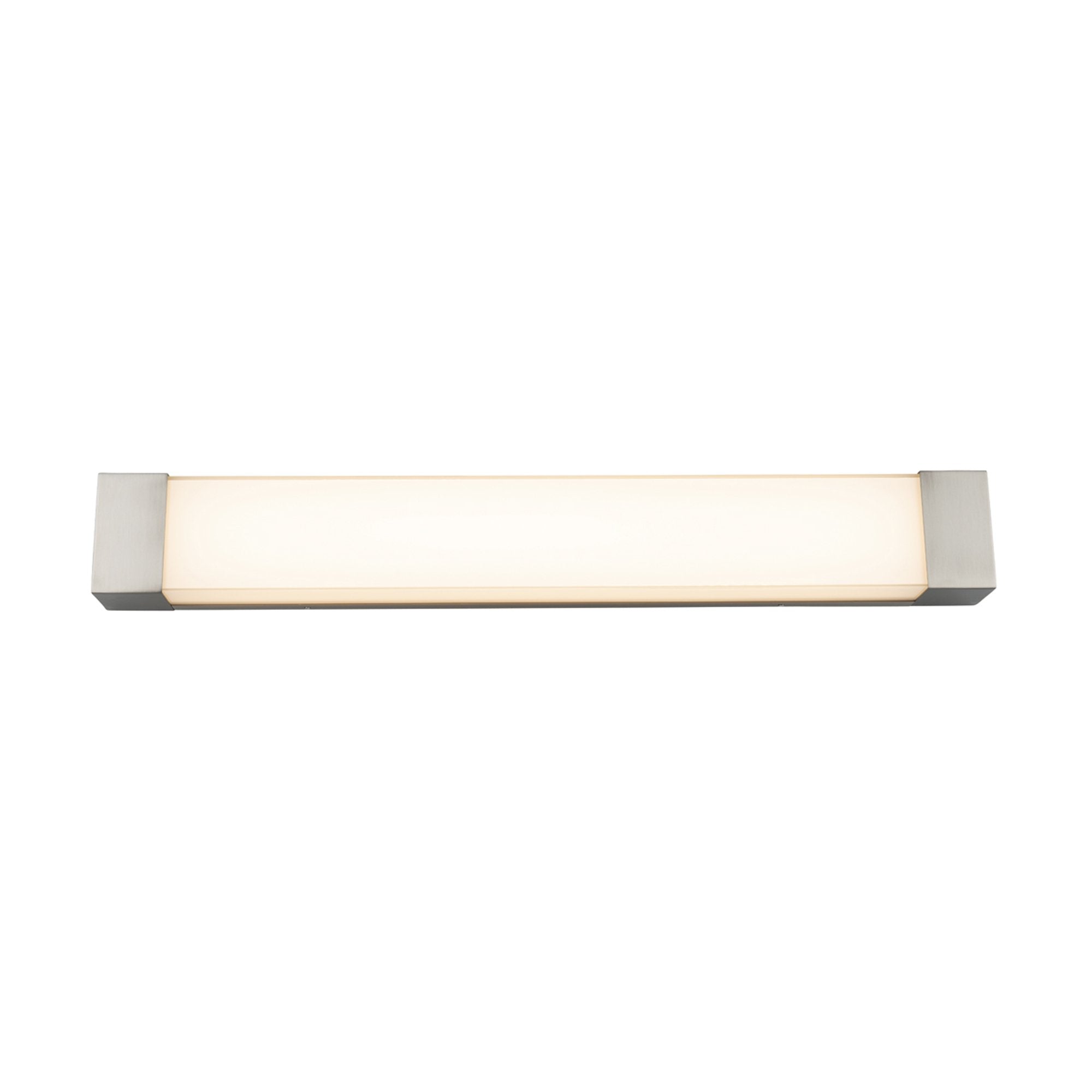 The Darcy LED Bath Vanity Light offers a classic aesthetic with Mid-Century Modern flavor and contemporary sensibility, fashioned of a silk screen mitered tempered glass diffuser with aluminum end caps available in a variety of customizing finishes.