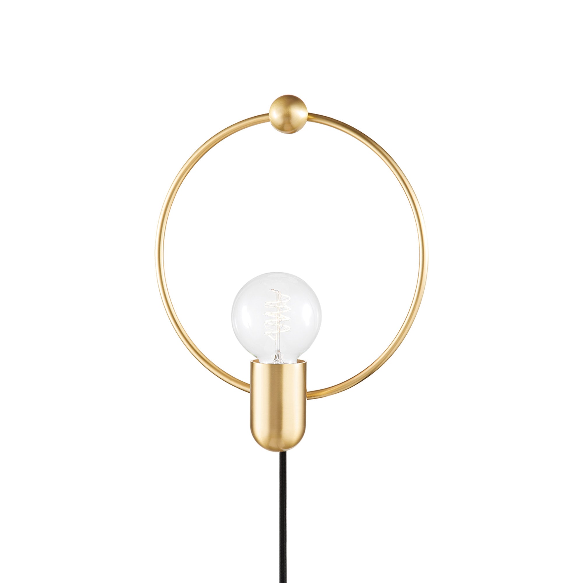 A sleek ring creates a halo-like silhouette against an exposed bulb in the minimalist modern Darcy Plug-In Wall Light from Mitzi. Understated and elegant, this versatile contemporary wall light offers an entrancing orbital effect to bedroom nightstands, hallways and other functional spaces.