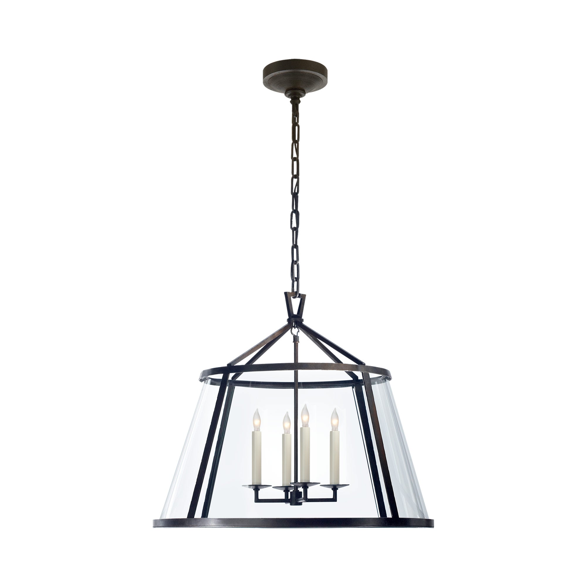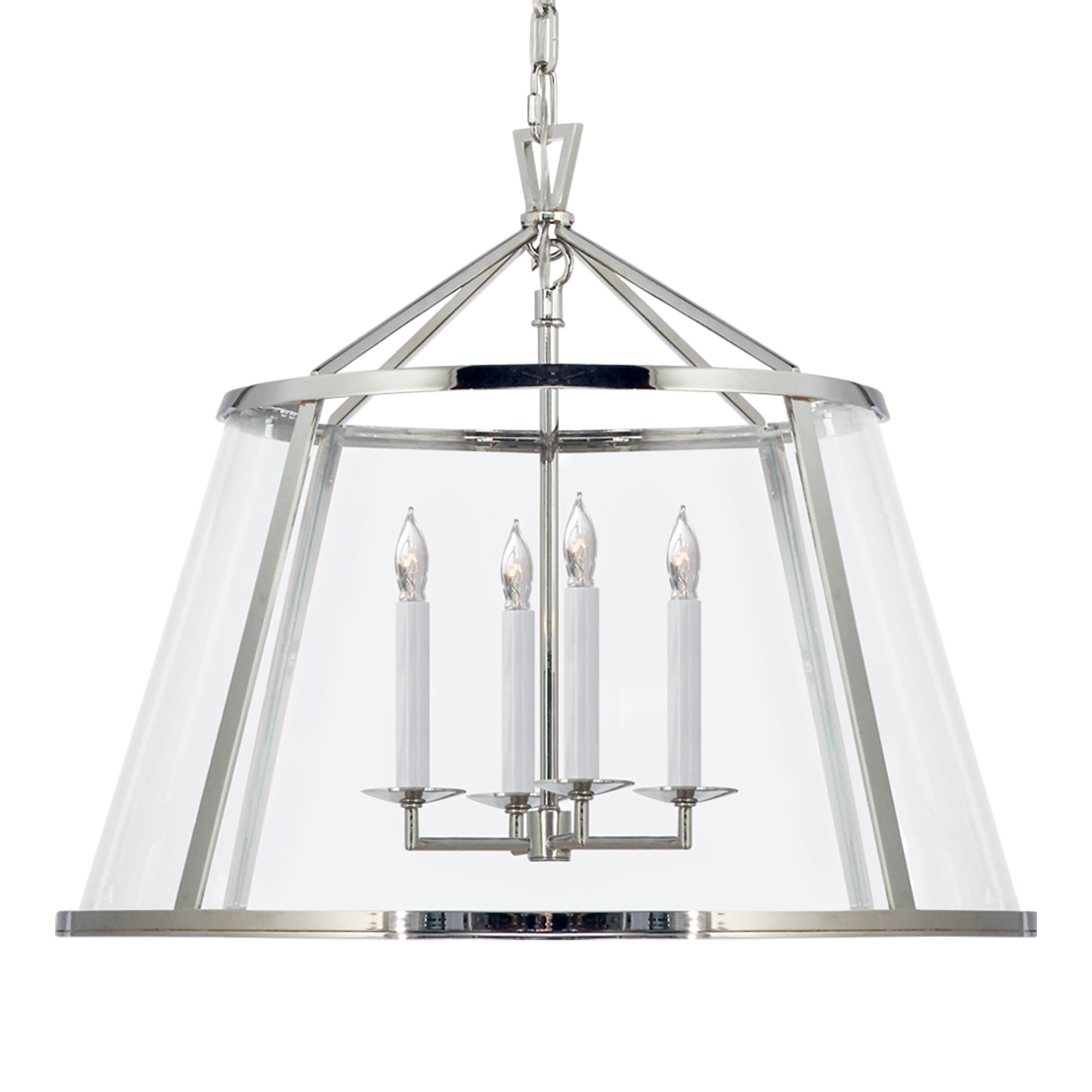 Choose an eye-catching version of conventional style with the impressive Darlana Drum Pendant Light from Visual Comfort Signature. Alternative design elements create a round drum shade to a fixture found mostly with lantern silhouetting, bringing fashion and festivity in a single fixture. Clear glass panels and a metal frame and accents join the iconic look of candelabra-style bases.