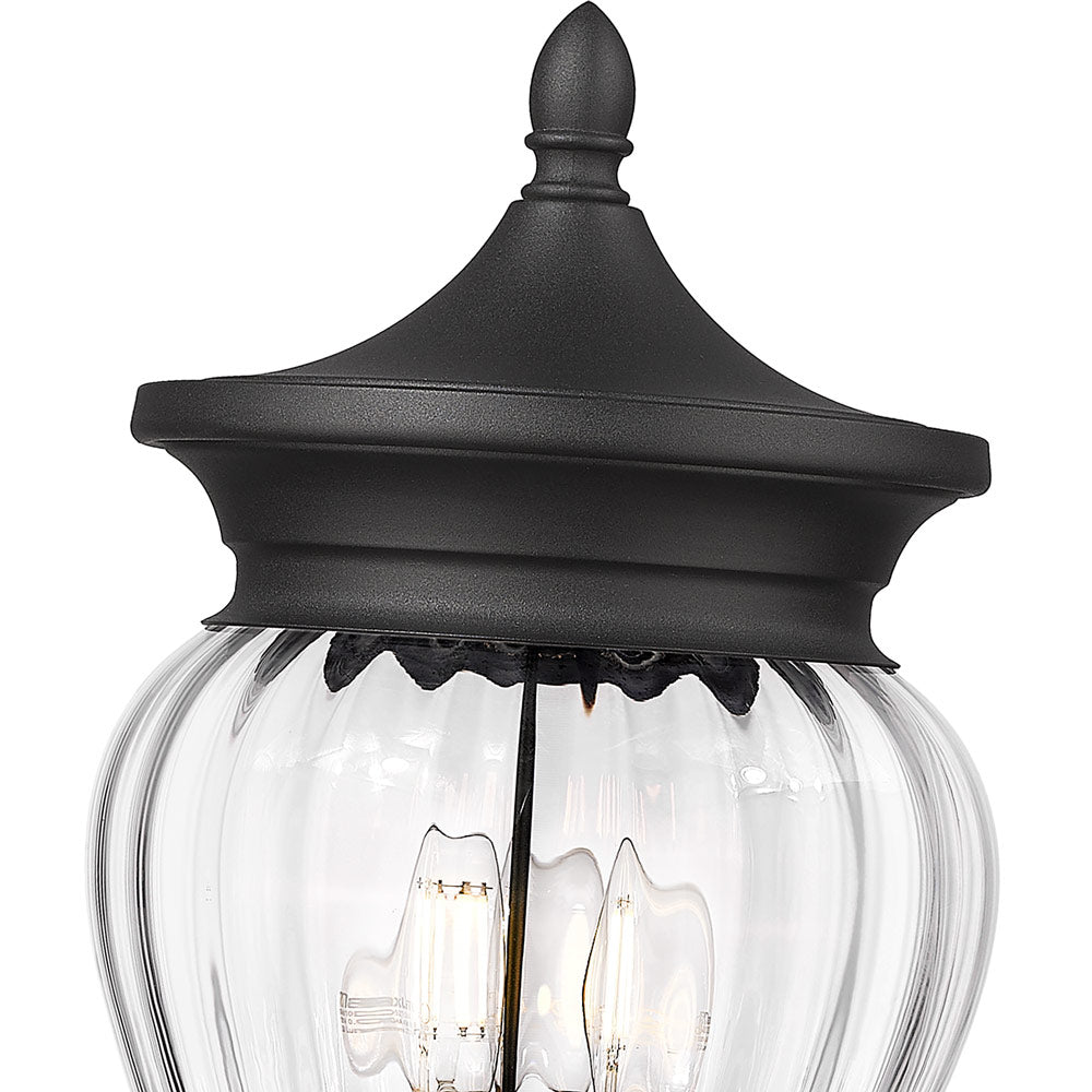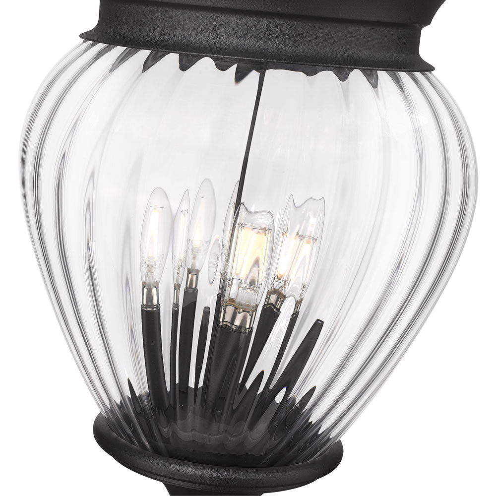 Just the right level of charming accent detail shapes a story of village attitude as the Davina Outdoor Sleek Post Light from Z-Lite transforms a yard space or walkway. A shapely form fashioned of black finish aluminum is lightweight and elegant, giving way to an assortment of intricate updates. Candelabra light mounts and clear ribbed glass finish a delightful aesthetic perfect for adding character.