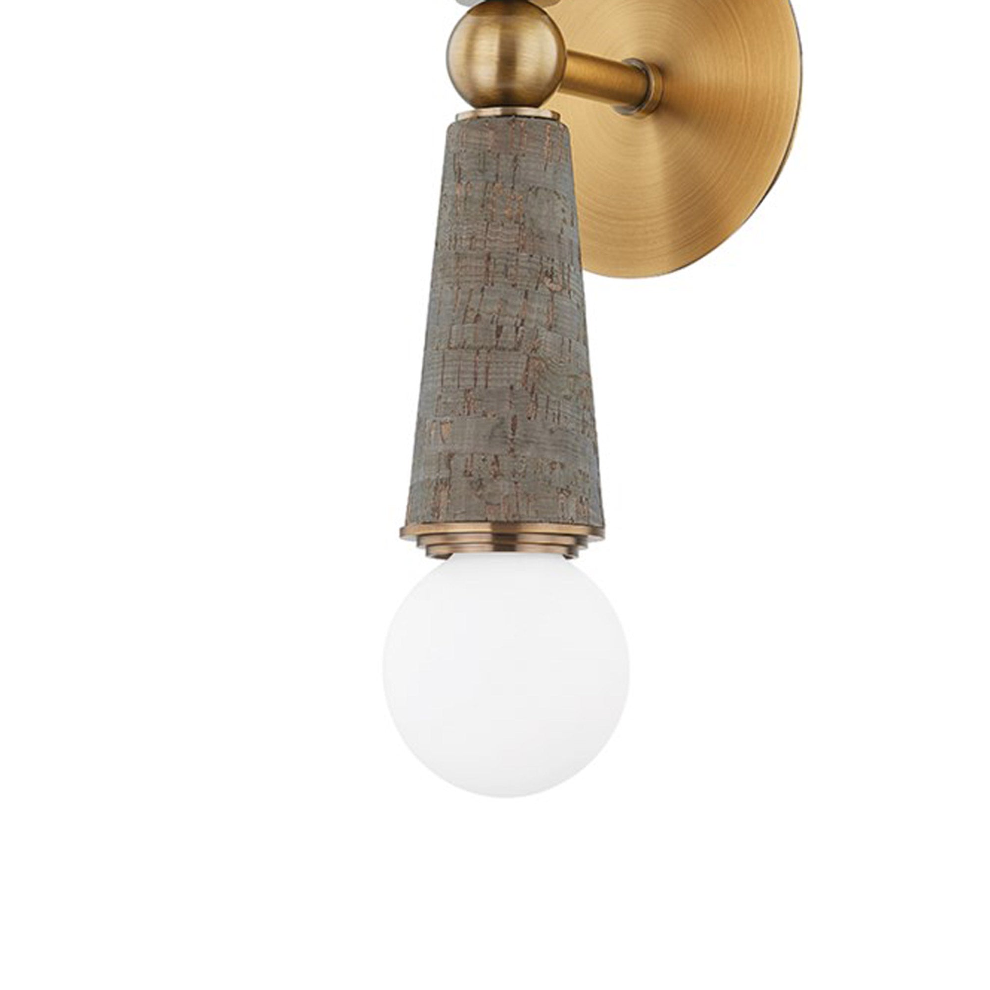 Soothing finishes and materials converge in a decadent way to craft a light fixture that softens a modern space. The Dax Wall Light from Troy Lighting delivers with a pleasing tapered silhouette and conical framing made of slate gray cork. Patina brass accents magnify the exquisite look of an intricately designed sconce featuring festive glass globes.