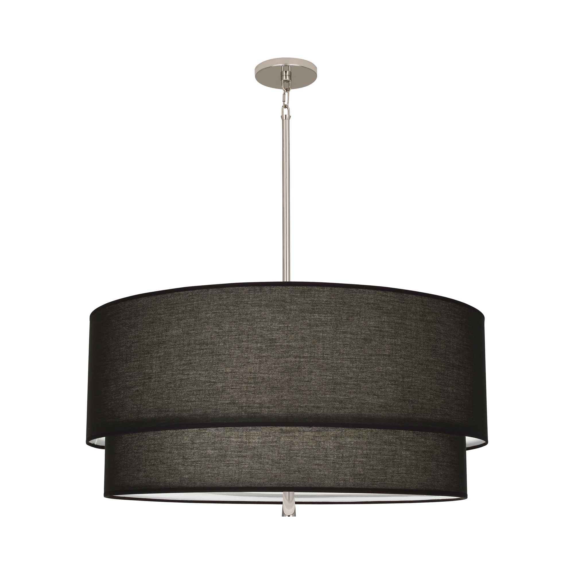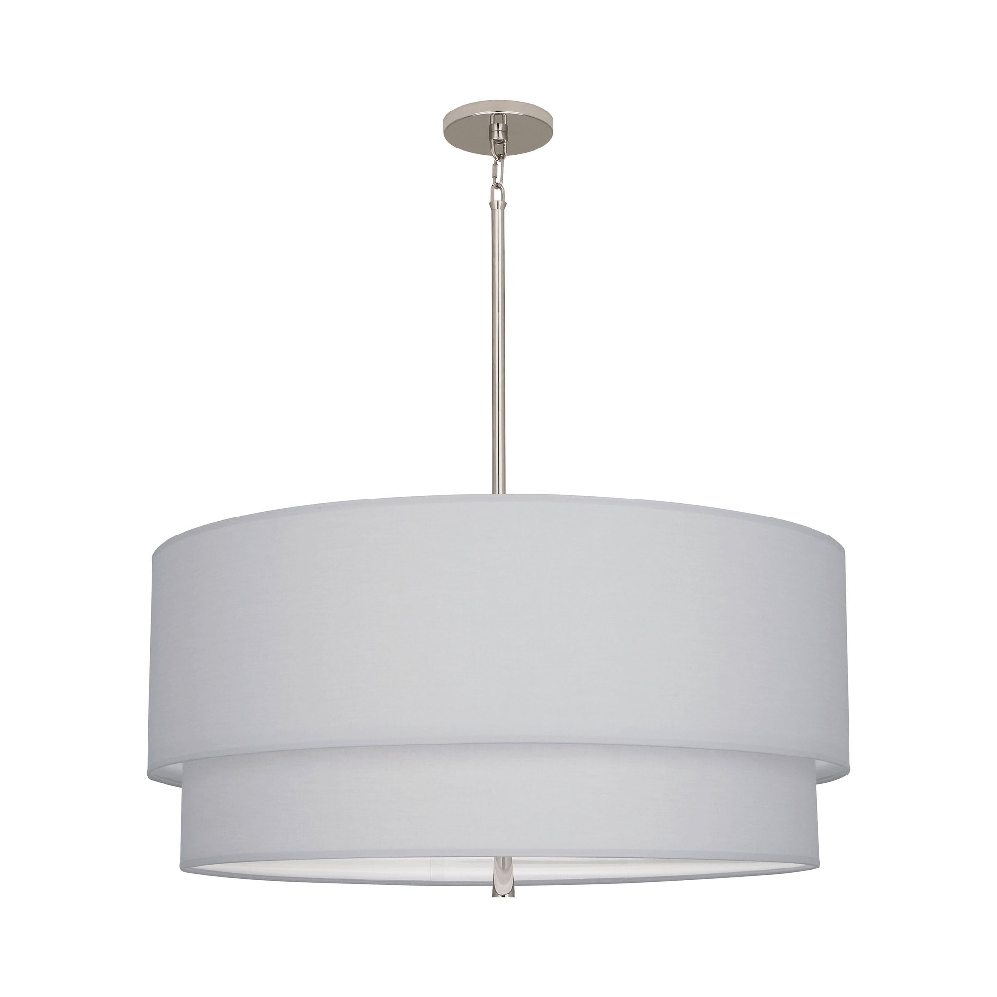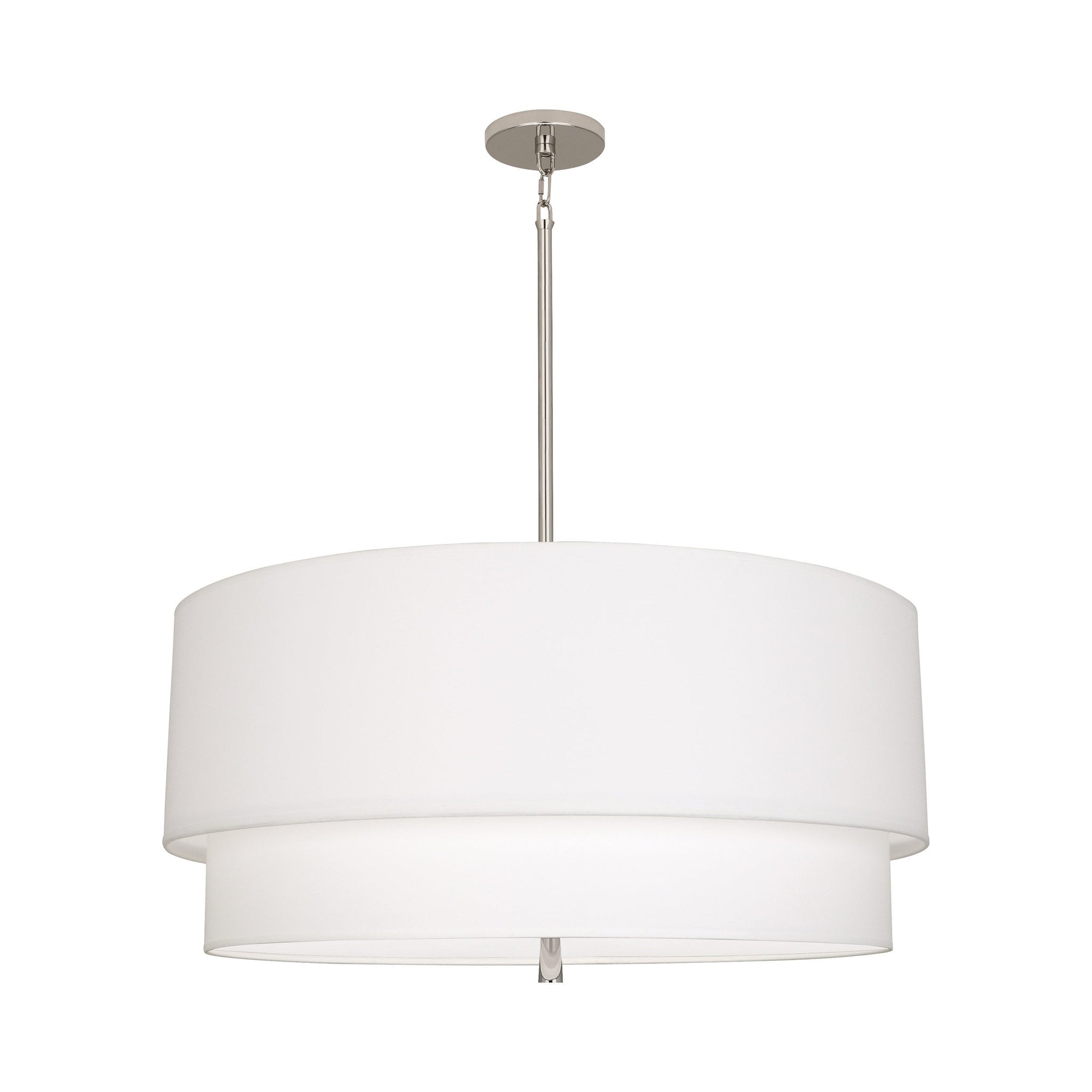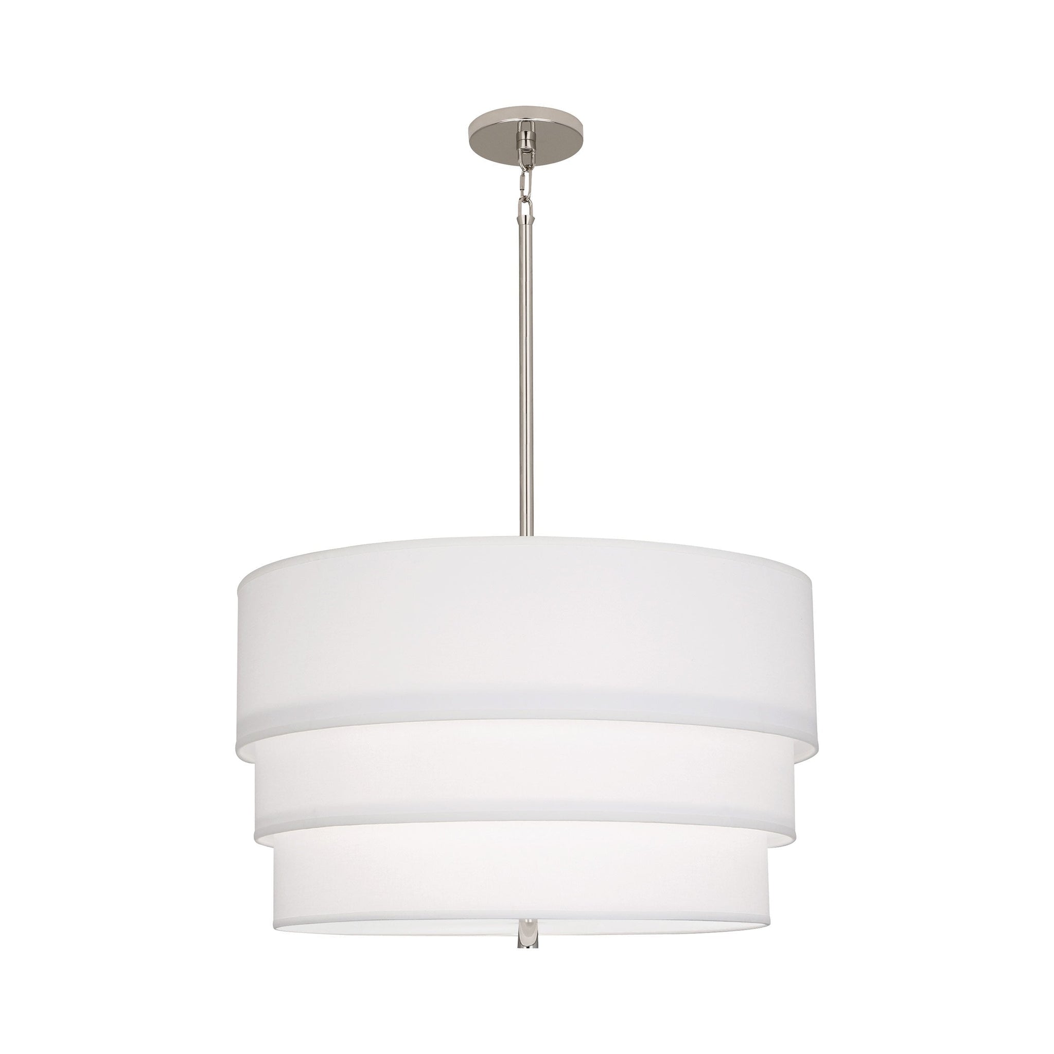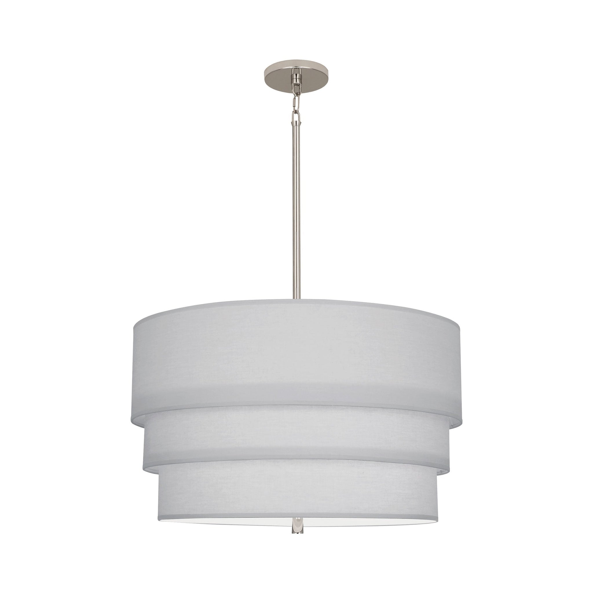 A tiered design offers layers of elegance lending sophistication to the Decker Drum Pendant Light from Robert Abbey, creating a noteworthy retro flavor and fresh, inspiring accents in a living space or bedroom.