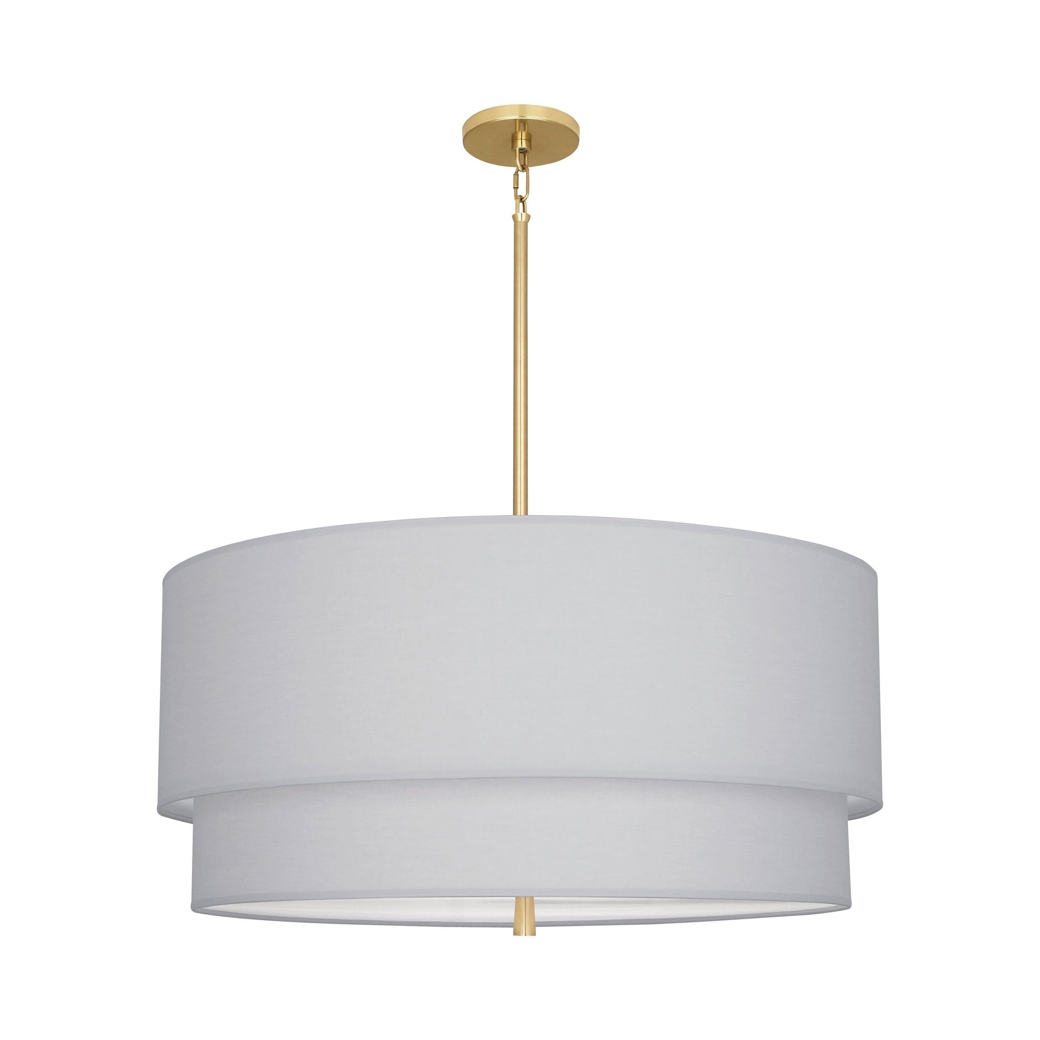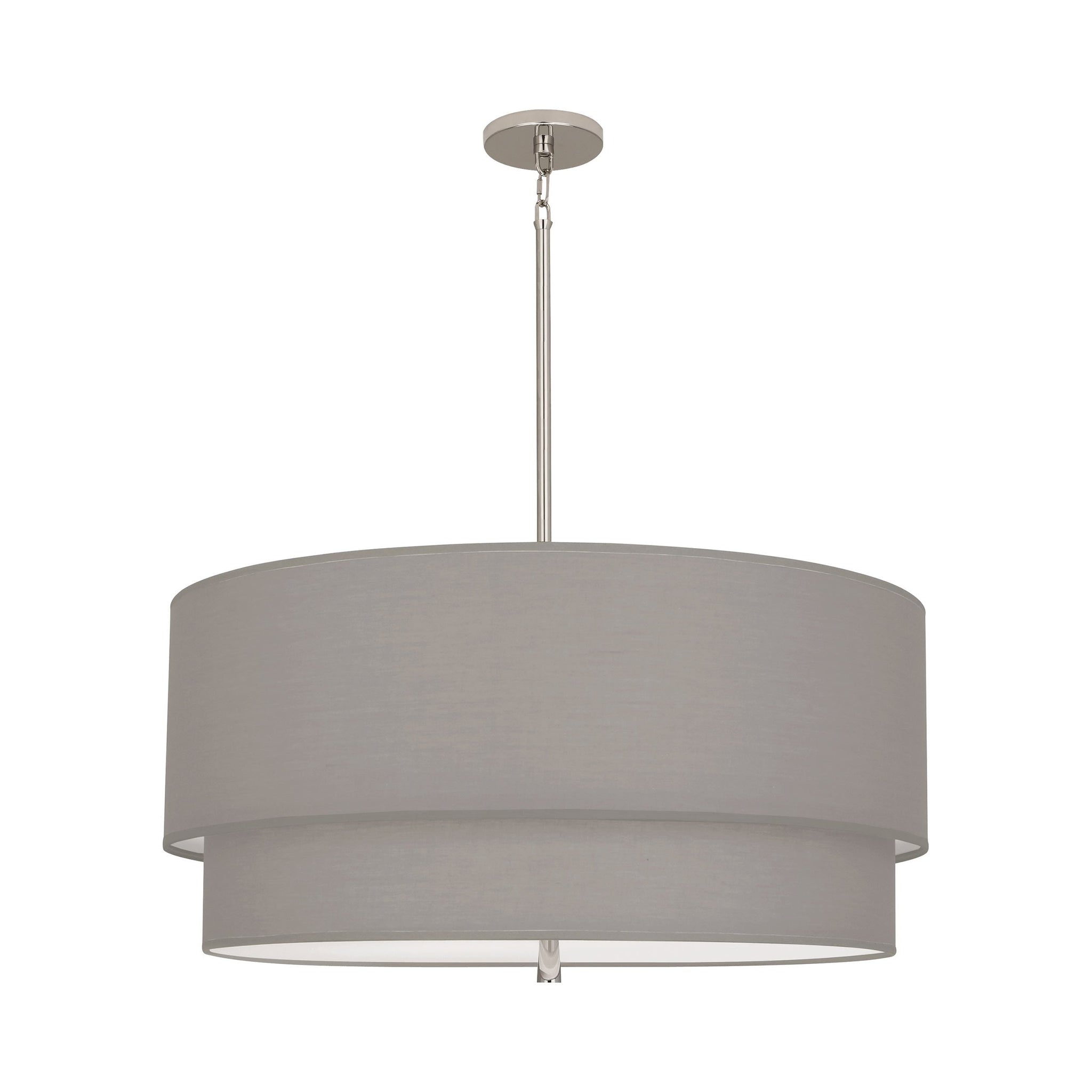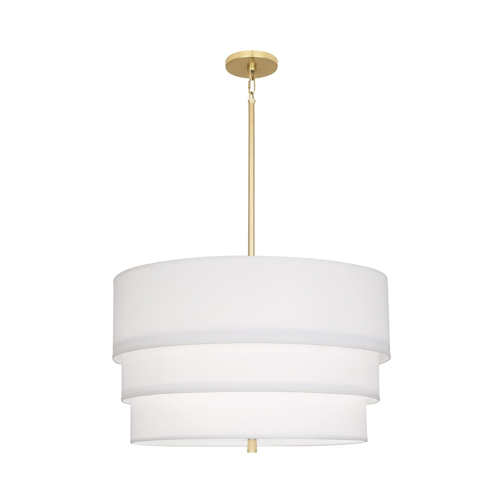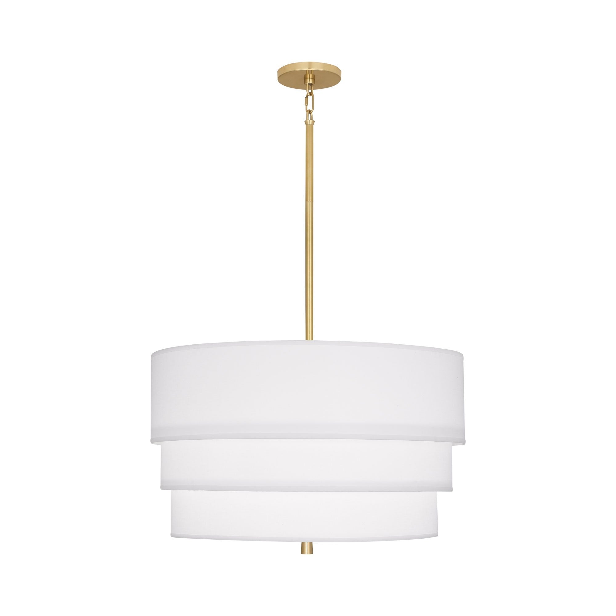 A tiered design offers layers of elegance lending sophistication to the Decker Drum Pendant Light from Robert Abbey, creating a noteworthy retro flavor and fresh, inspiring accents in a living space or bedroom.