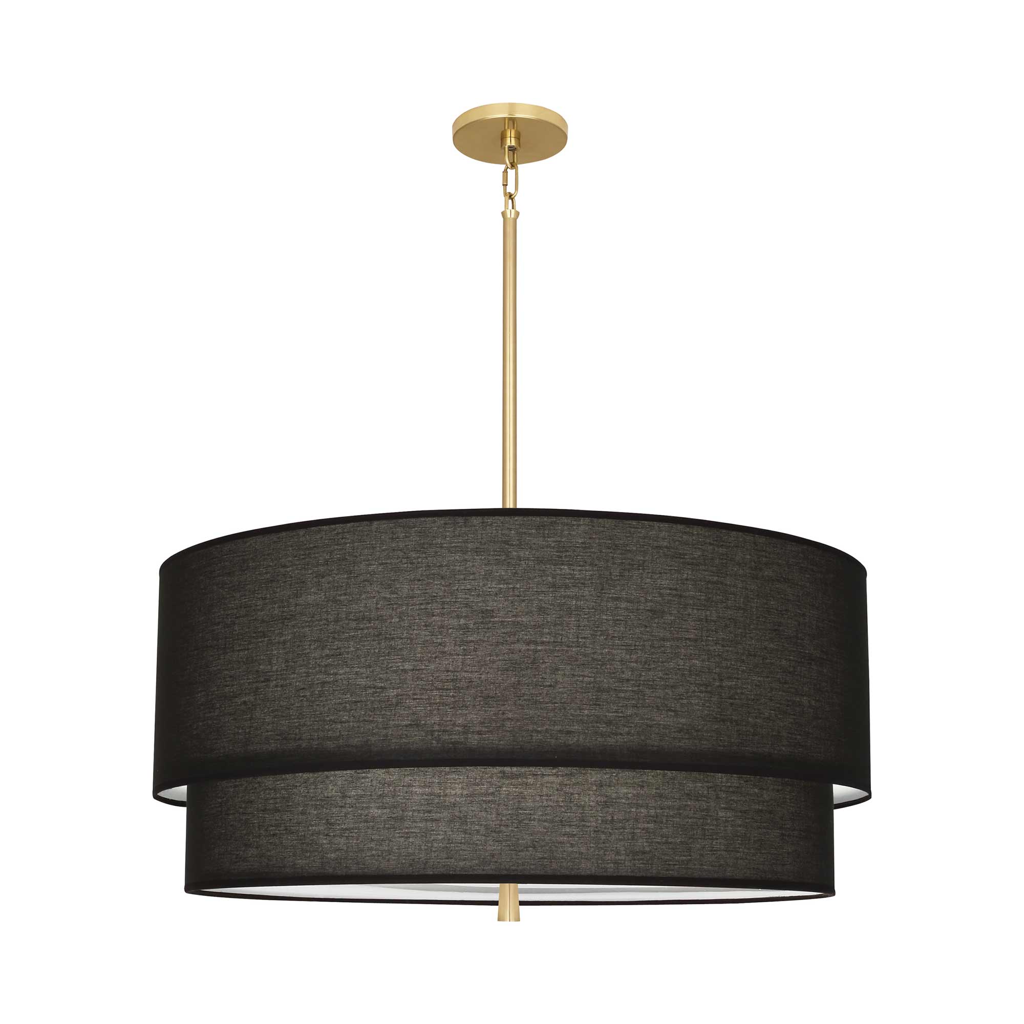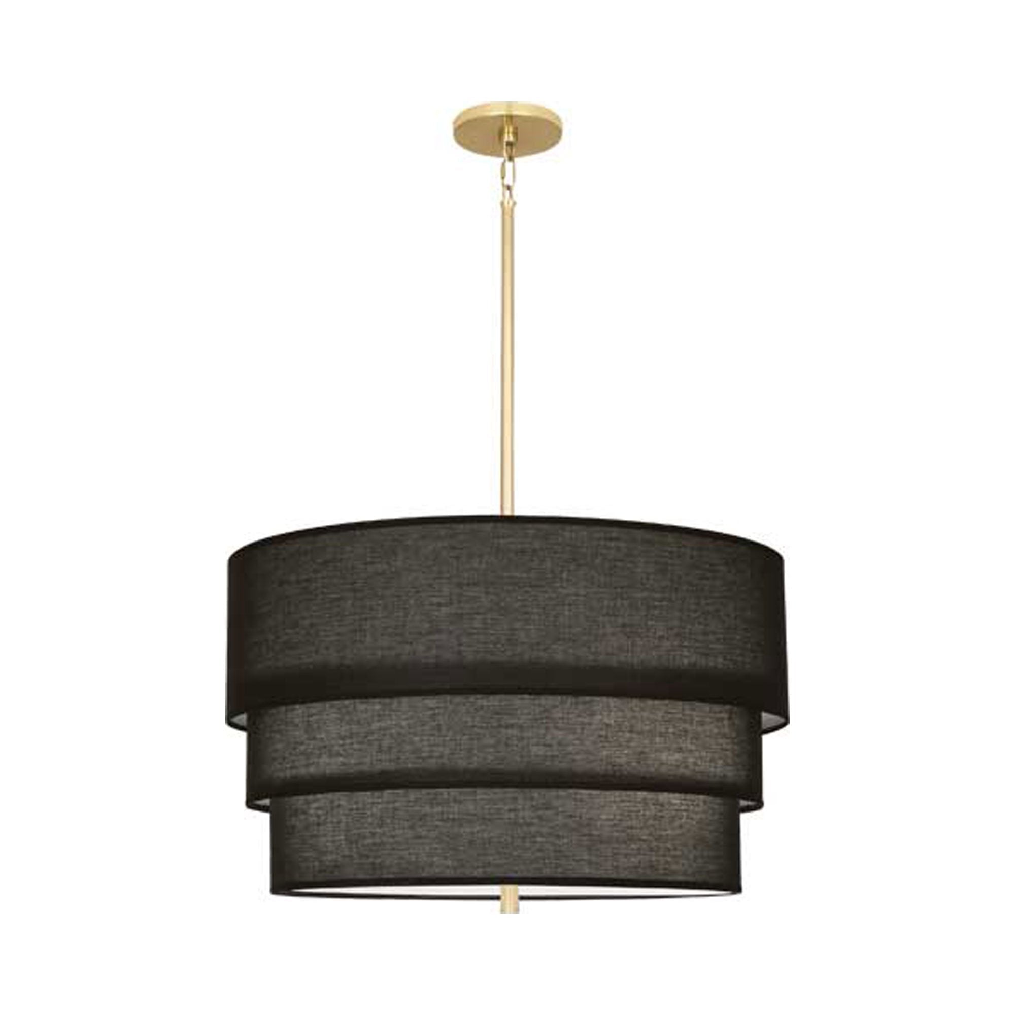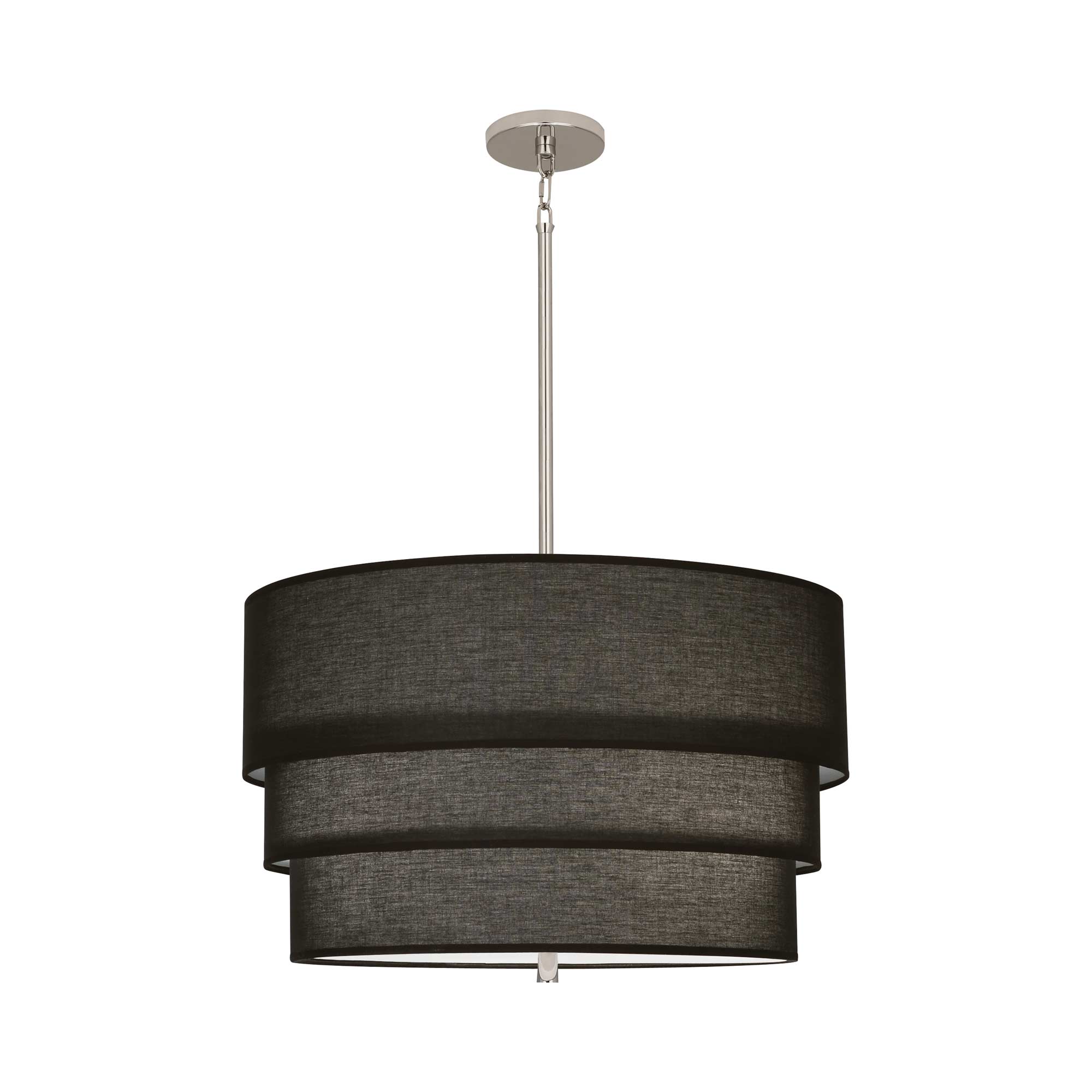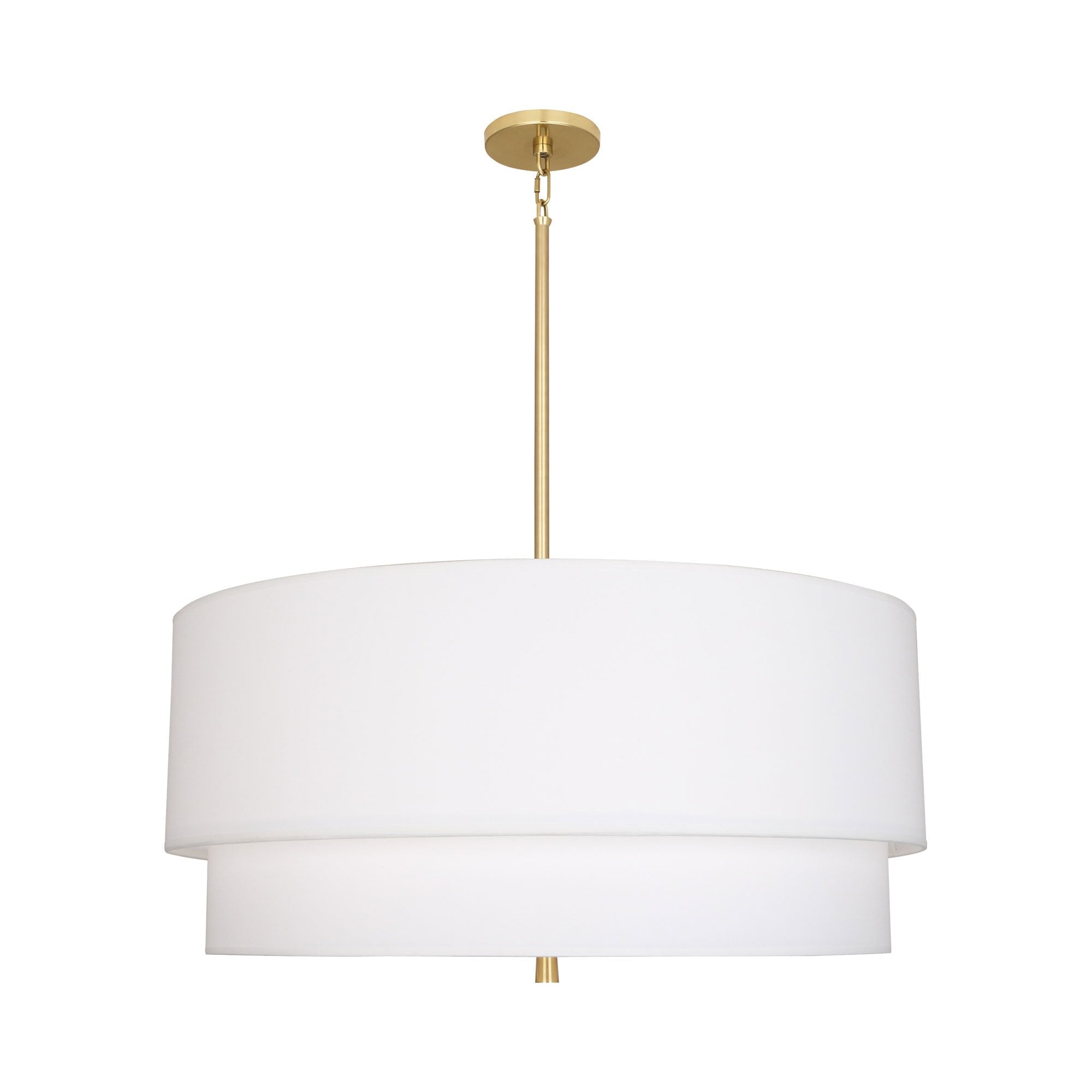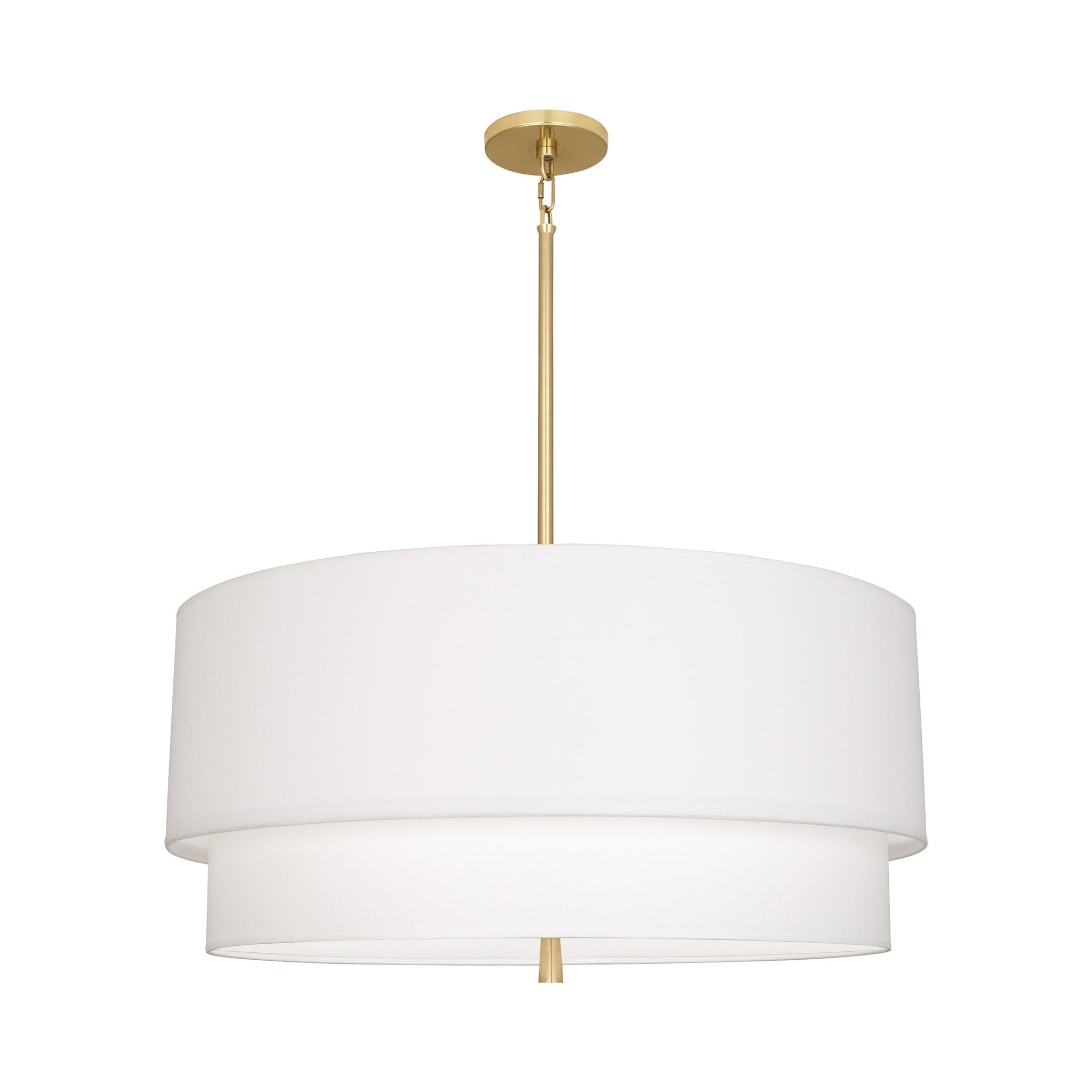 A tiered design offers layers of elegance lending sophistication to the Decker Drum Pendant Light from Robert Abbey, creating a noteworthy retro flavor and fresh, inspiring accents in a living space or bedroom.