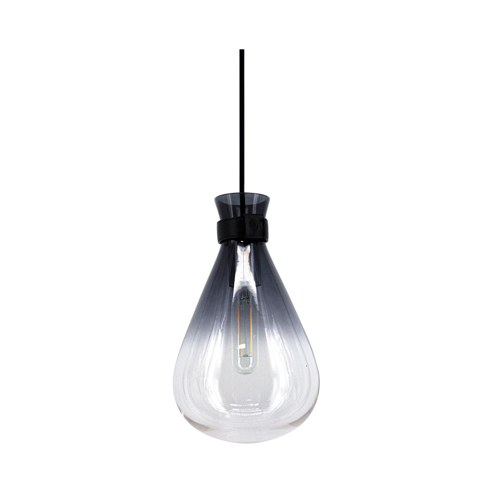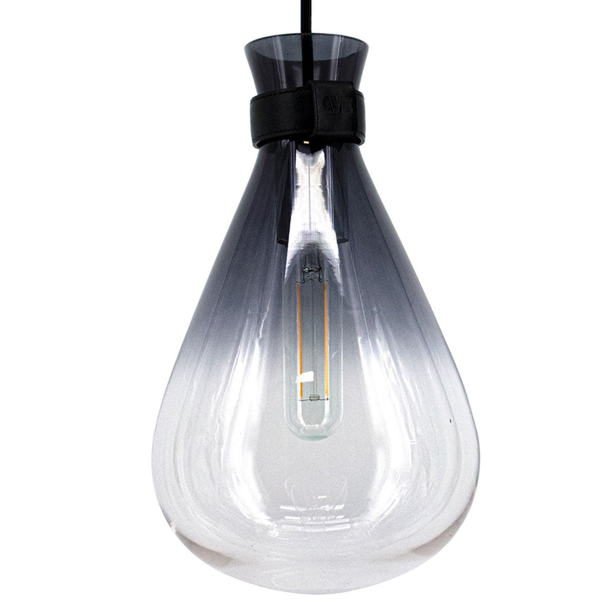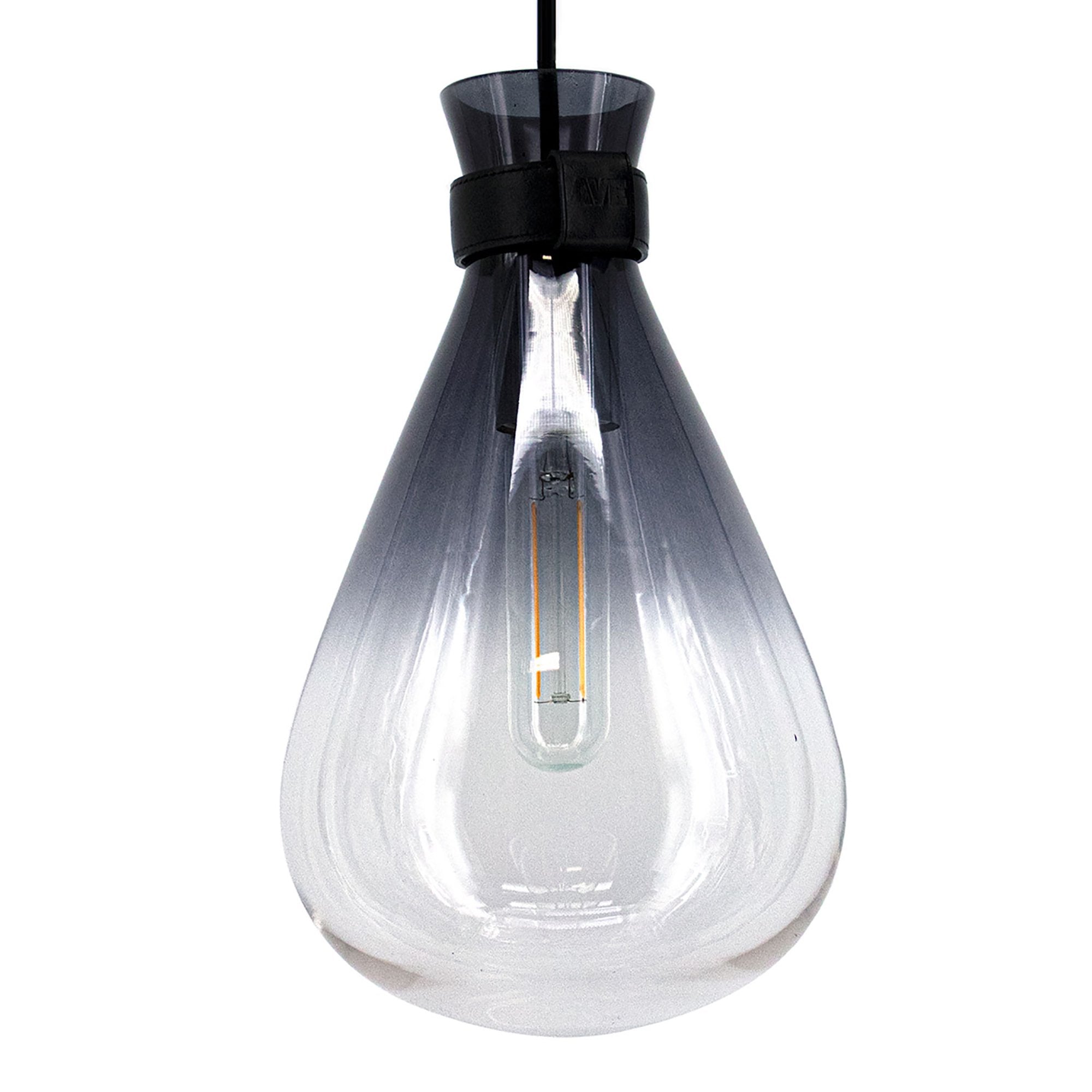 The Del Mar Pendant Light indoor light pendant combines modern style with modest details. The pendant's glass shade is transparent at the top then gradually transitions into a frosted pattern at the base giving this collection a trendy ombre style. Detailed with an AVE logo leather buckle for a unique touch.