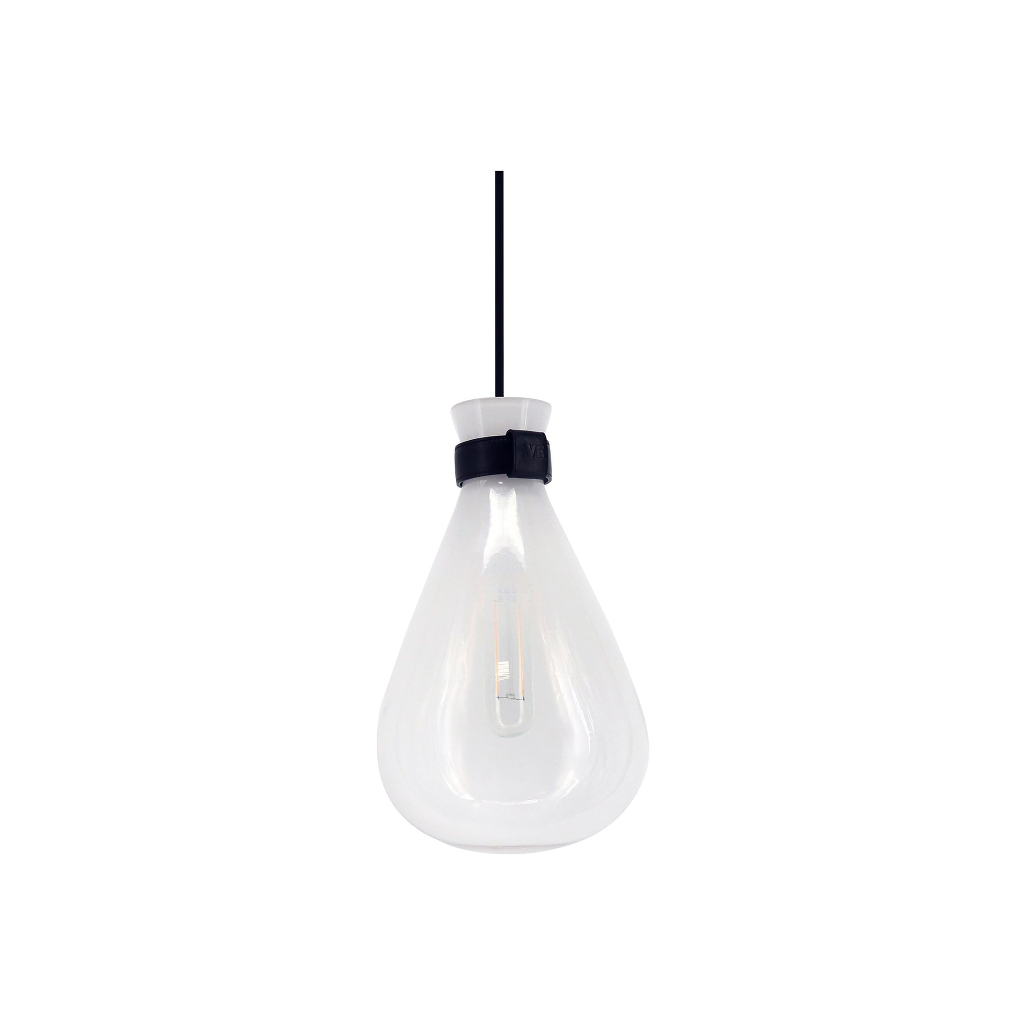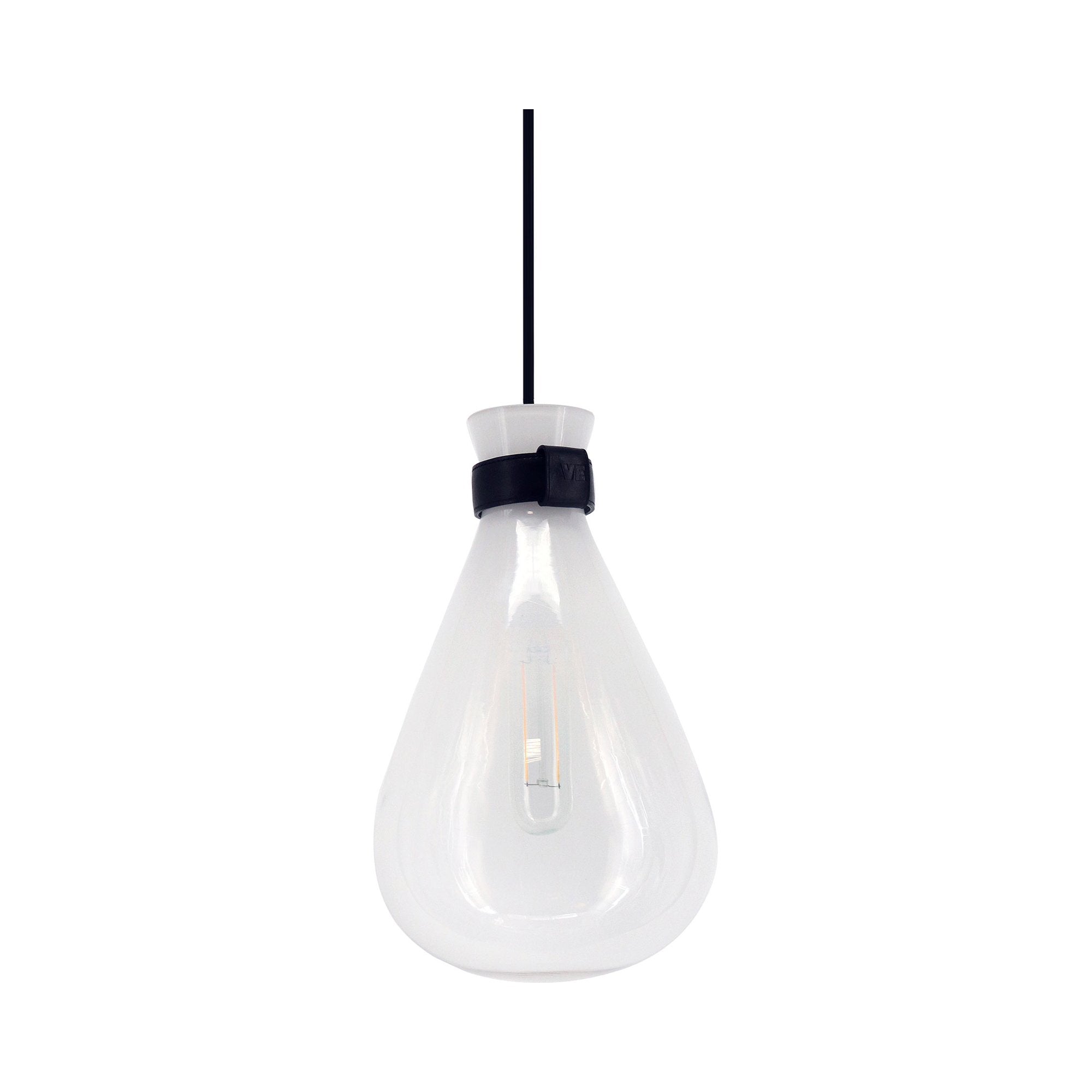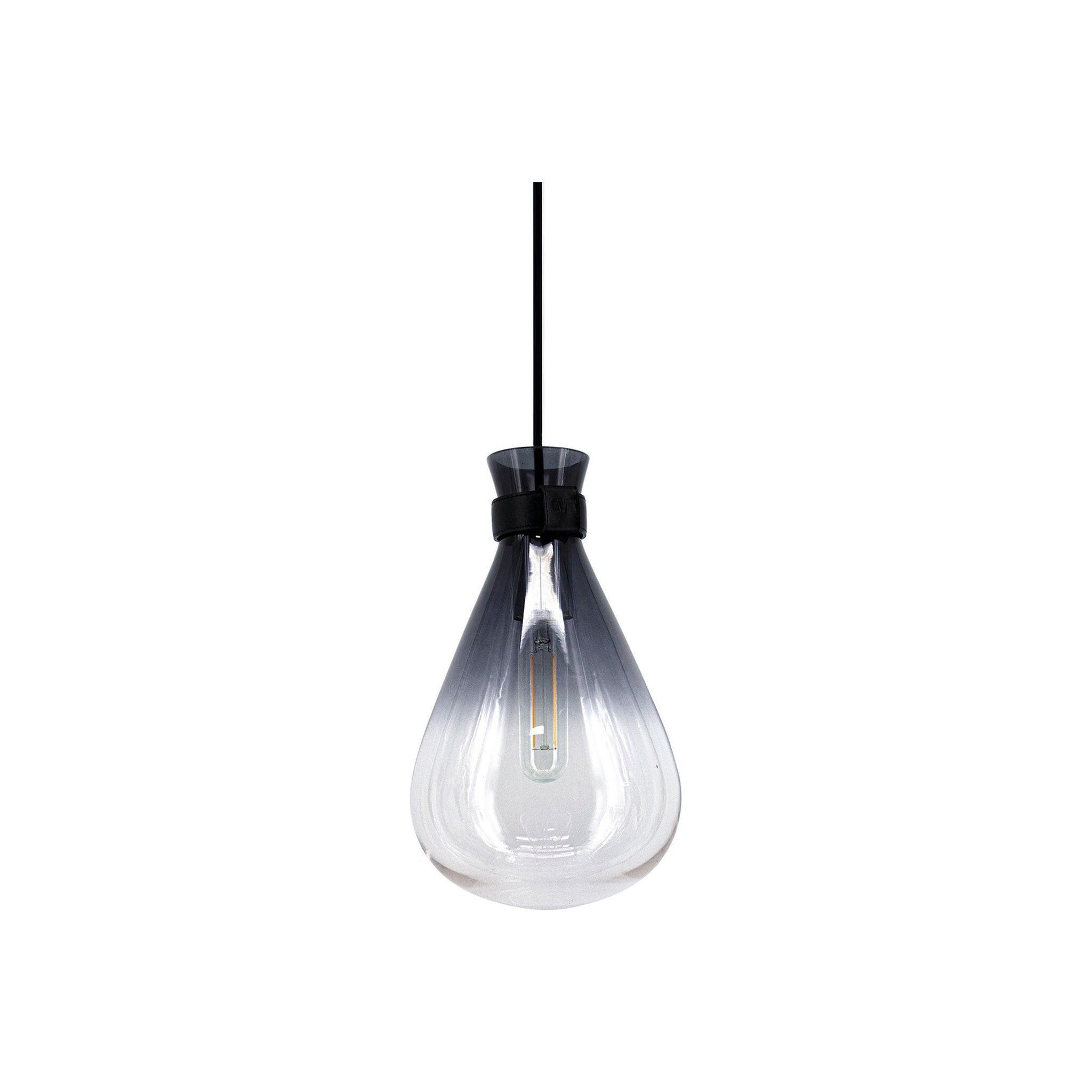 The Del Mar Pendant Light indoor light pendant combines modern style with modest details. The pendant's glass shade is transparent at the top then gradually transitions into a frosted pattern at the base giving this collection a trendy ombre style. Detailed with an AVE logo leather buckle for a unique touch.