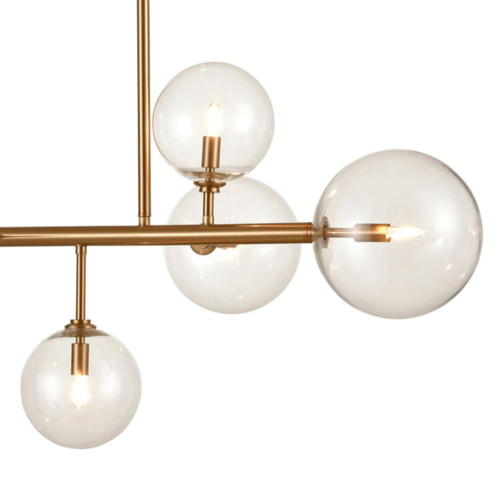 The Delilah Chandelier is our way of paying homage to iconic mid-century modern lighting, our eye-catching aged brass chandelier features 7 generously sized glass spheres on a solid steel frame. Clear glass globes provide dramatic illumination, while the sleek, angular frame adds architectural style.