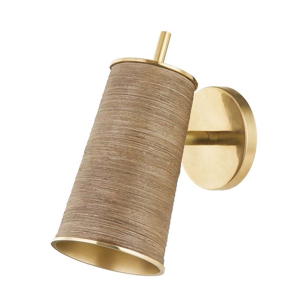 Indulgent organic artistry adopts a simple silhouette to deliver elegance in a light fixture with versatility. A long semi-conical shade wrapped in natural rattan begins a coastal-inspired look that makes the Delran Wall Light from Hudson Valley Lighting a true contender. Accented with aged brass metal elements, this chic fixture toes the line between minimalism and sophistication.