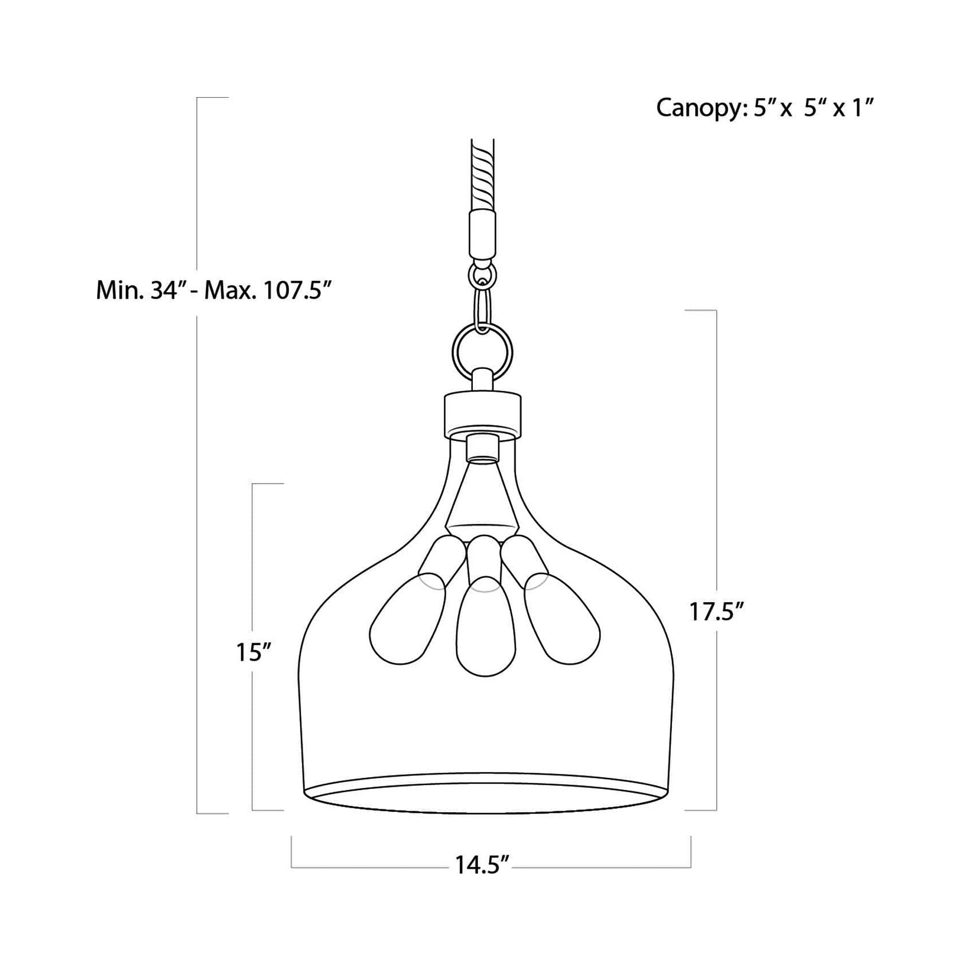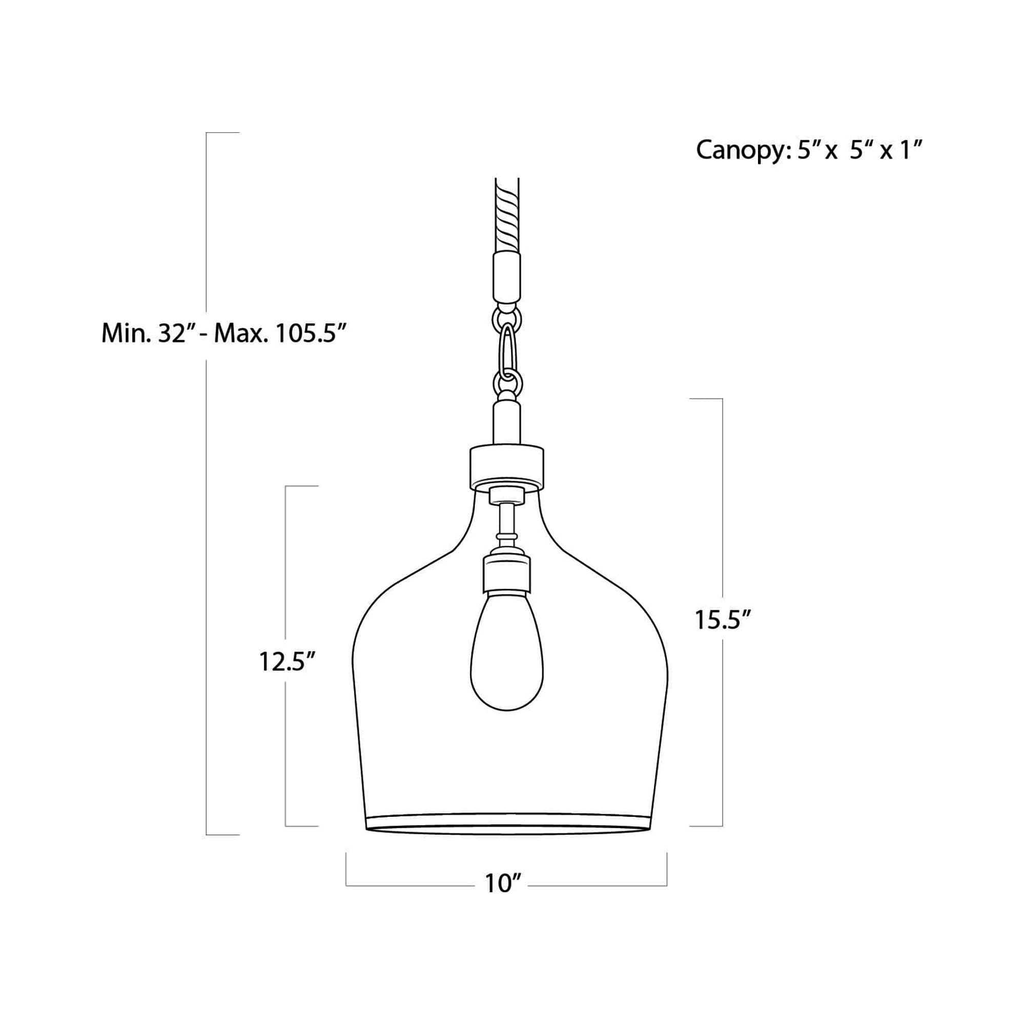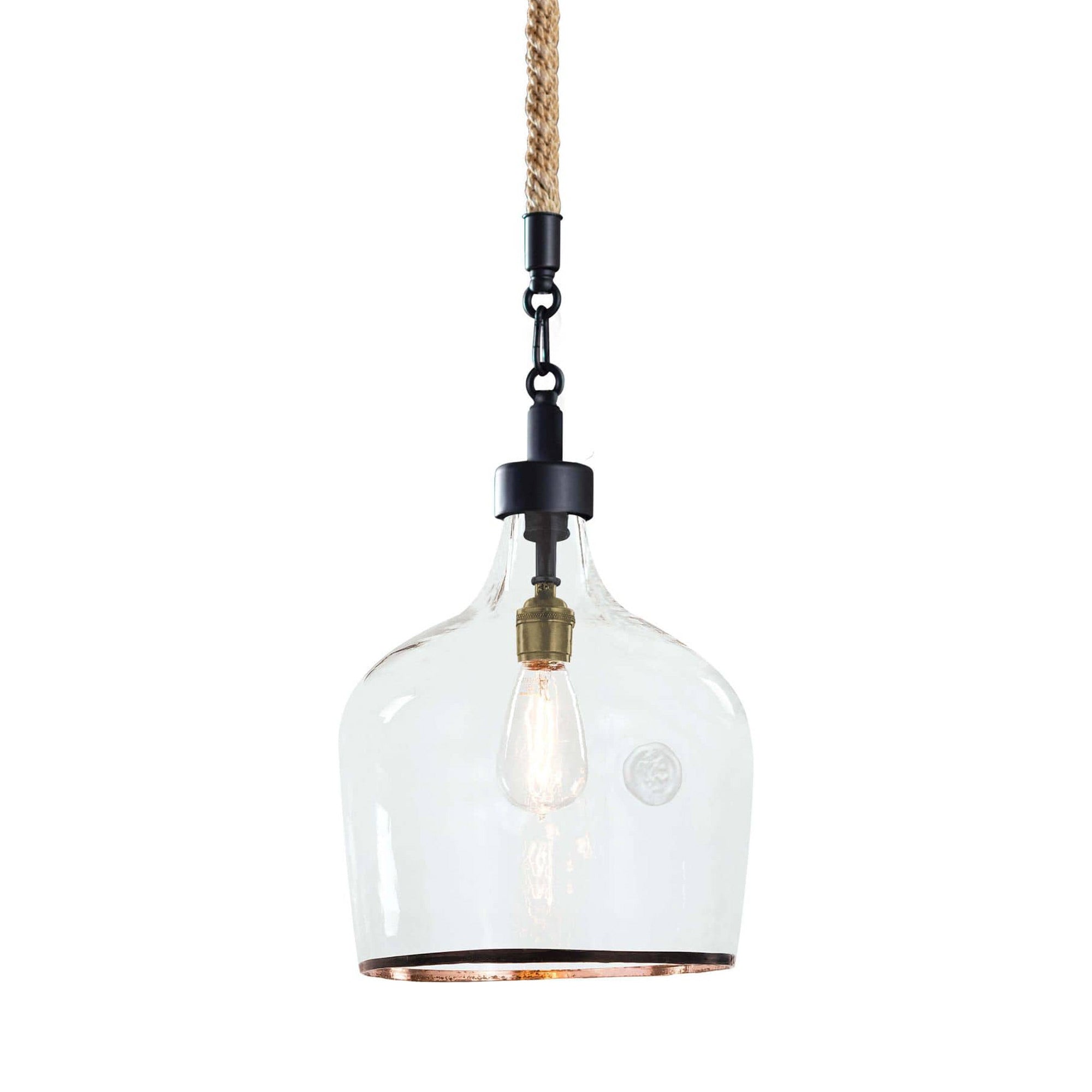 A classic marriage of glass and metal reinvents itself in the Demi Pendant Light from Regina Andrew, delivering sophisticated charm and a hint of farmhouse style. Diminutive in size, this pendant lights up a nook or reading space as it sparkles with a clear glass shade, as black finish metal and black shade rimming join a rope cord to preserve an island influence.