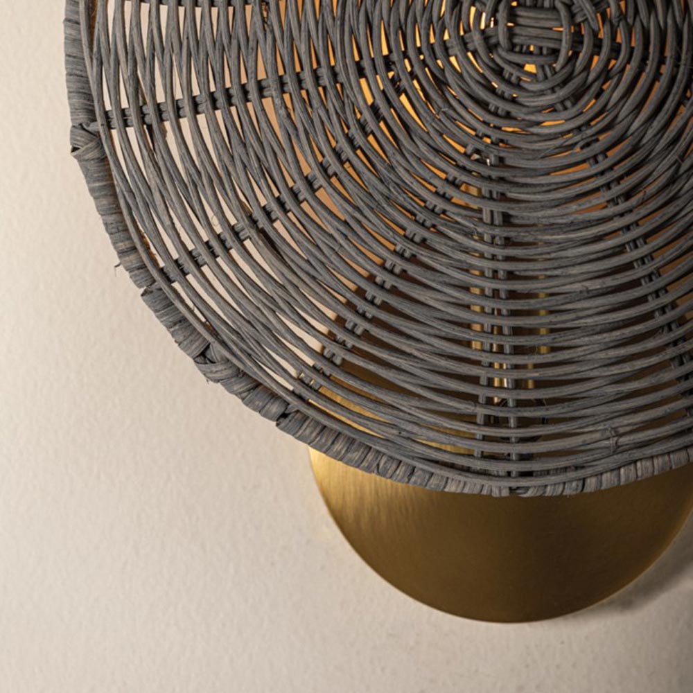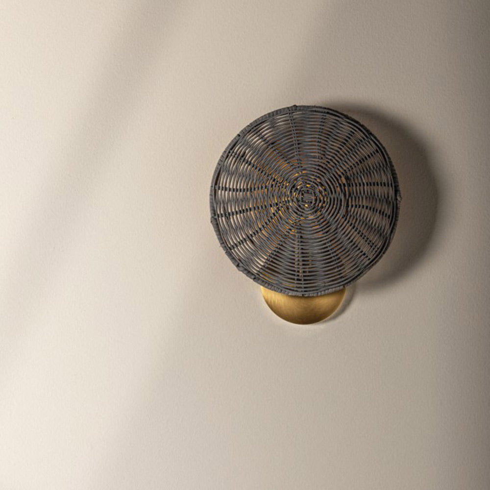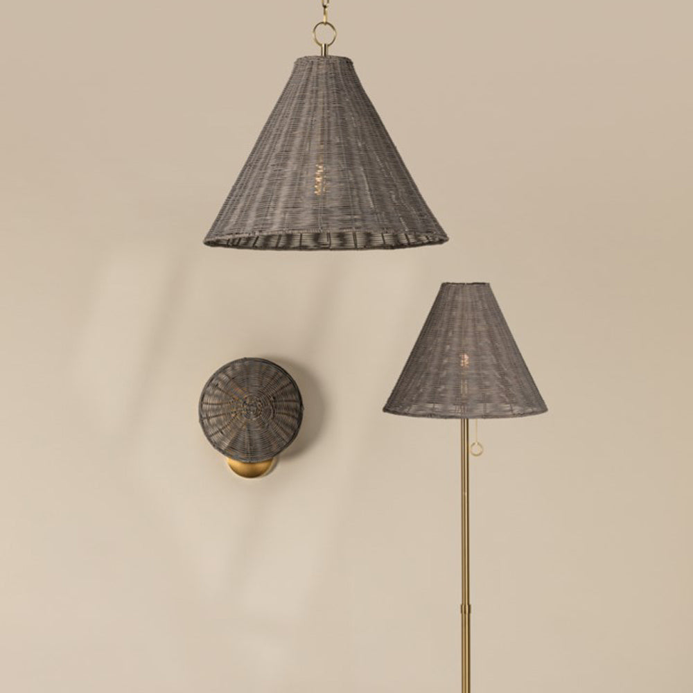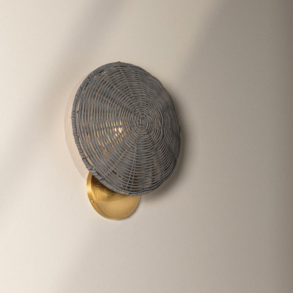 Natural wicker creates refreshing texture and dimension for the Destiny Wall Light from Mitzi. Imparting casual character in a living area or bedroom, it pairs a round wall plate and aged brass finish with a soft gray wicker shade through which illumination glows to striking effect. A chic addition in a modern coastal or upscale farmhouse setting.