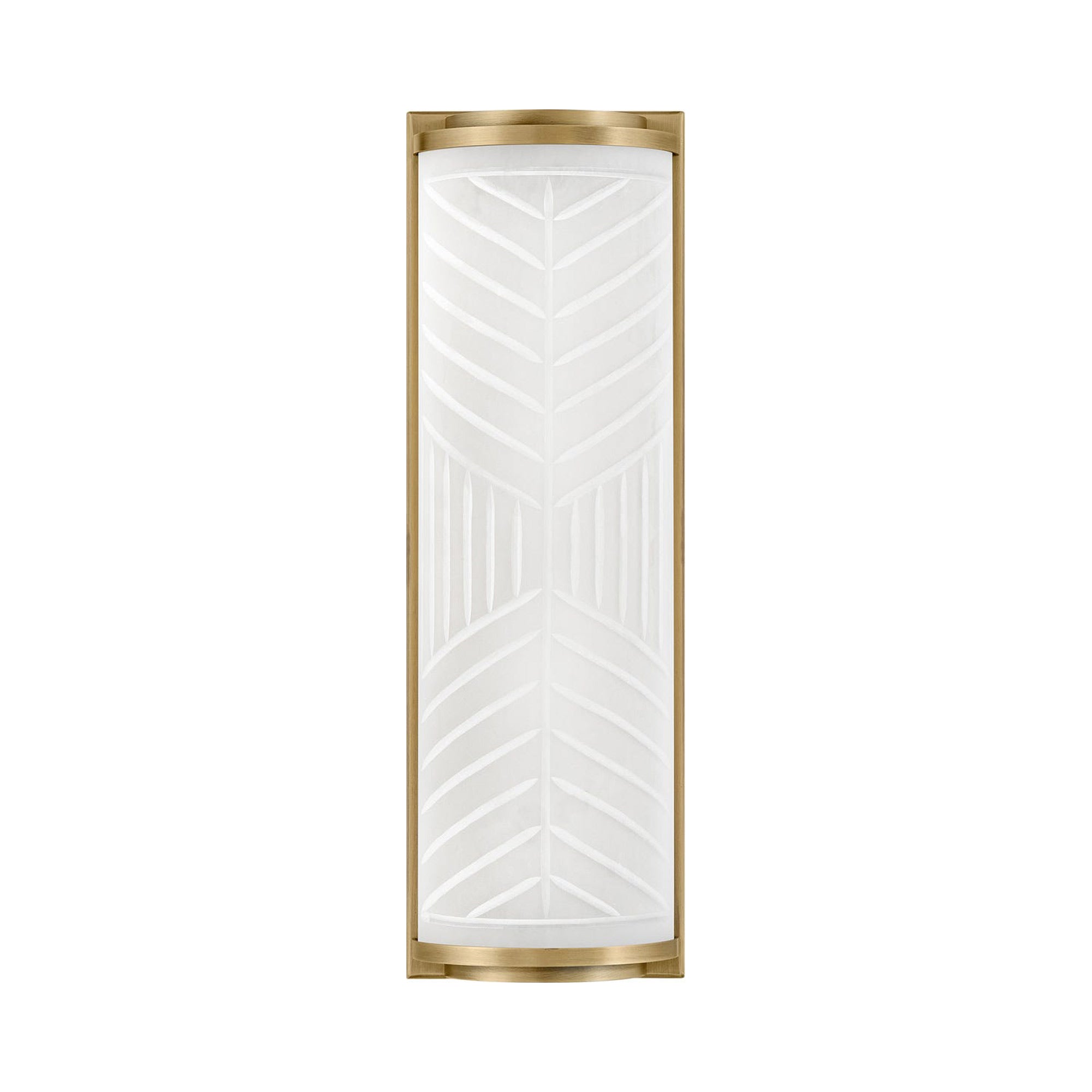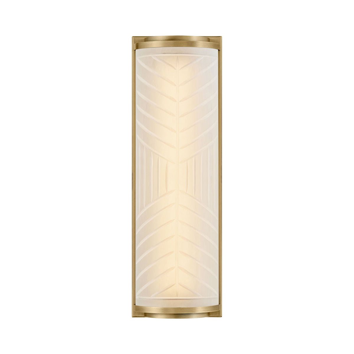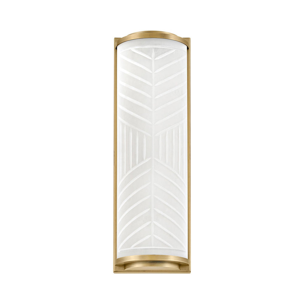 Minimalism is artisan and elegant in a bath light with an iconic blend of glass and metal. Geometrical bias-cut grooves in its etched shade create an interesting light pattern as the Devon LED Bath Wall Light from Hinkley delivers a sophisticated look lifting simplicity into glam style. Warm lacquered brass framing adds a perfect backdrop as it outlines a delicate yet powerful shade design.