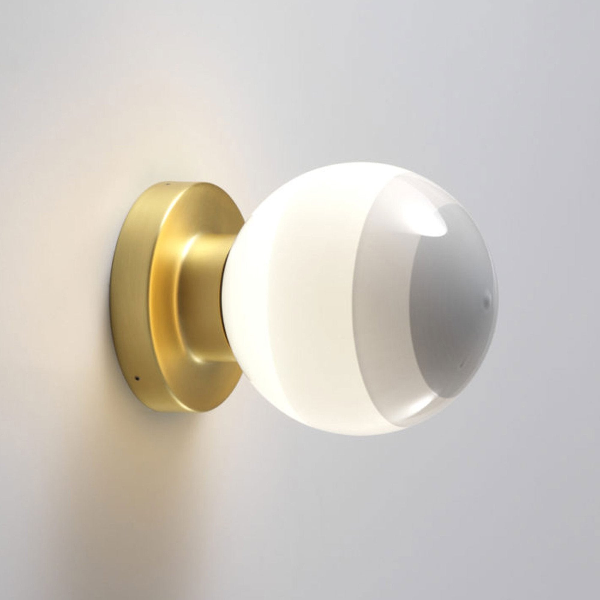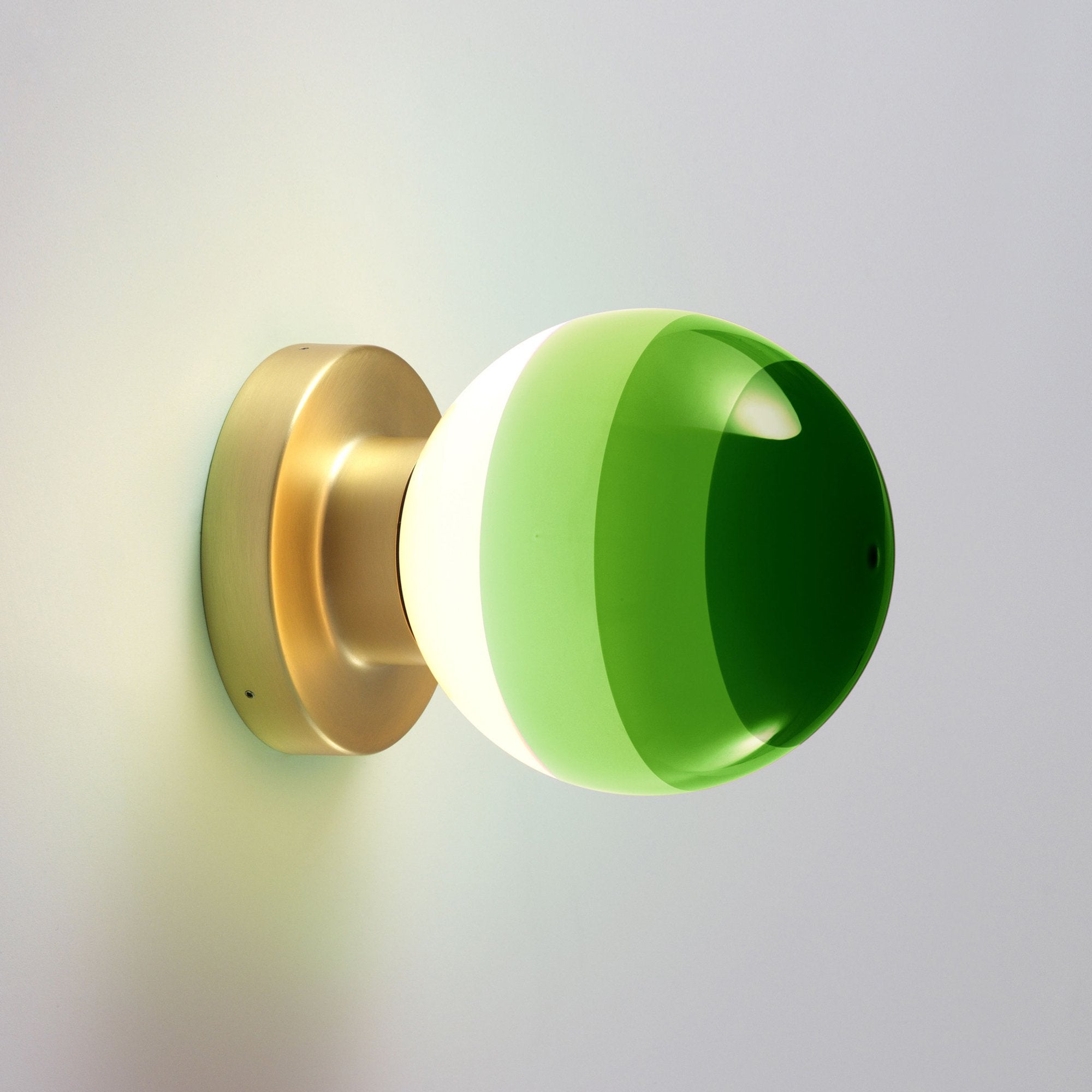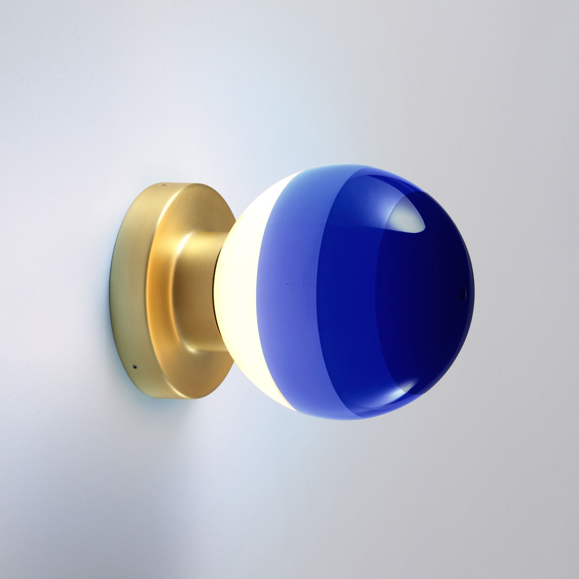 A charming motif conforming to basic geometric principles, the Dipping Light A2 LED Wall Light from Marset dots walls and hallways with whimsical yet artistic personality. Embrace the indulgent casual inspiration of a sconce-like fixture blending a rectangular metal wall mount with a glass globe shade decked out with gradient color shading that embellish lighting effects when lit and a tasteful palette when off.
