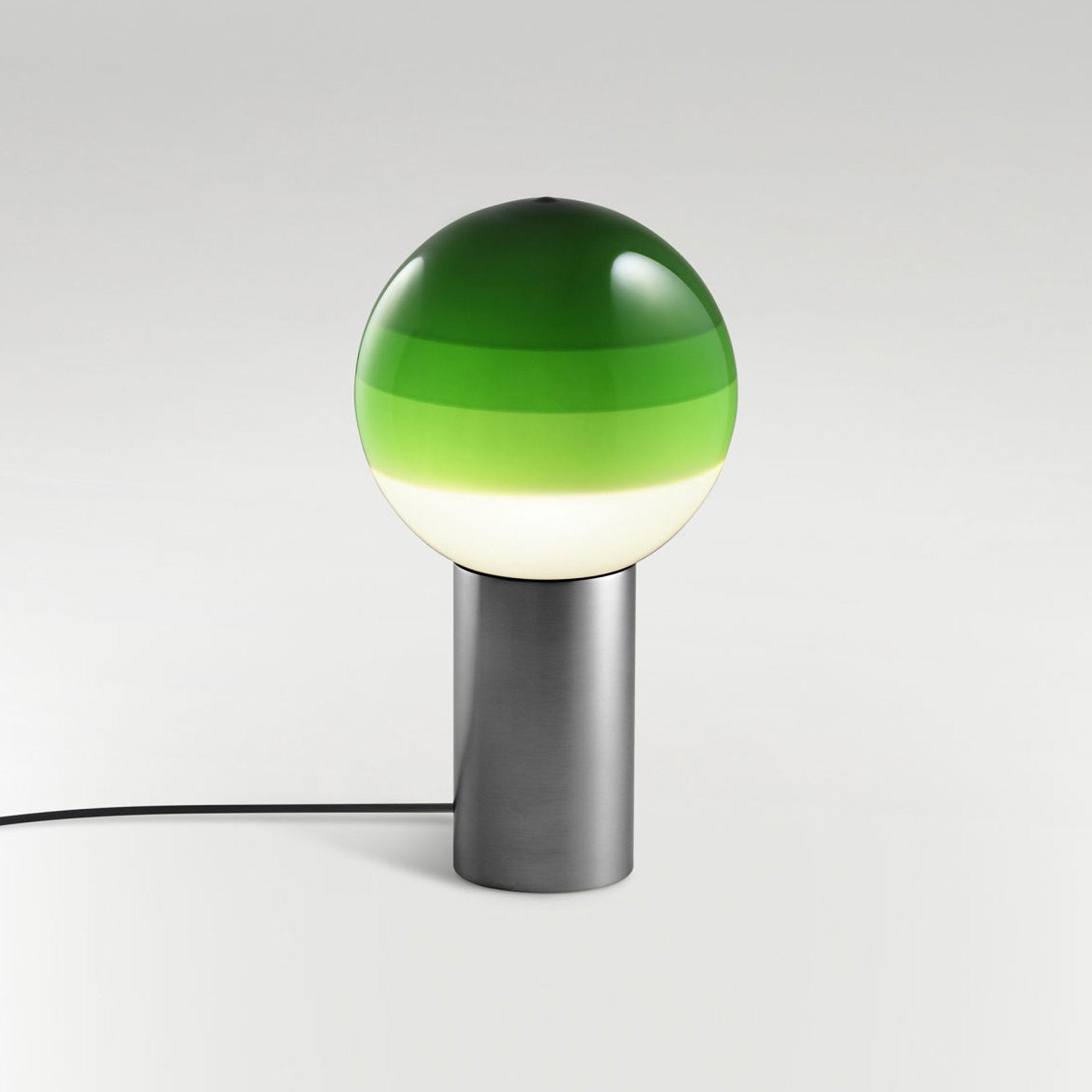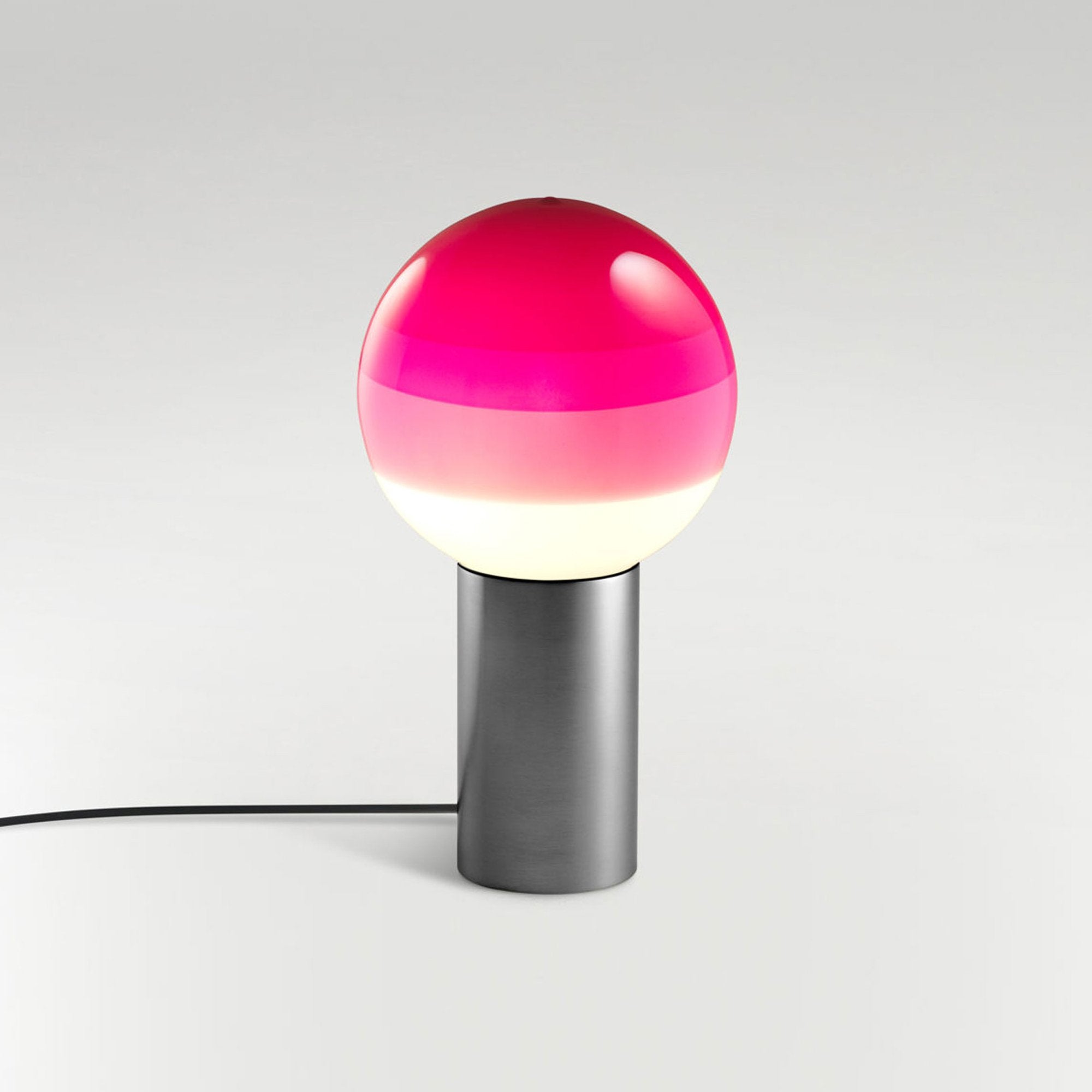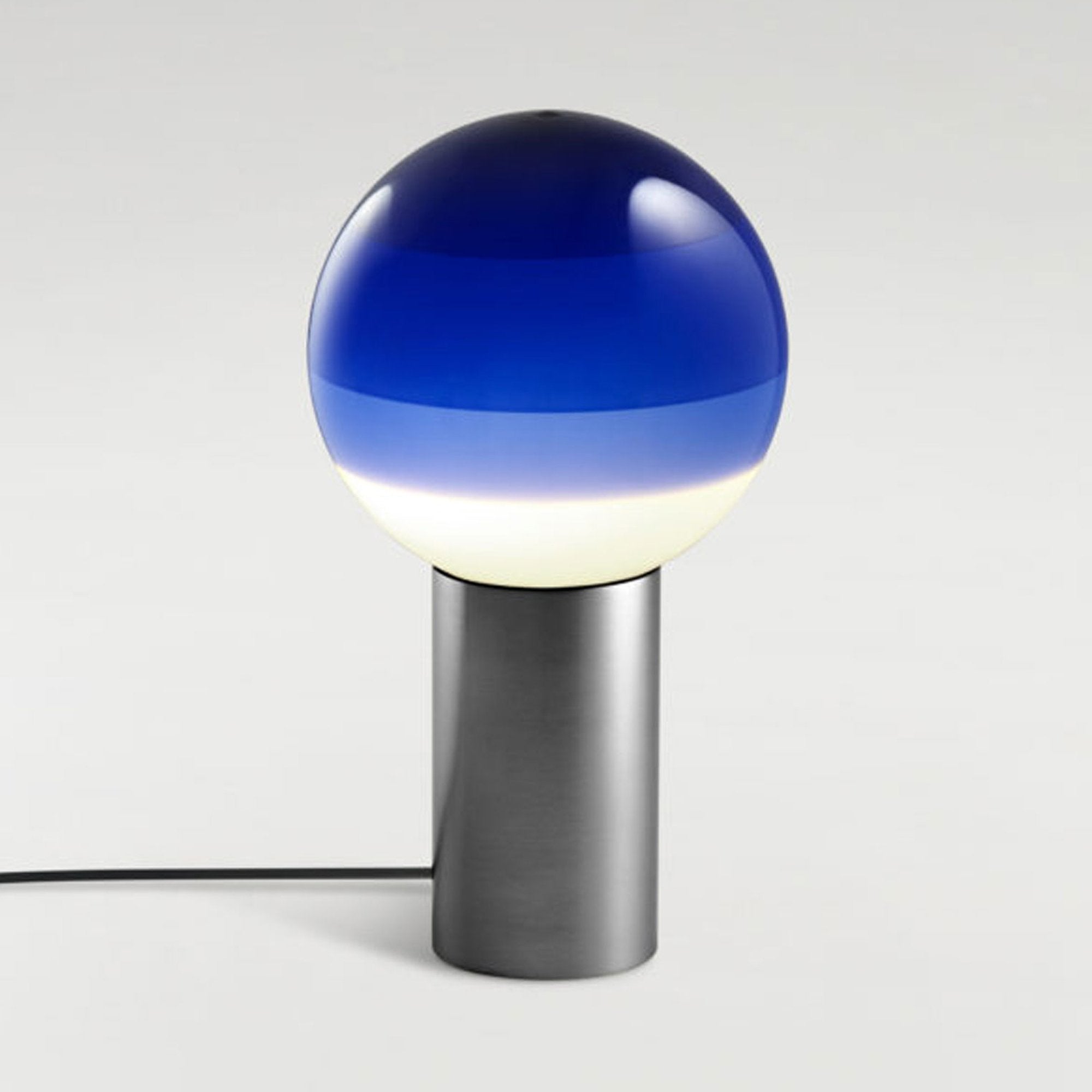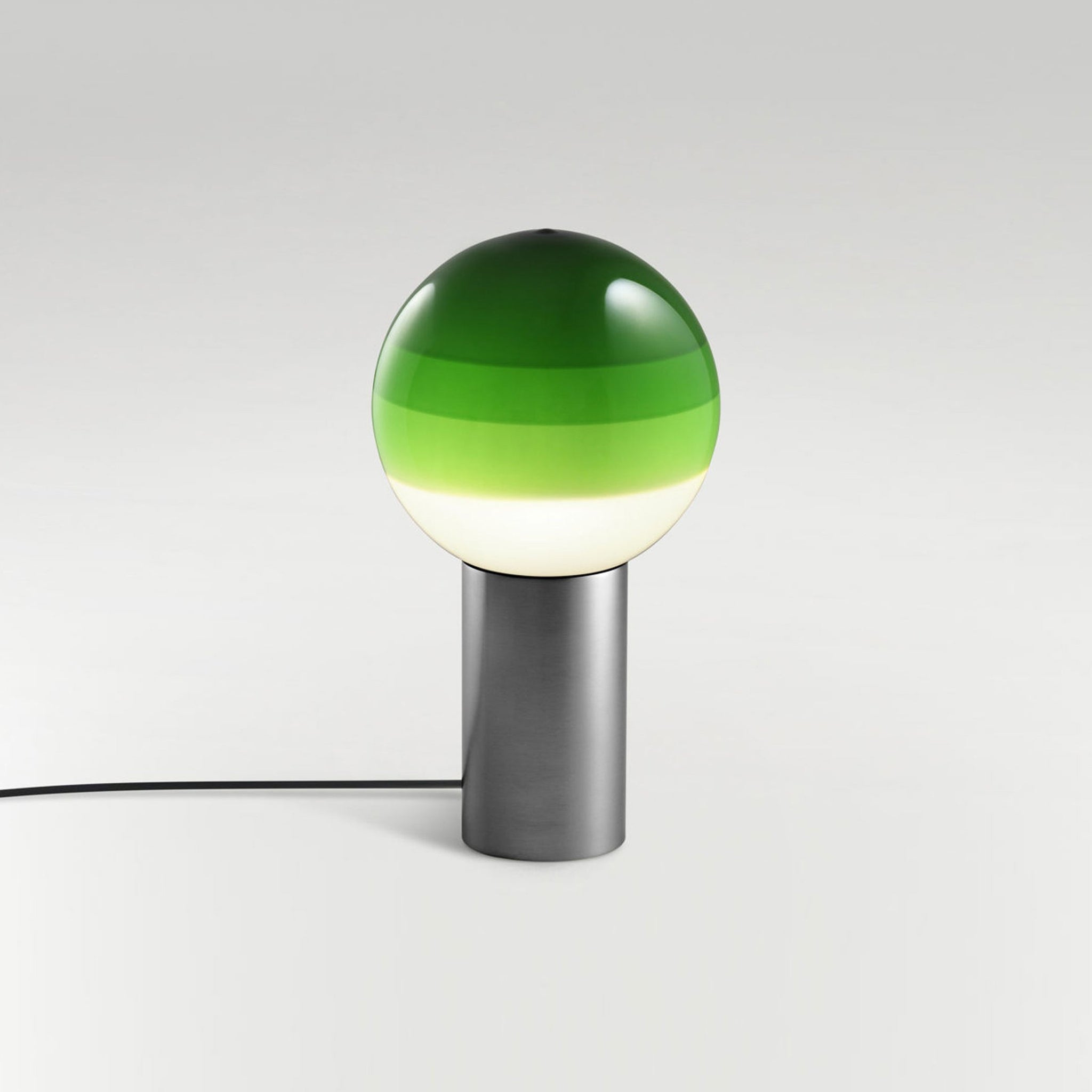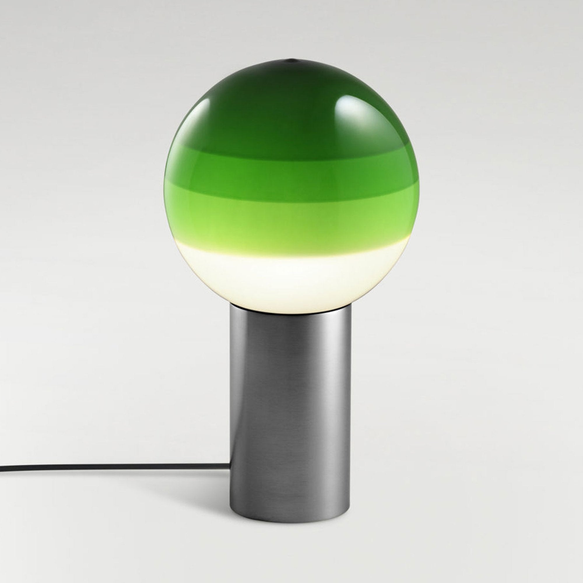 Finish options complete the inspiring possibilities of the Dipping Light LED Table Lamp from Marset, a modern light source delivering basic shaping and a fun, festive color-blending effect. Simple yet artistically grounded, its design featuring gradient color striping on its glass sphere shade and a metal cylinder base offers tempting ambiance when turned off or on.
