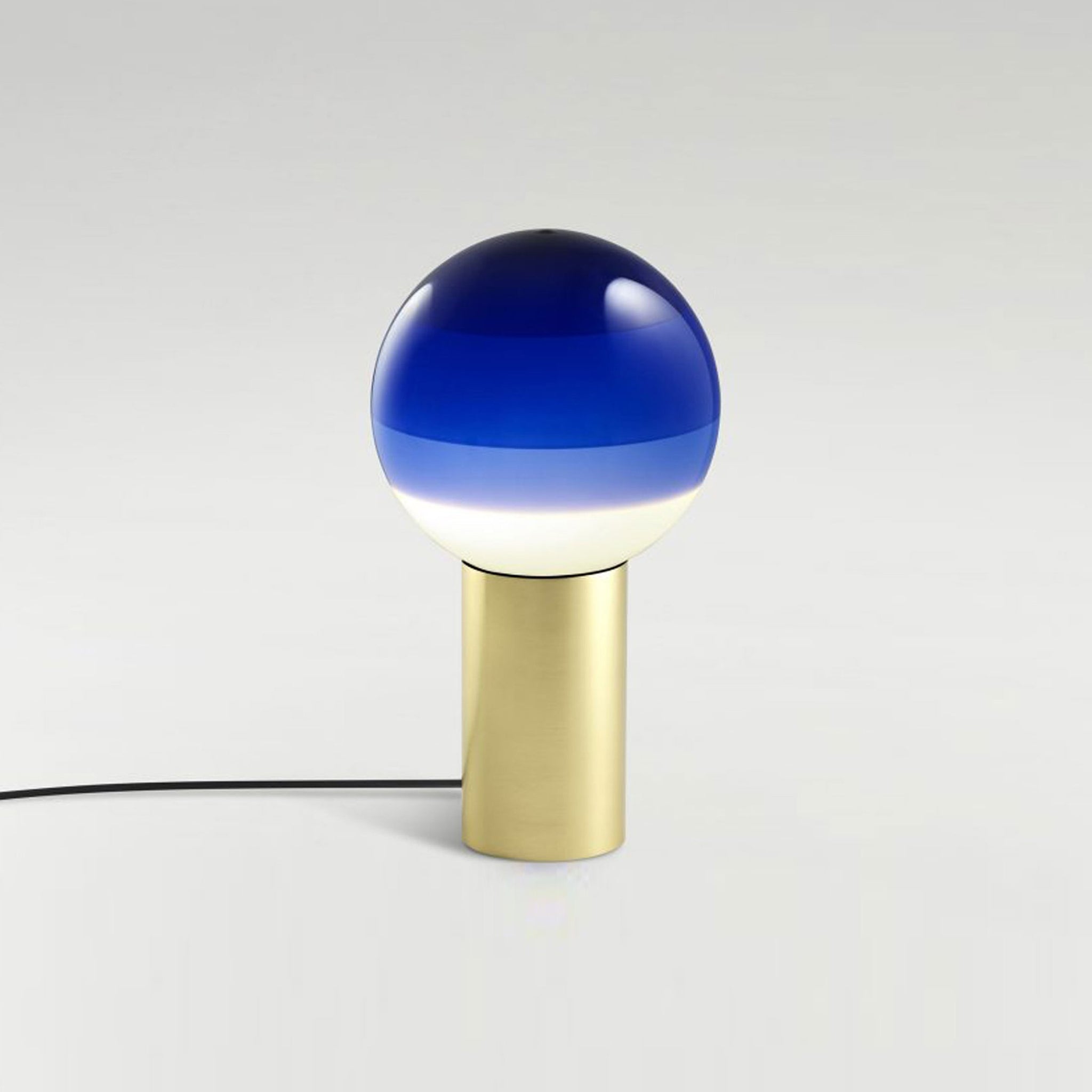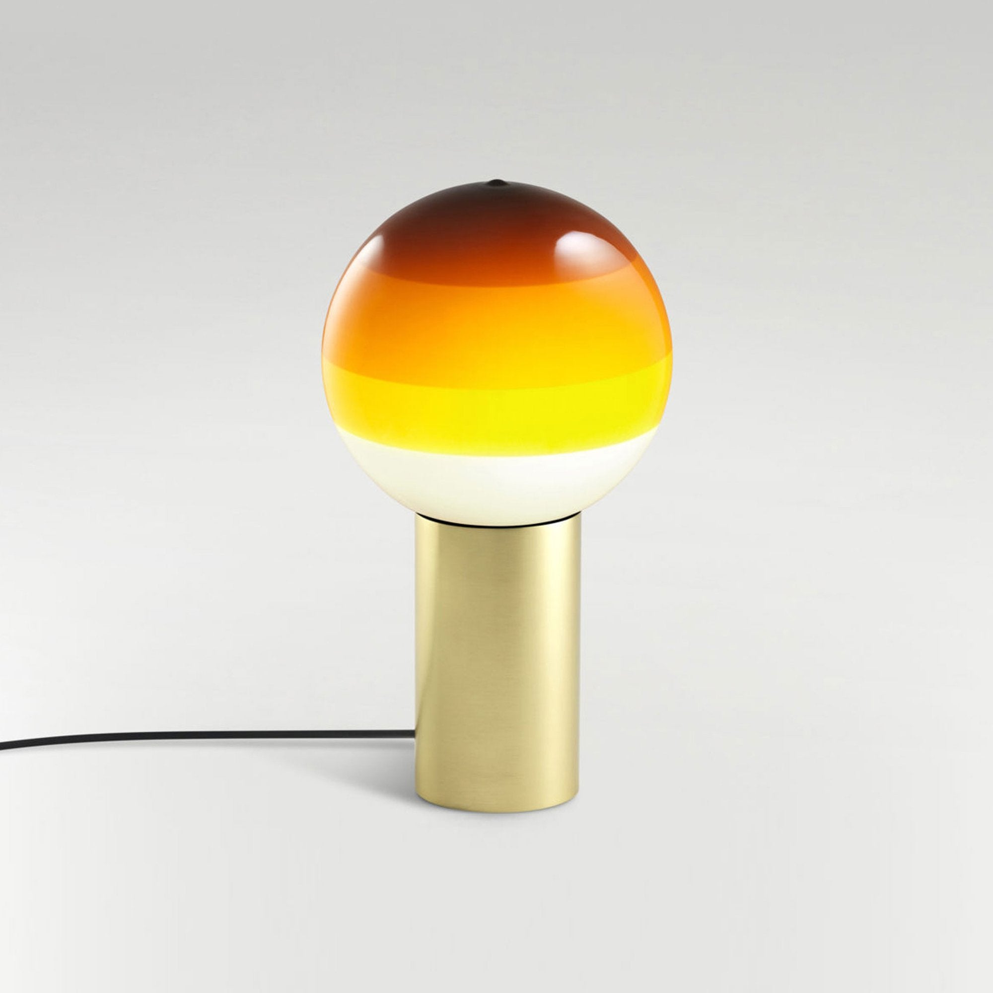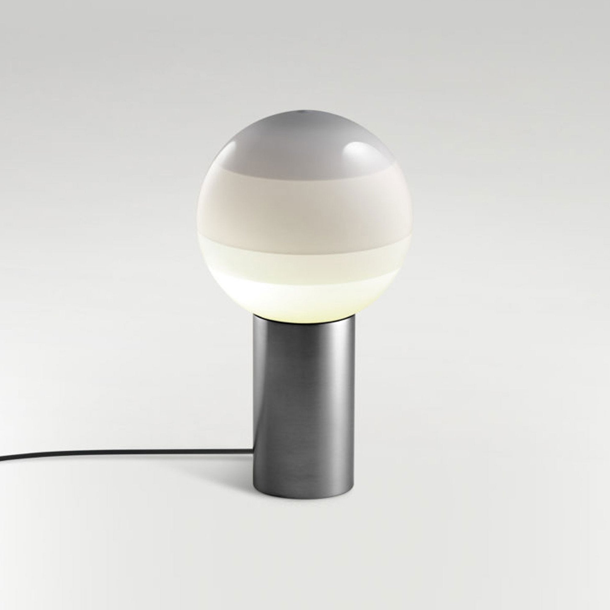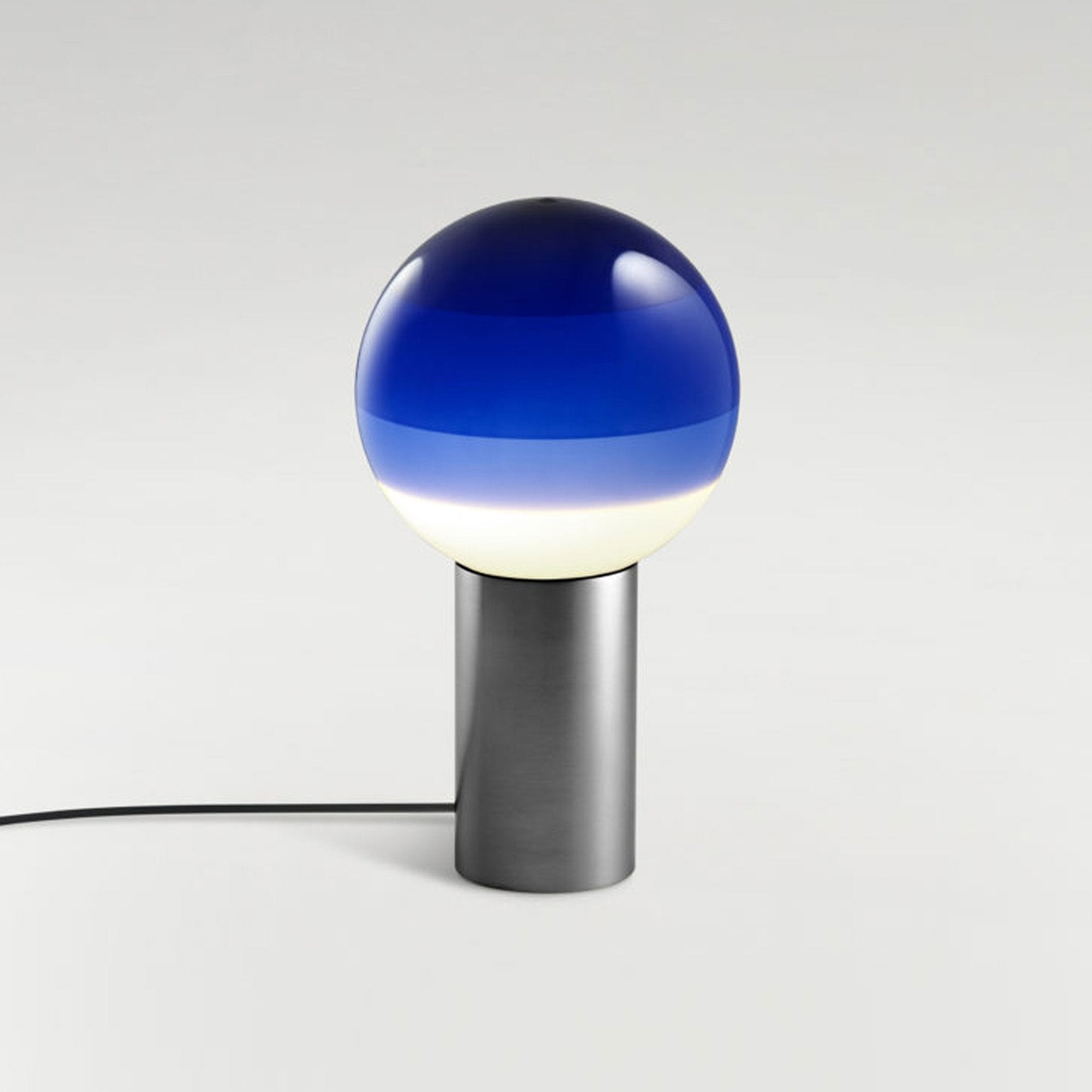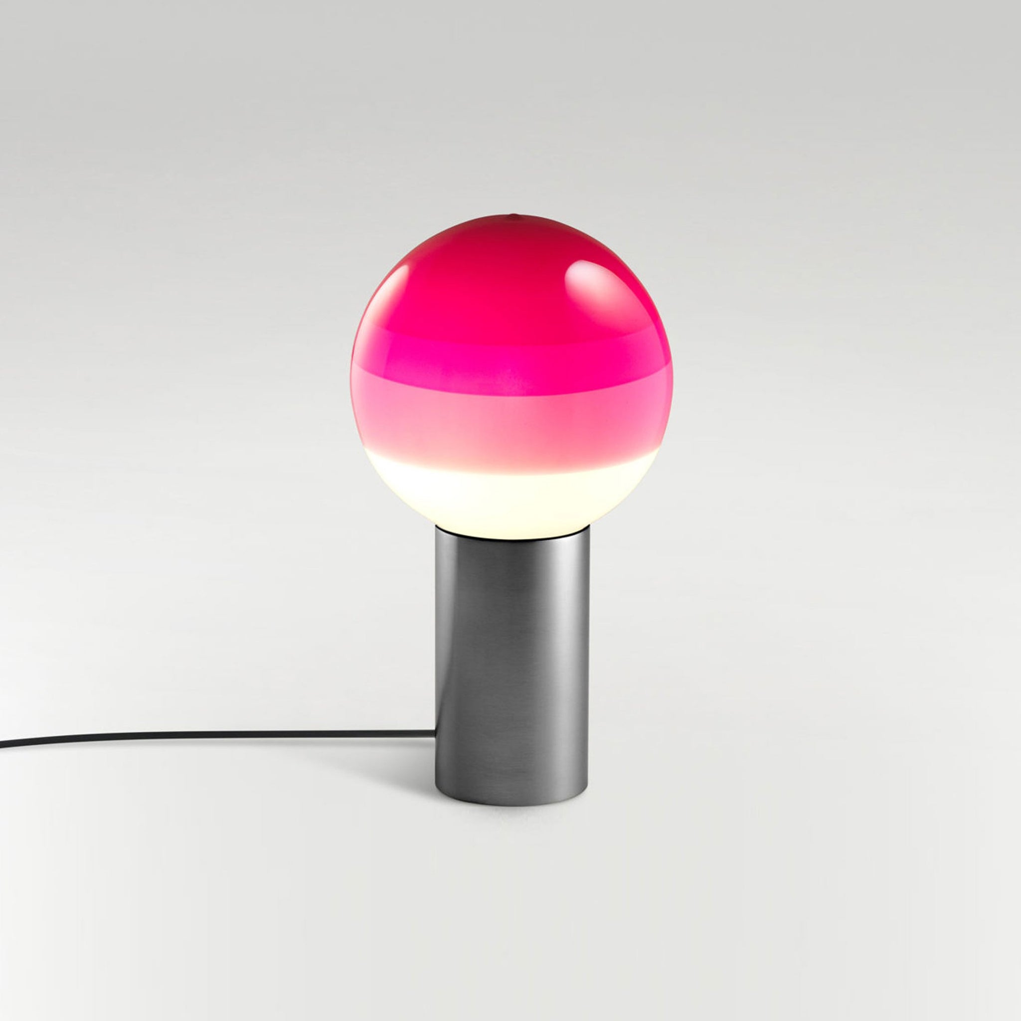 Finish options complete the inspiring possibilities of the Dipping Light LED Table Lamp from Marset, a modern light source delivering basic shaping and a fun, festive color-blending effect. Simple yet artistically grounded, its design featuring gradient color striping on its glass sphere shade and a metal cylinder base offers tempting ambiance when turned off or on.