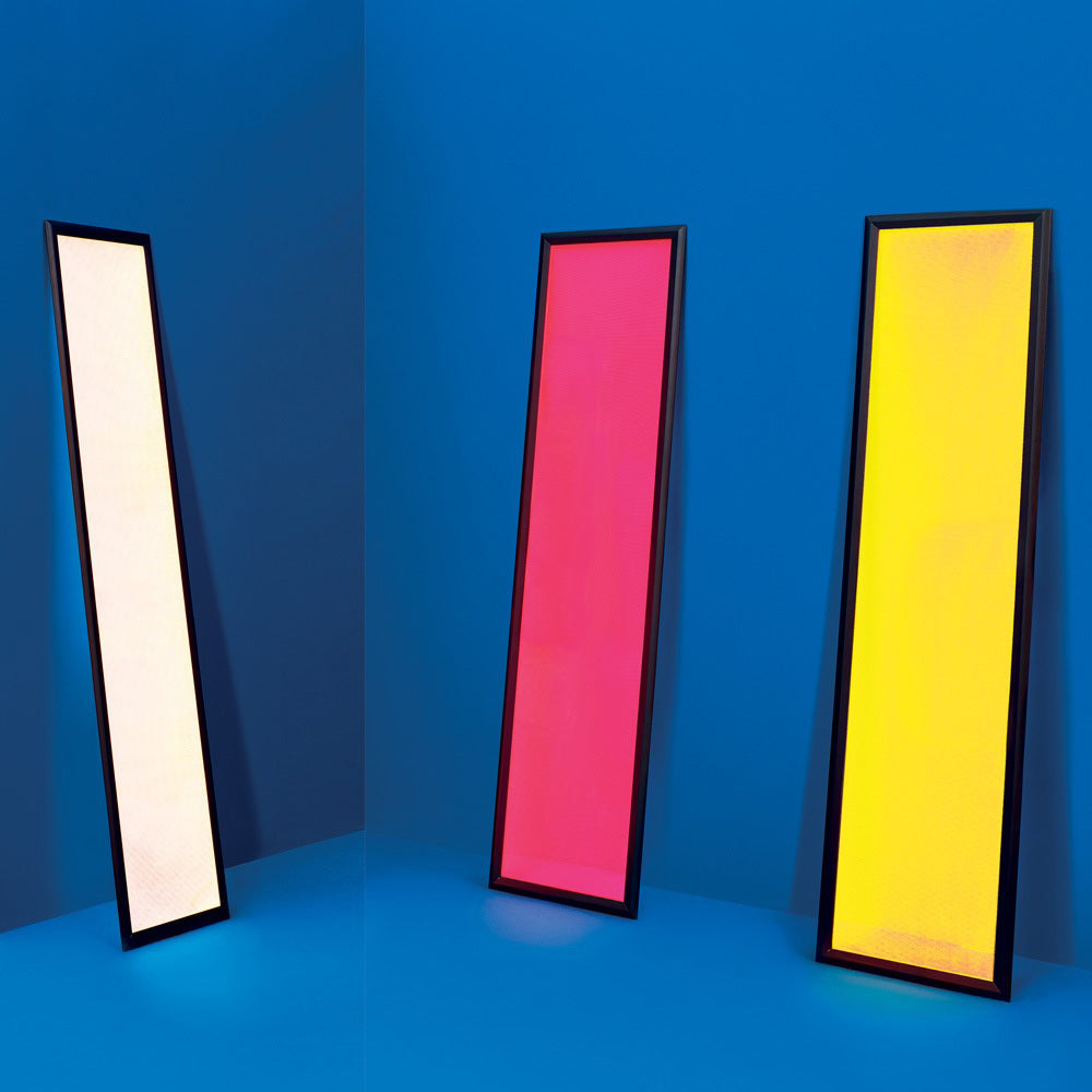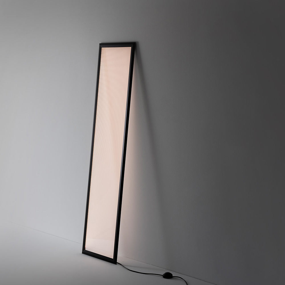 At first glance, the Discovery LED Floor Lamp from Artemide appears as a simple floor mirror with lighting options, but further study reveals hi-tech features and a brilliant glowing impact. This rectangular floor lamp offers a light-reactive rim emitting specialized and evenly distributed illumination with ergonomic visual comfort. Use dimming features and color temperature adjustments from switches located on its cord, or connect through a phone app to take advantage of proprietary Artemide settings.