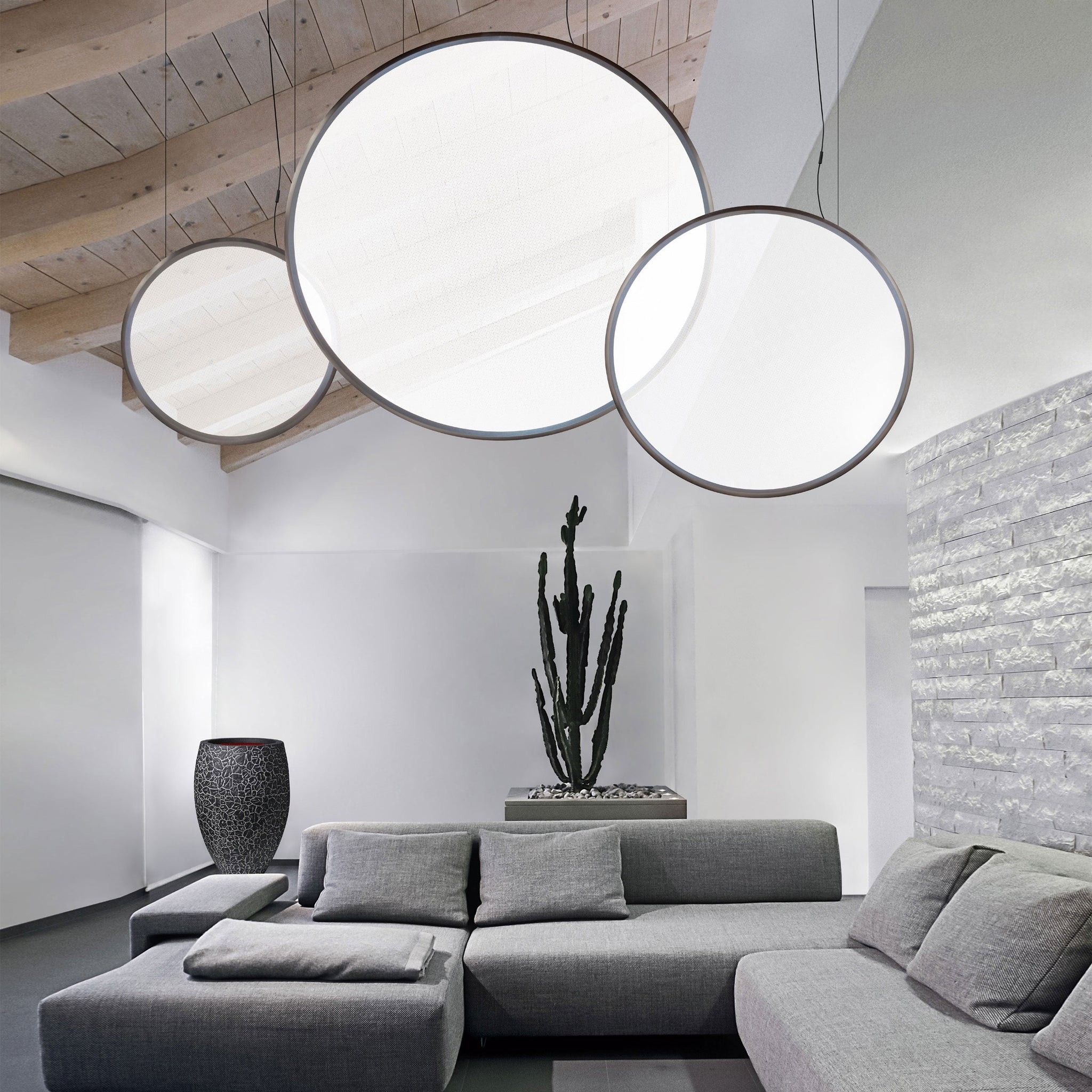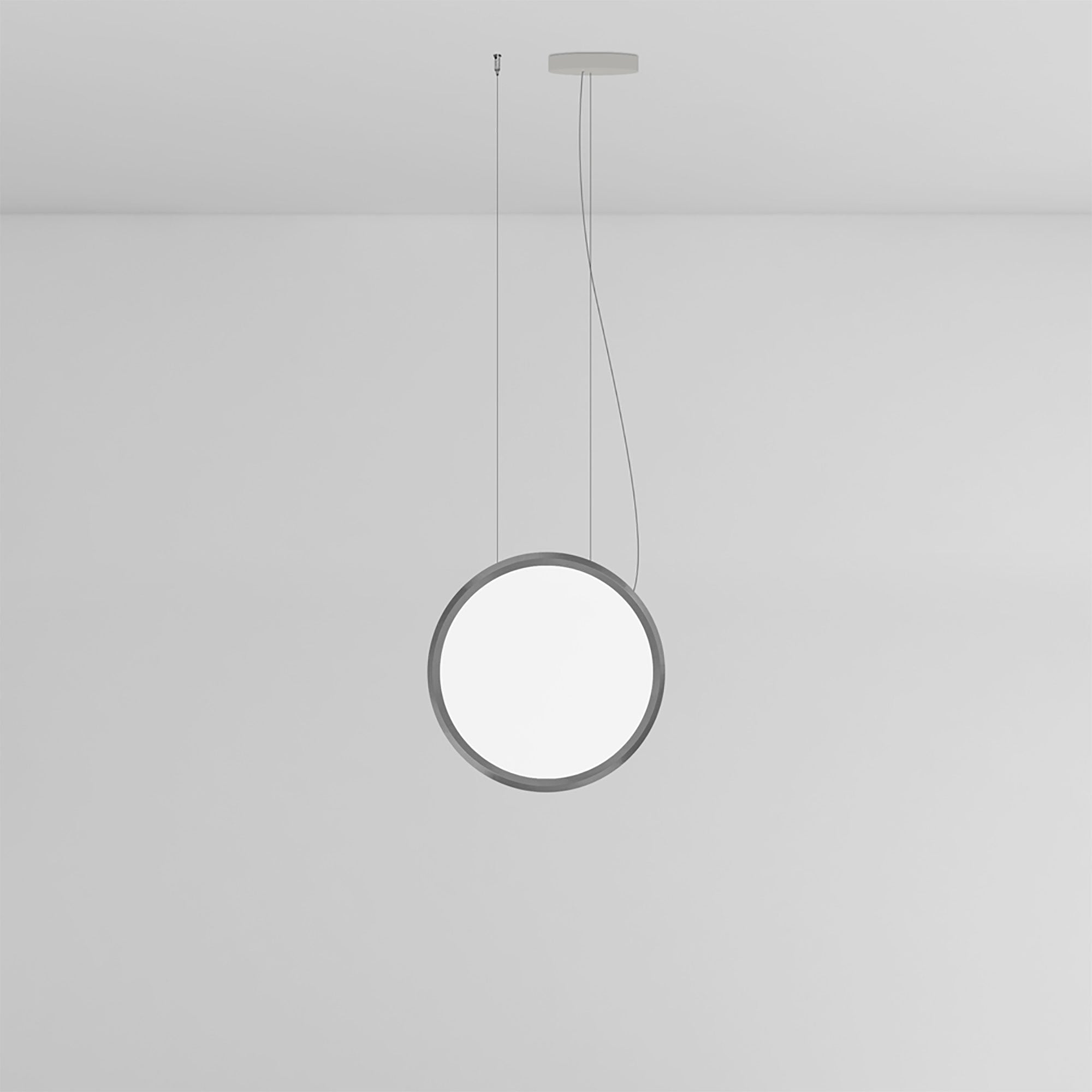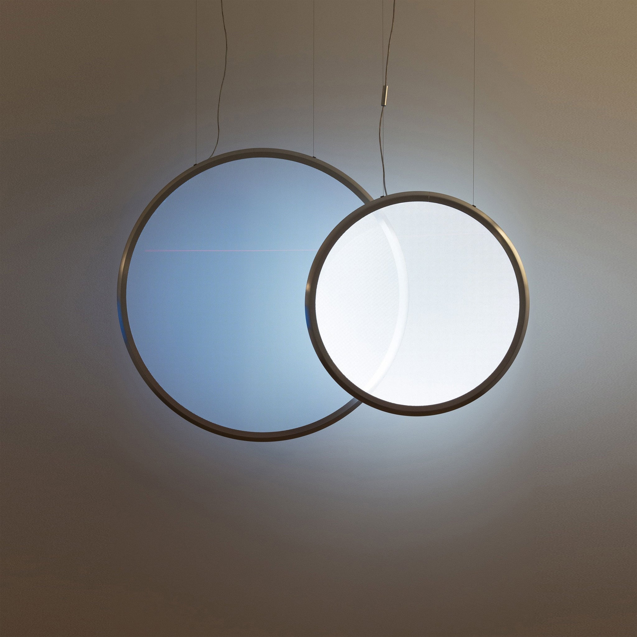 Turn convention on its side with the vertical disc silhouette featured in the lovely, glowing Discovery LED Vertical Suspension Light from Artemide.