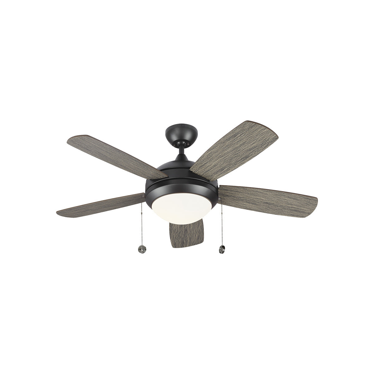 The Discus Classic LED Ceiling Fan from Generation Lighting reflects classic design elements with a hint of traditional style. Five shapely and tapered blades rotate to effect air circulation where needed, with a manual reverse switch accommodating changing seasons. Metal framing and a sleek light kit preserve iconic elements that make ceiling fans a superb choice for bedrooms and living rooms.