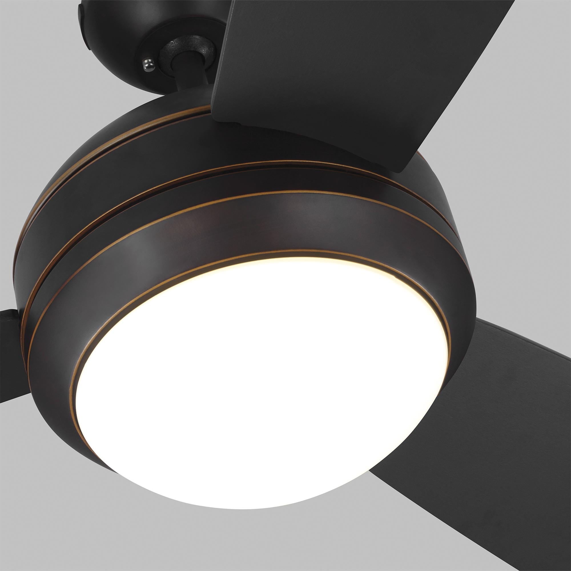 The Discus Trio Max is a three-bladed beauty, taking design inspiration from the popular 52” Discus ceiling fan from Generation Lighting. With a minimalist, contemporary design, it can complement a wide variety of room décor. The Discus Trio Max features an integrated 18W LED downlight with 700 net lumens of output, 2700°K CCT and a CRI of 90+. An optional finishing cap is available (sold separately) for use without the light kit. Damp-rated for indoor/outdoor use, the Discus Trio Max also comes with a hand-held remote with four speeds, reverse and LED light dimmer.