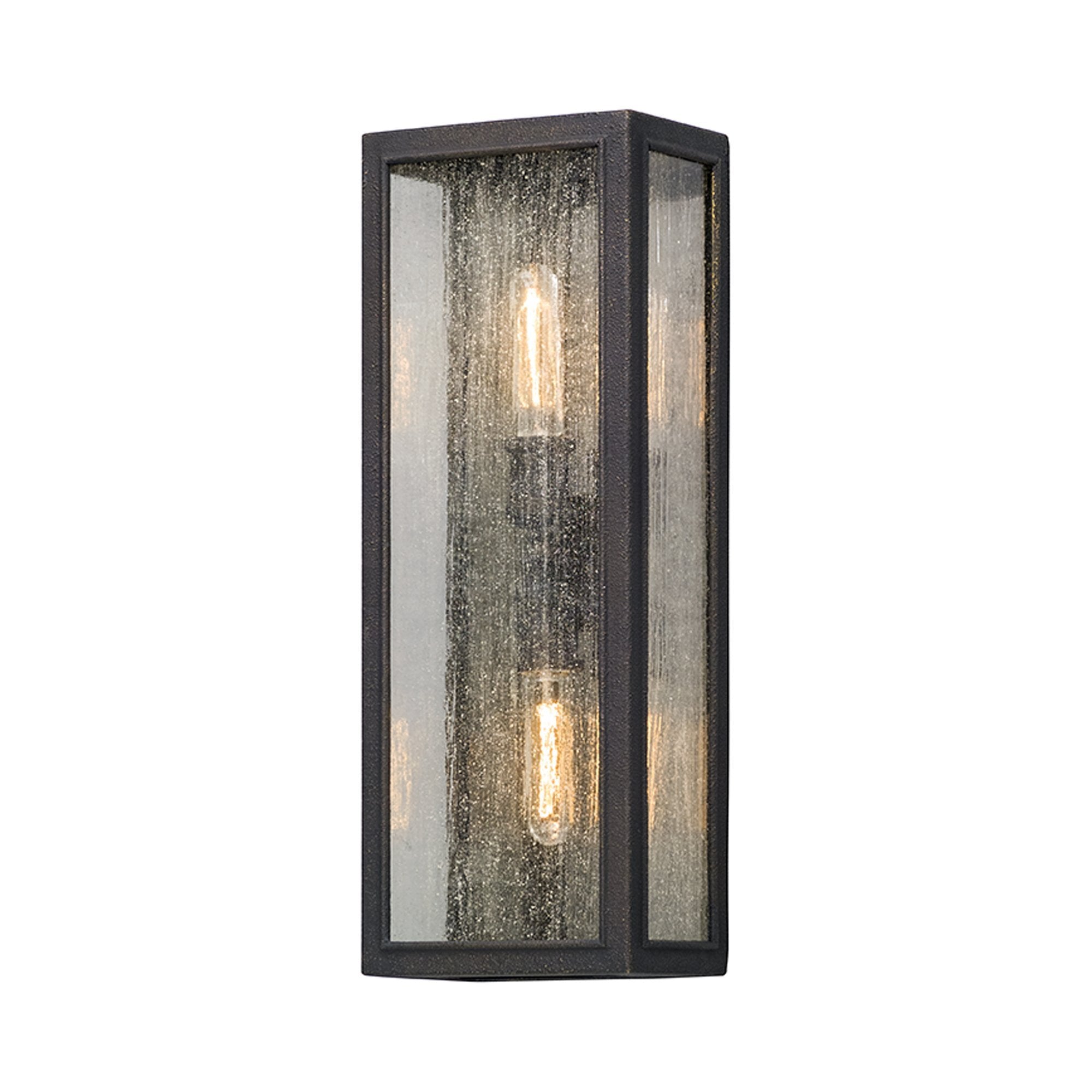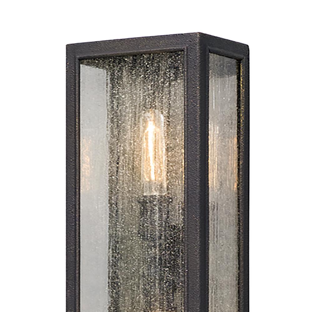Seeded glass lends a classic touch to the clean, straight lines of the vintage bronze finish Dixon Outdoor Lantern from Troy Lighting.