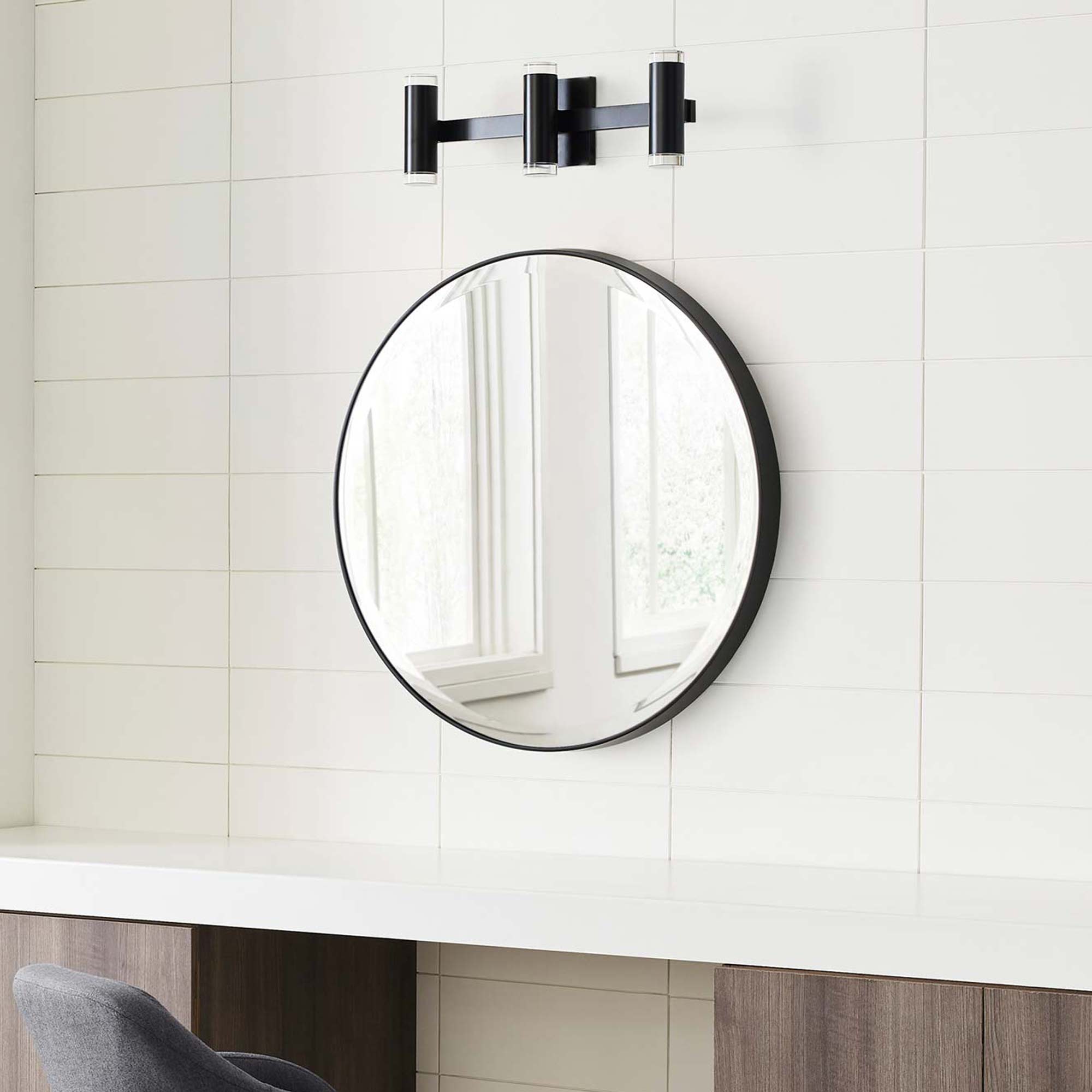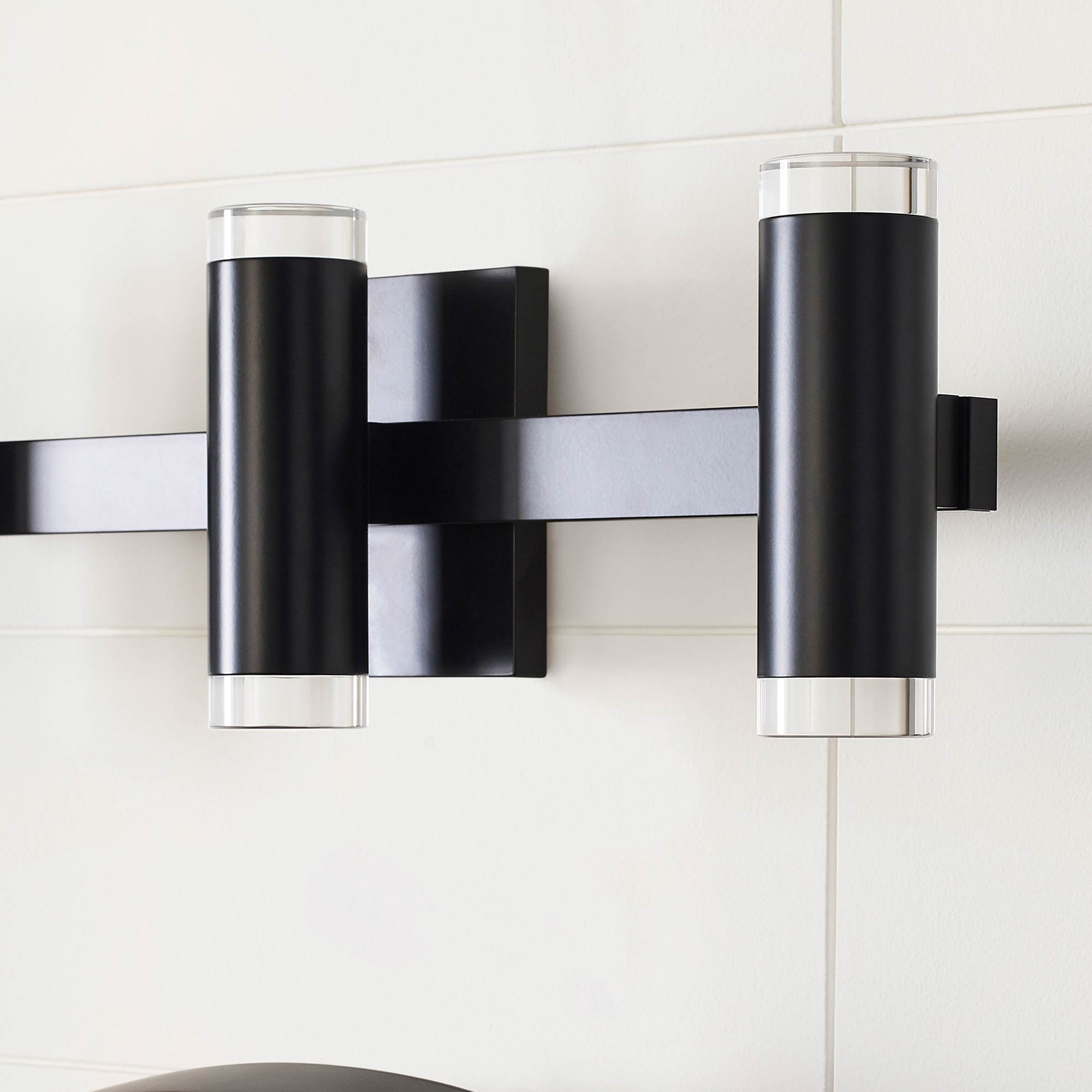 The Dobson II LED Bath Wall Light by Sean Lavin for Visual Comfort Modern is sleek and ultra-modern with its cylindrical glass shade and illuminated ring of pure optic crystal. Your choice of sleek chrome or ultra-modern matte black further enhance the contemporary style. The Dobson bath light is available in a two or three vanity light option and comes with an energy efficient integrated LED lamp, this lamp option is fully dimmable to create the desired ambiance in your special space. The Dobson bath bar is the latest addition into the Dobson family, simply search for the Dobson bath to find its closest relatives.