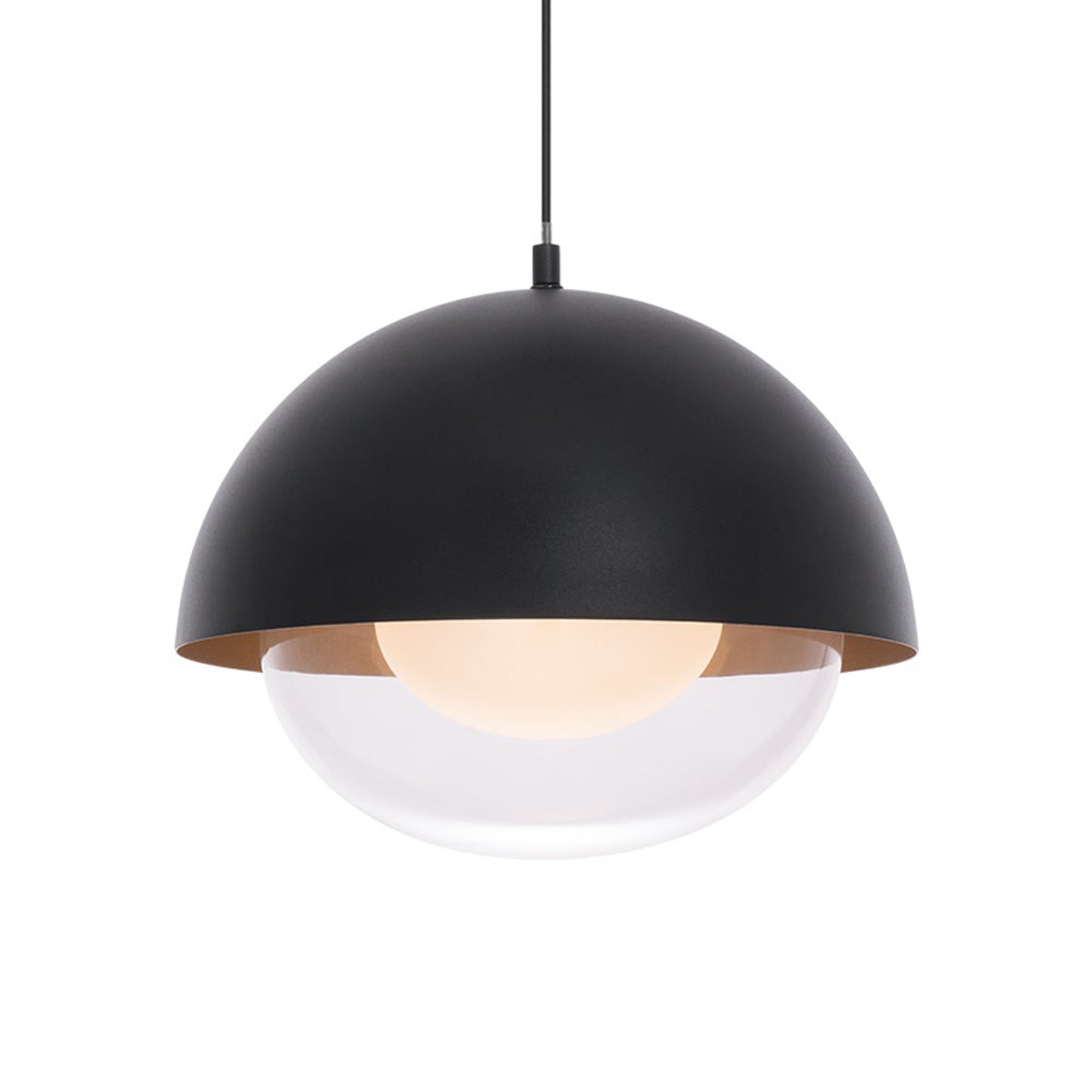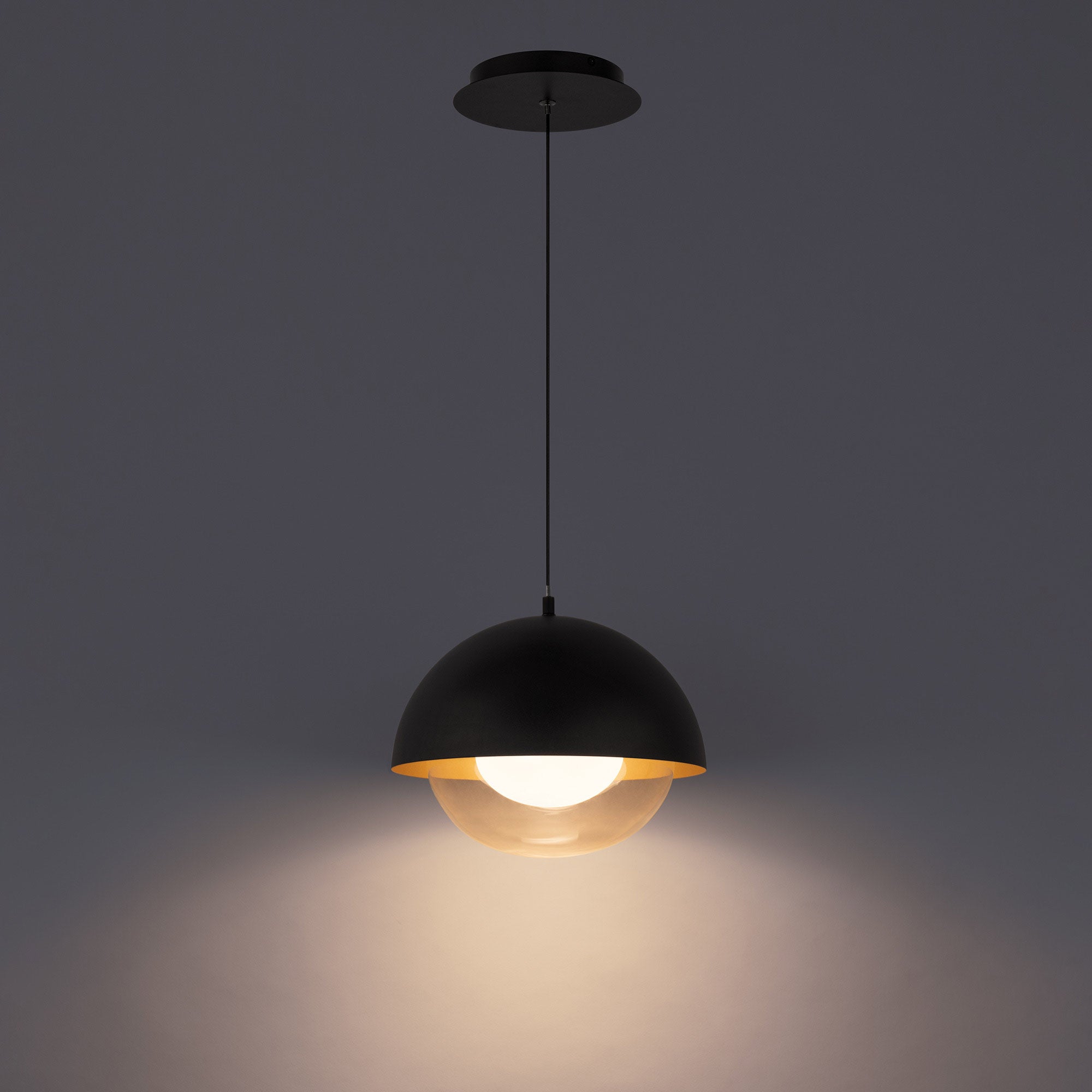 View industrial design elements from a new perspective with a light fixture that incorporates elegant artistry and farmhouse dynamics. The Dome LED Pendant Light from dweLED creates visual charm with a black finish metal dome shade coated with a lush gold interior, and a layered acrylic shade updating with a contemporary flavor. This chic light delivers energy-saving ambient illumination in a downward direction.