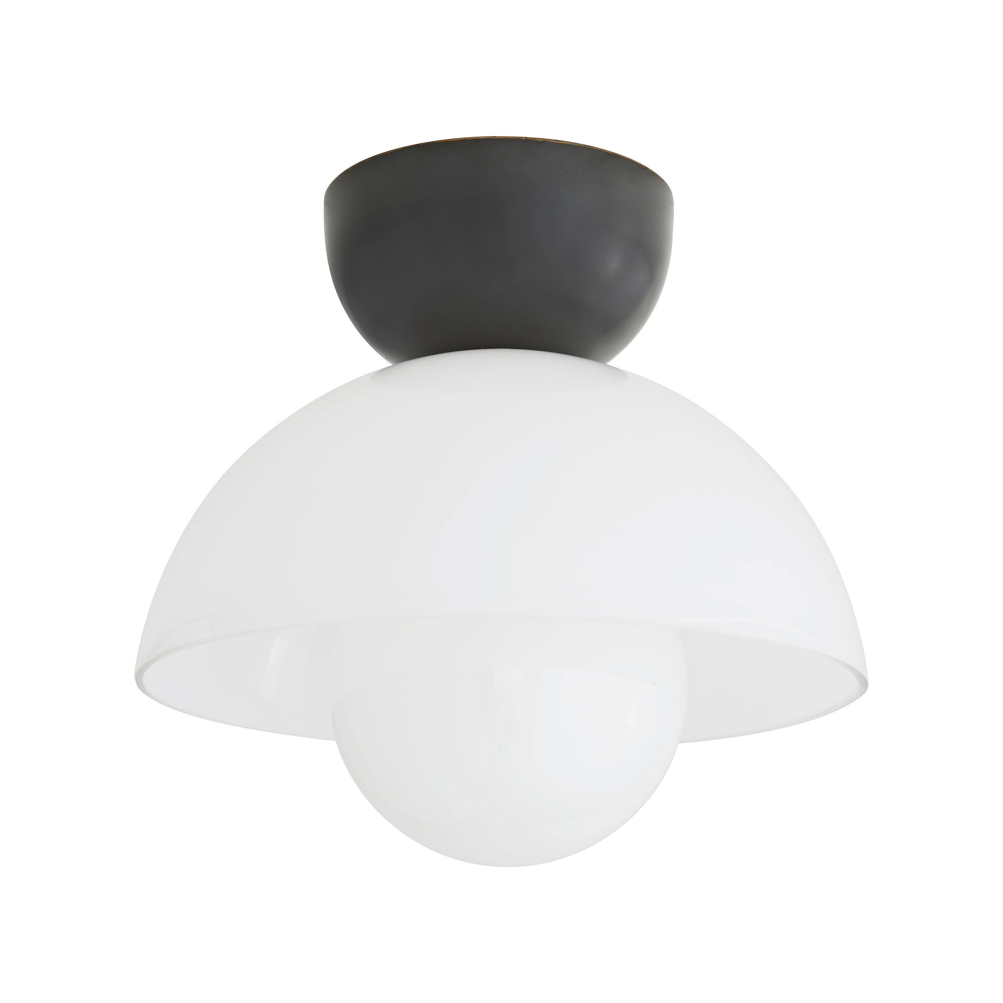 Simple yet stunning. Polished yet practical. The Donely unifies simple geometric shapes and refined materials to create a fixture fit for small spaces. An inverted steel dome canopy rests atop an opal glass dome shade that houses an oversized bulb. When illuminated opal glass swirls dance along the surface. Great for bringing light to a hallway or spaces with lower ceilings. Damp-rated although limited covered outdoor conditions may affect finish.