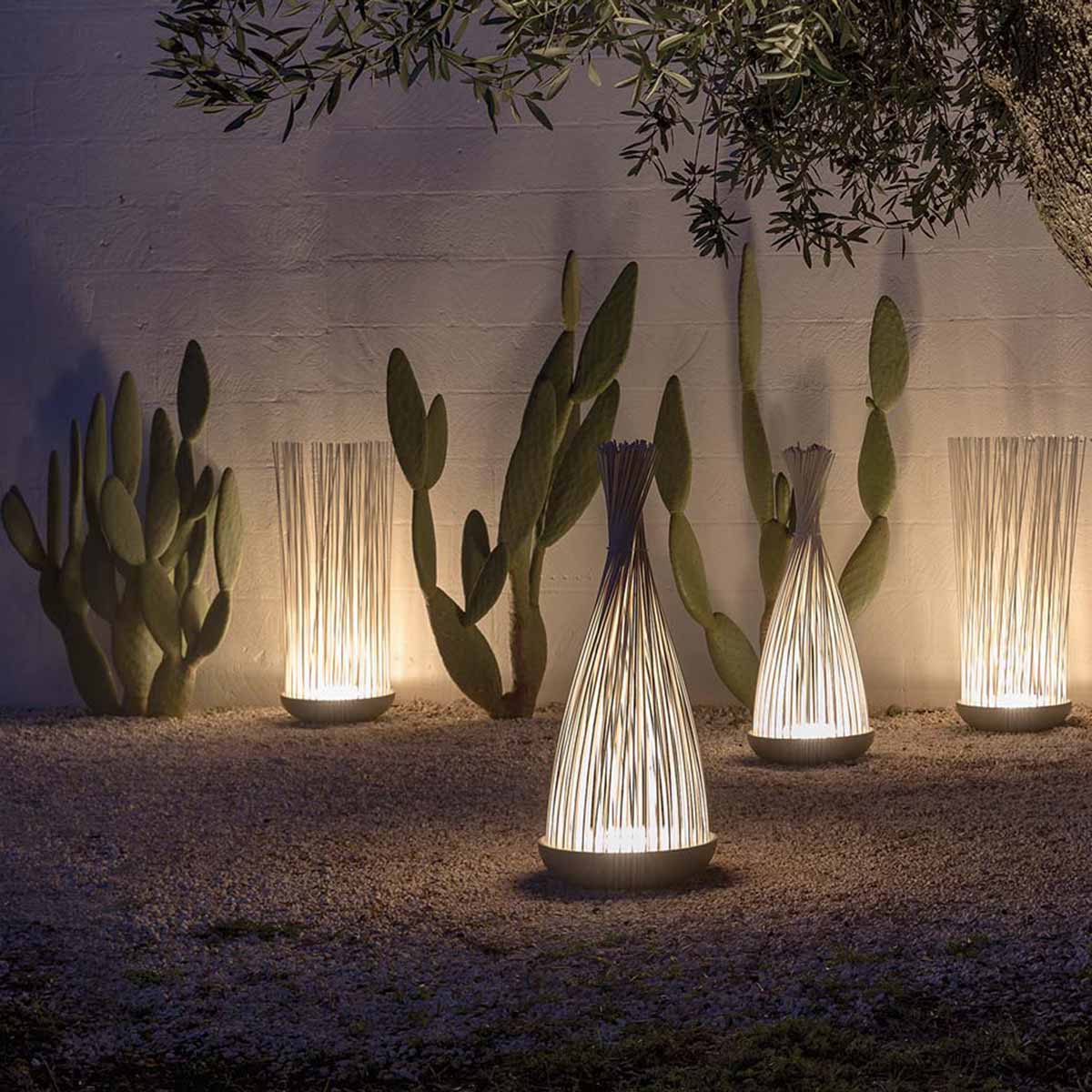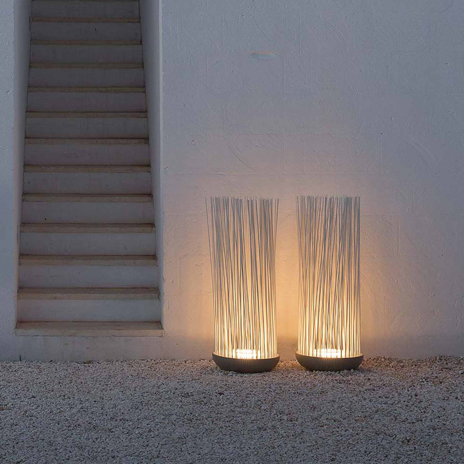 Create natural-like landscape elements with the Don't Touch Outdoor LED Floor Lamp from Karman. Resembling tall reed-like bushes, this floor lamp scatters a lovely lighting texture on walls and other architectural surfaces.
