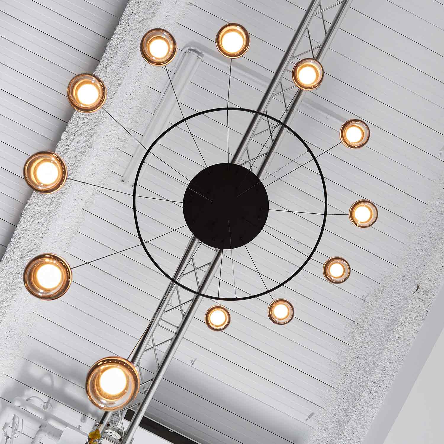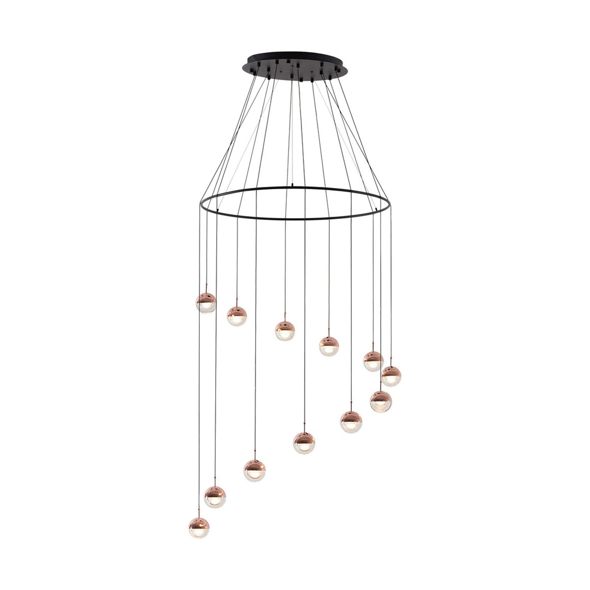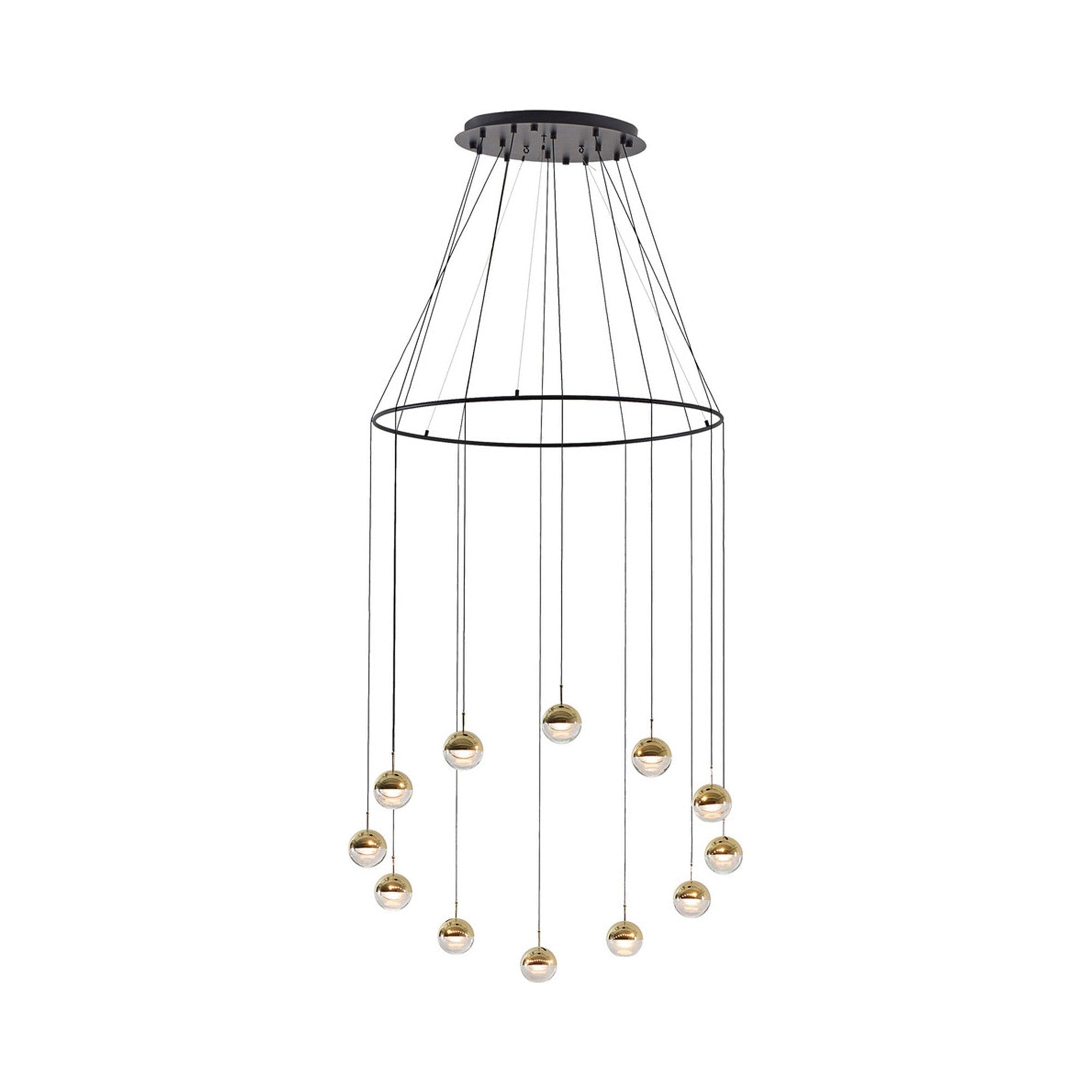 Focus on shape and artistry with the chic look of this Dora LED Multi Light Ring Pendant Light from Seed Design. Created as a central focus and source of ambient, energy-efficient illumination, this cluster of dual-material bulbs and shades form a staggered arrangement with lush finishes and a captivating silhouette.