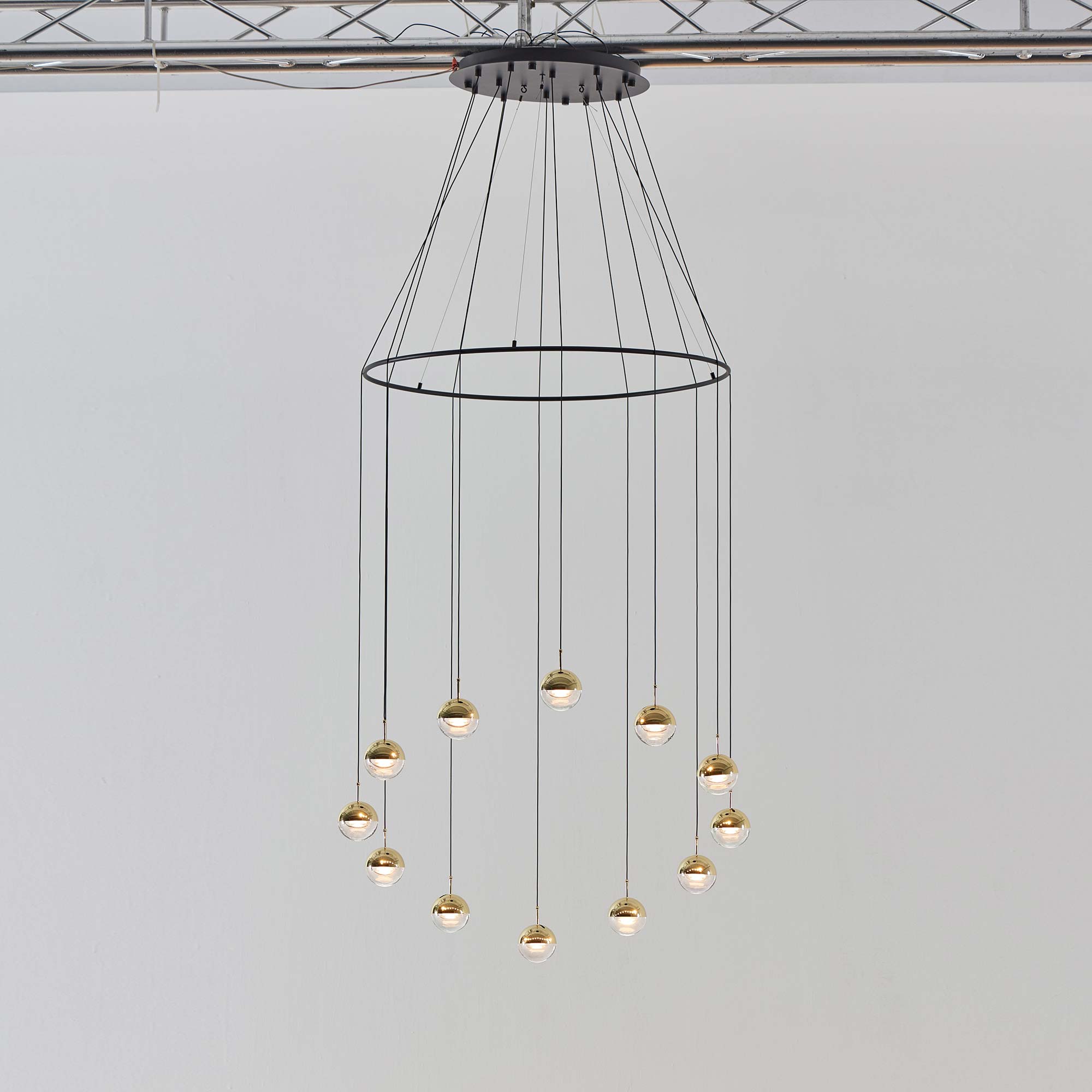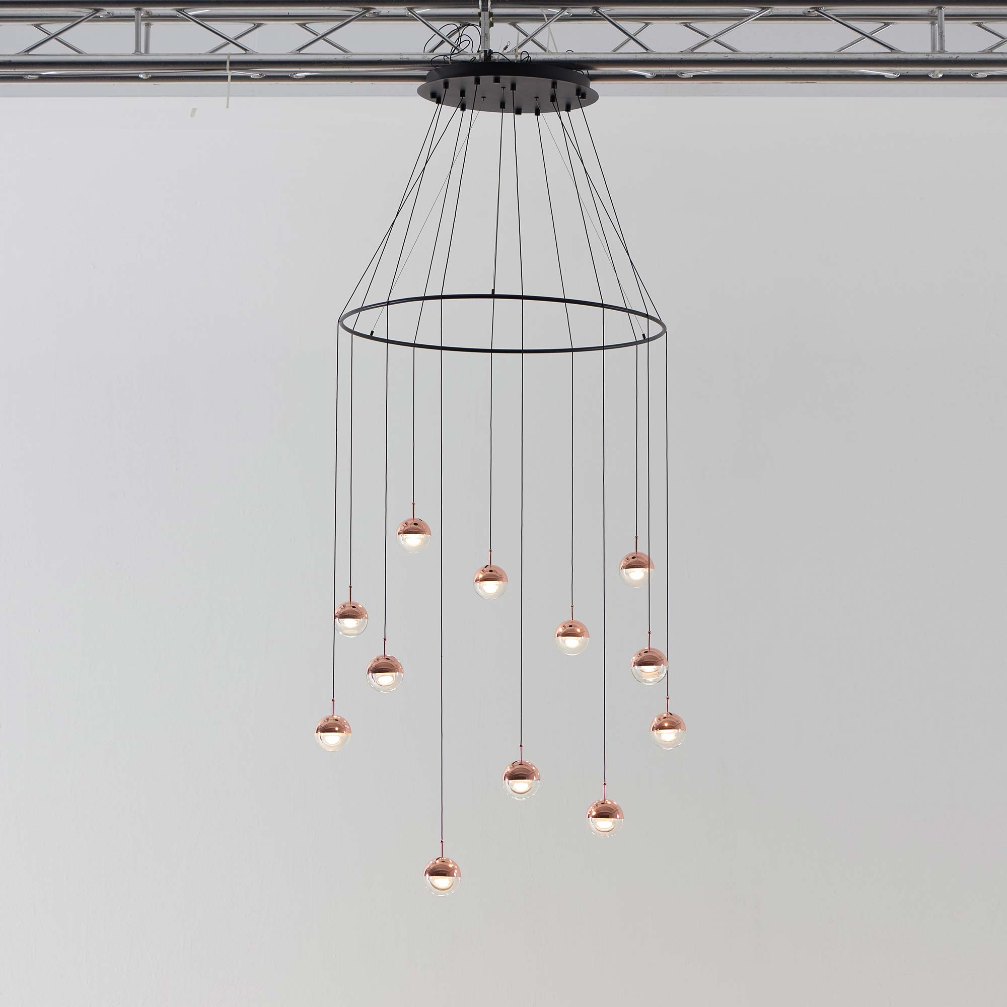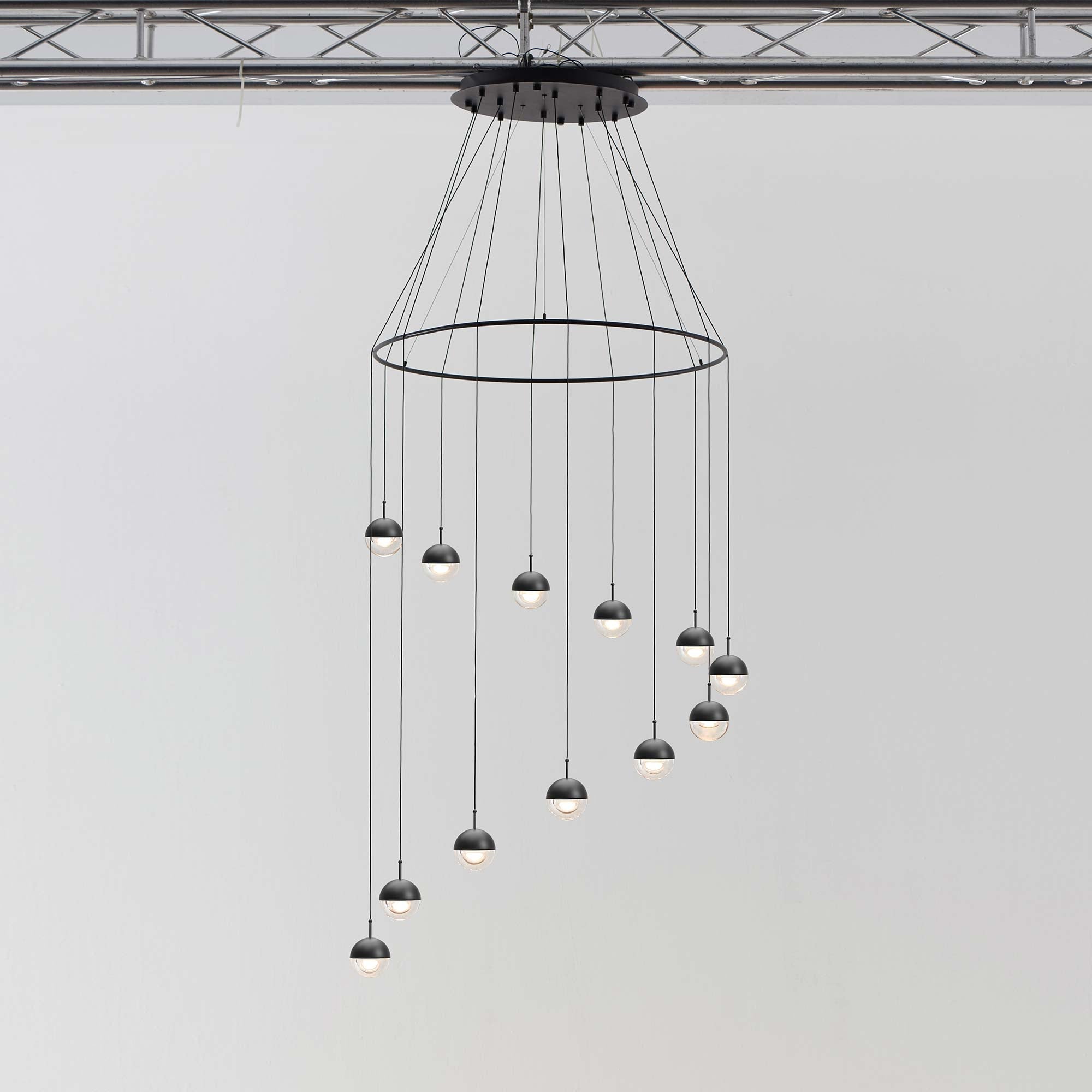Focus on shape and artistry with the chic look of this Dora LED Multi Light Ring Pendant Light from Seed Design. Created as a central focus and source of ambient, energy-efficient illumination, this cluster of dual-material bulbs and shades form a staggered arrangement with lush finishes and a captivating silhouette.