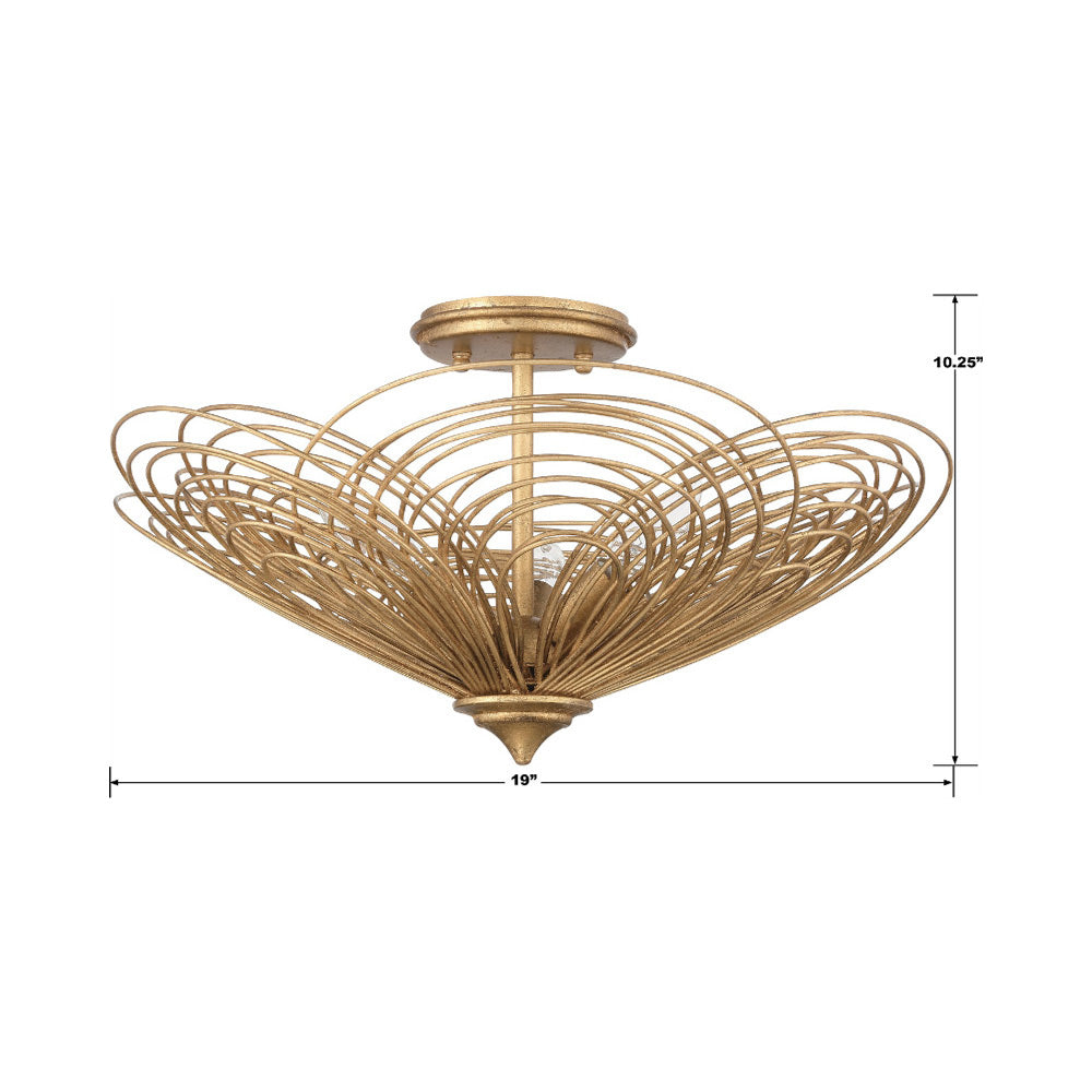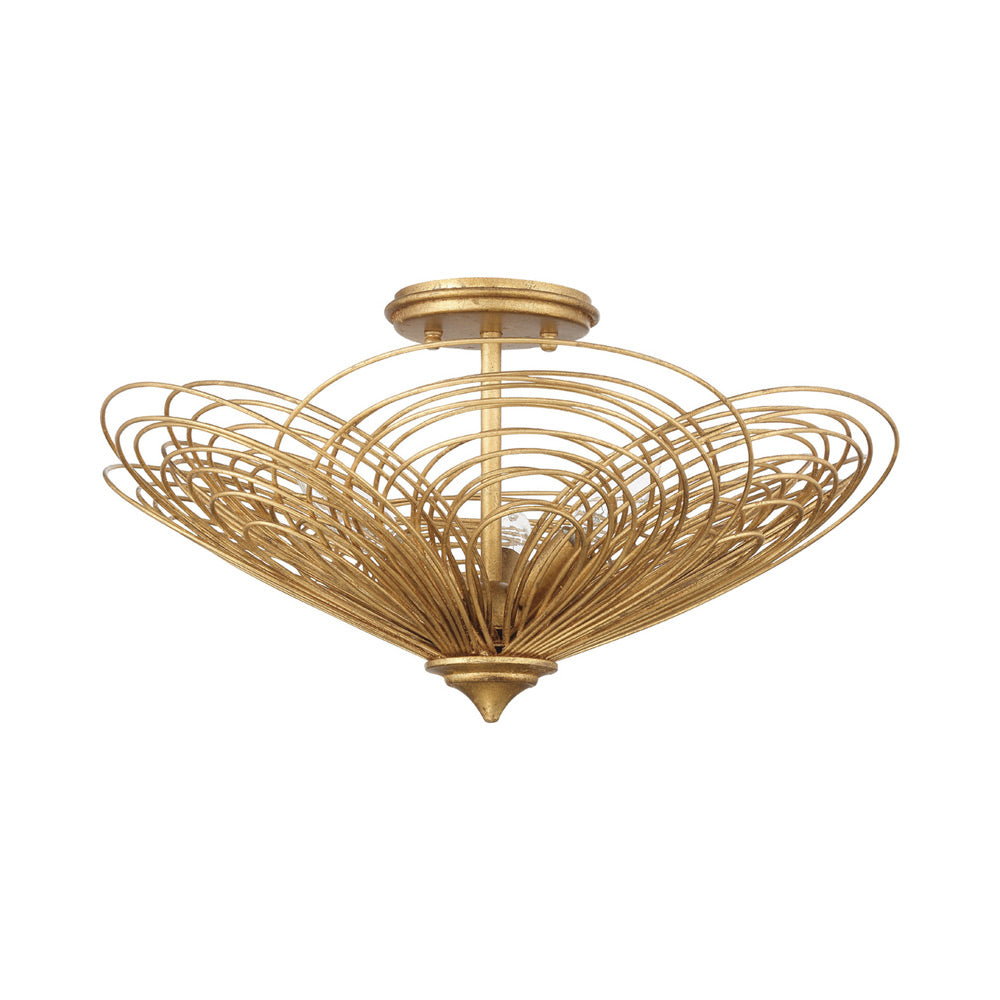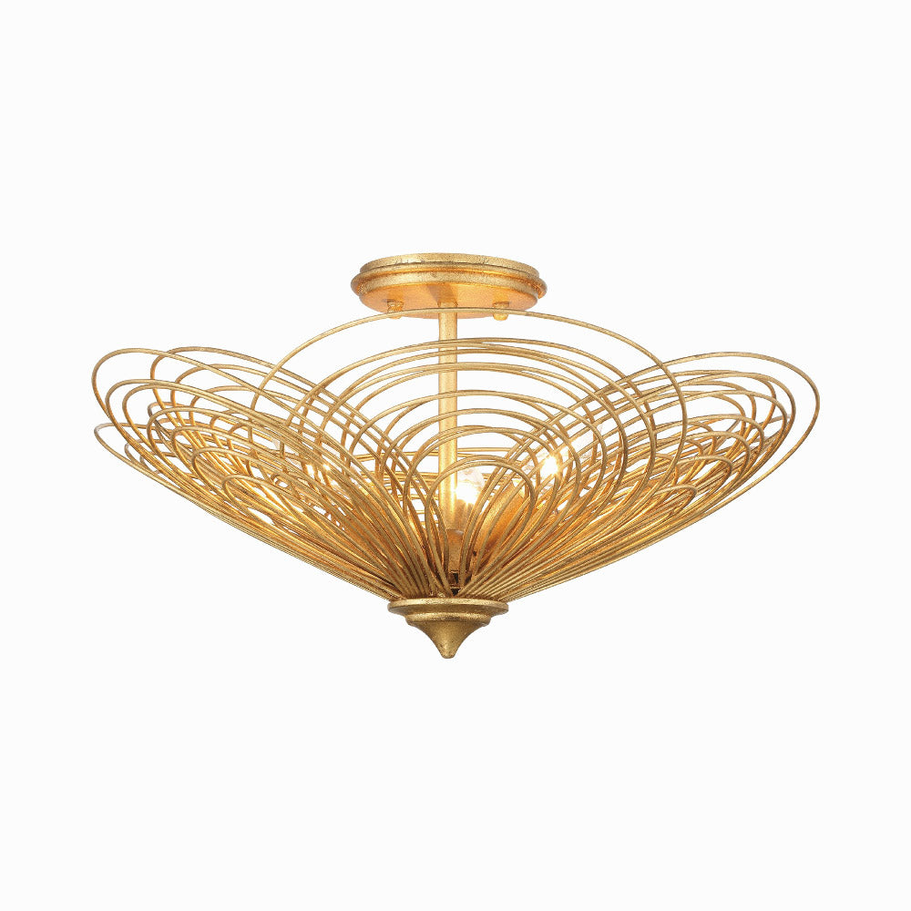 Decadence comes in subtle packages, and the Doral Semi Flush Mount Ceiling Light from Crystorama delivers. Fluid, fancy styling puts metal construction to its threshold of chic design, adding the warmth of a renaissance gold finish that radiates and captures the heart of a foyer or dining space.