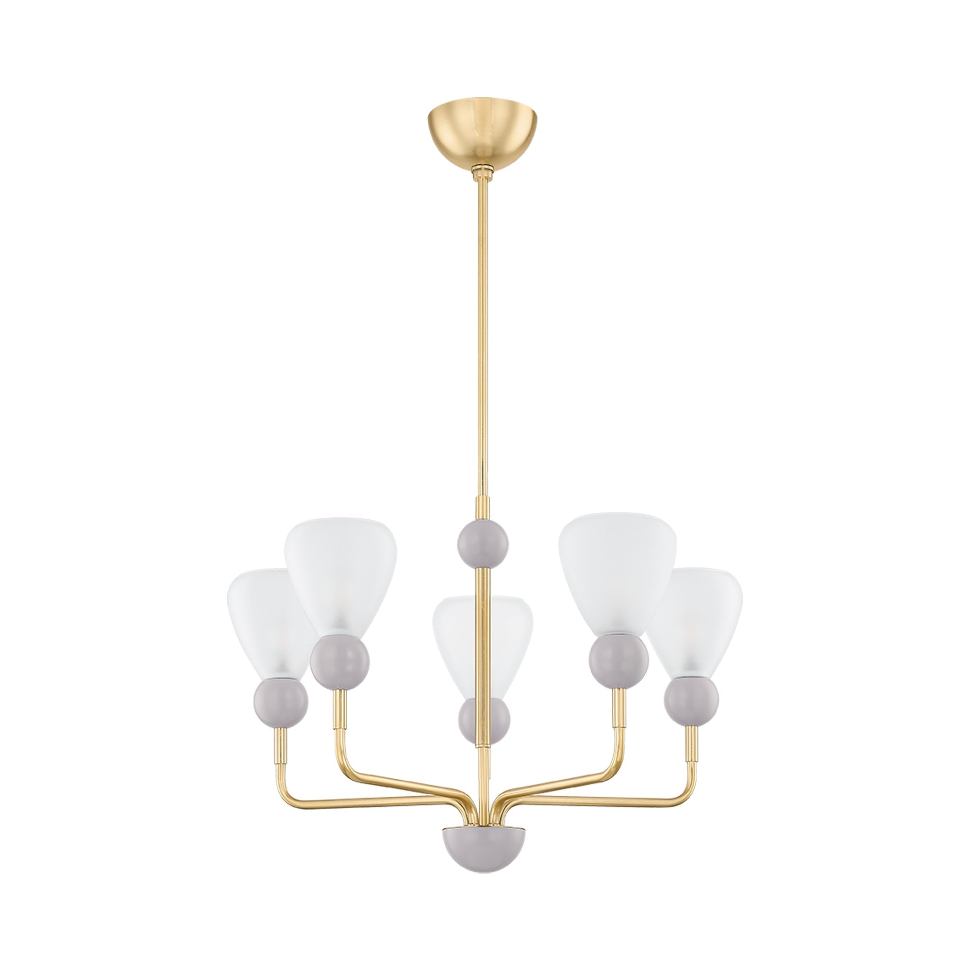 Begin an adventure in silhouetting and chic, delicate grace as you choose custom lighting. The Doreen Chandelier from Mitzi brings a gallery vibe with its alluring shape in metal framing, warm and inviting with an aged brass finish. Painted peignoir ball details and etched matte glass diffusers reinforce the artisan inspiration of a decadent chandelier waiting for perfect placement.