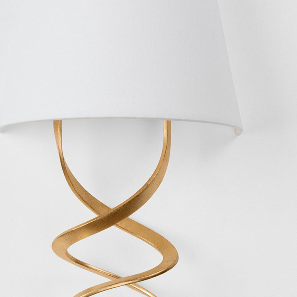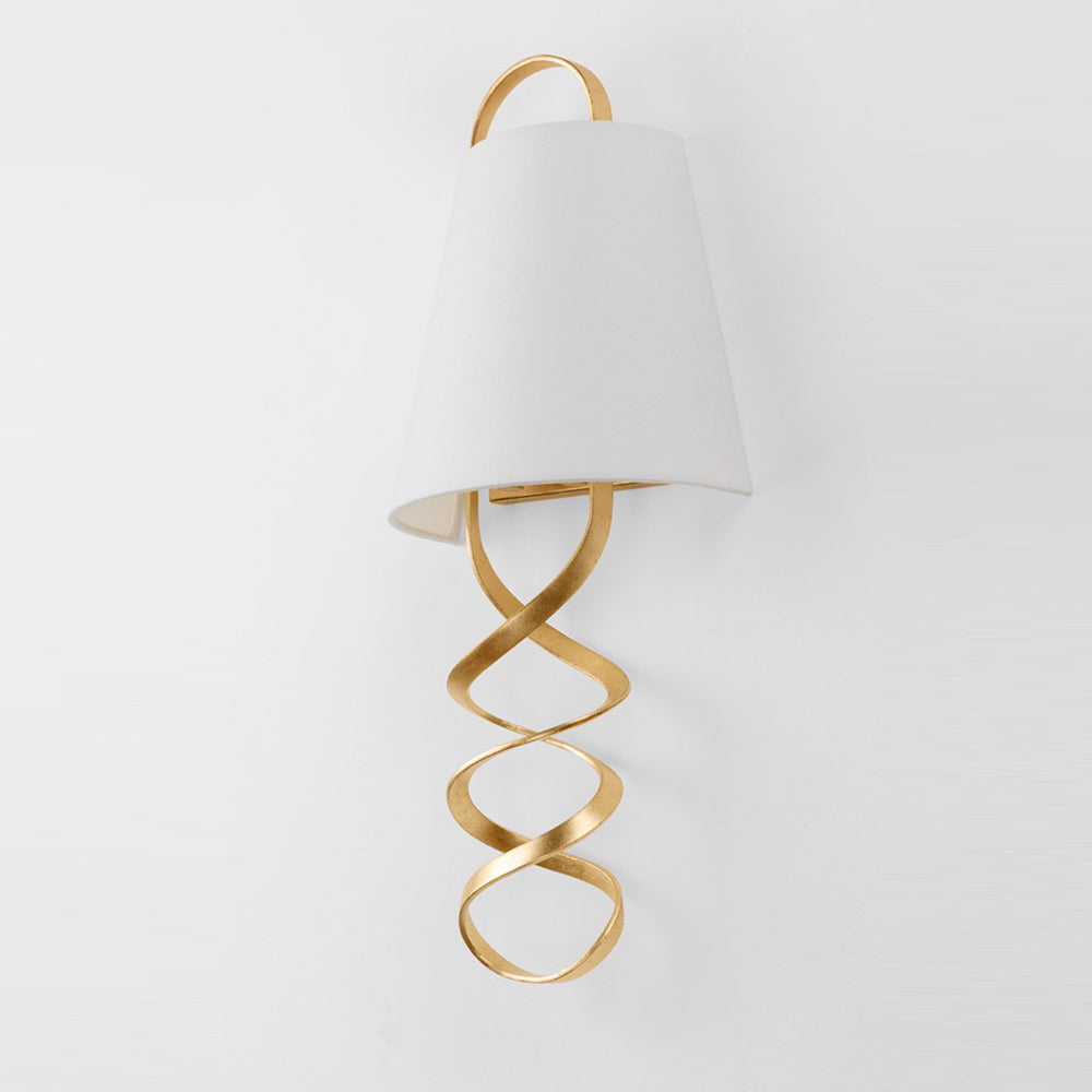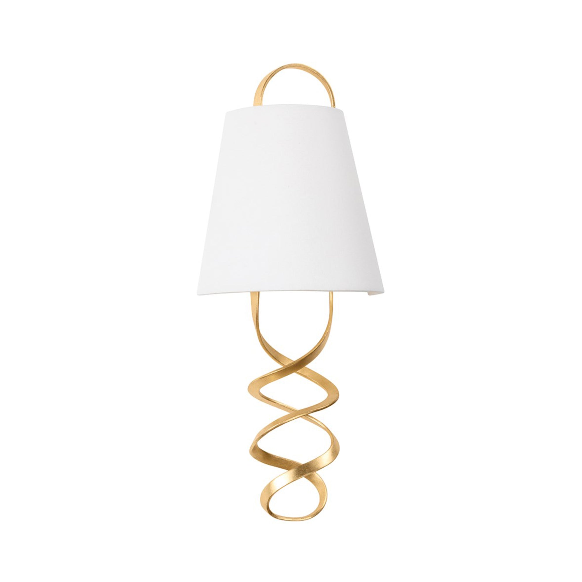 Charming playful mood enhancement follows a curvy silhouette that defines the Dota Wall Light from Hudson Valley Lighting. Metalwork with a serpentine weave profile is inspiring as it is festive, topped with a simple white linen shade. This wall light puts a signature design stamp in a custom space.