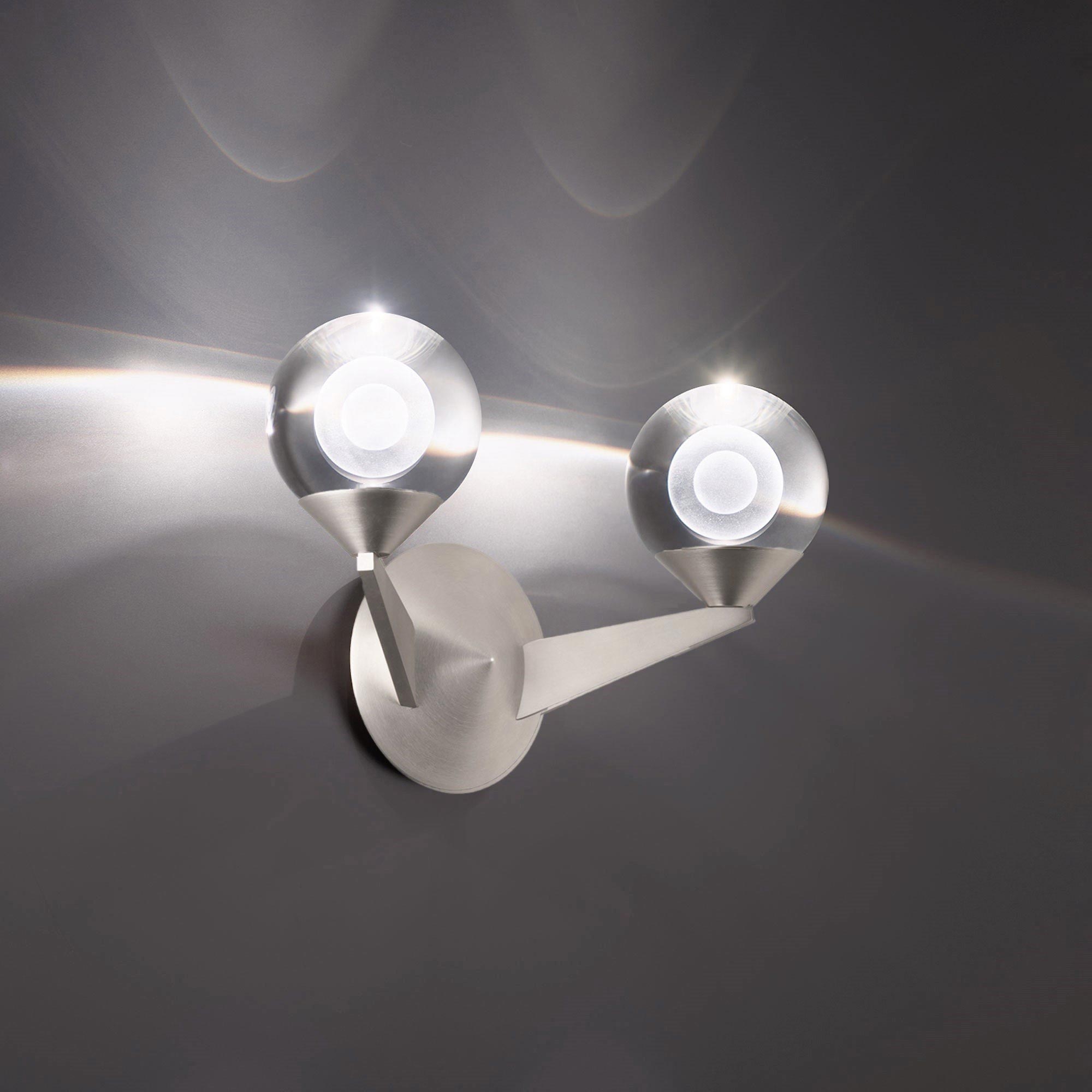 When it comes to luxurious lighting, two spheres can be better than one. These twin luminous crystal ball diffusers provide beautiful balanced light around your interior walls. Mount upwards or downwards depending on your desired look and application.