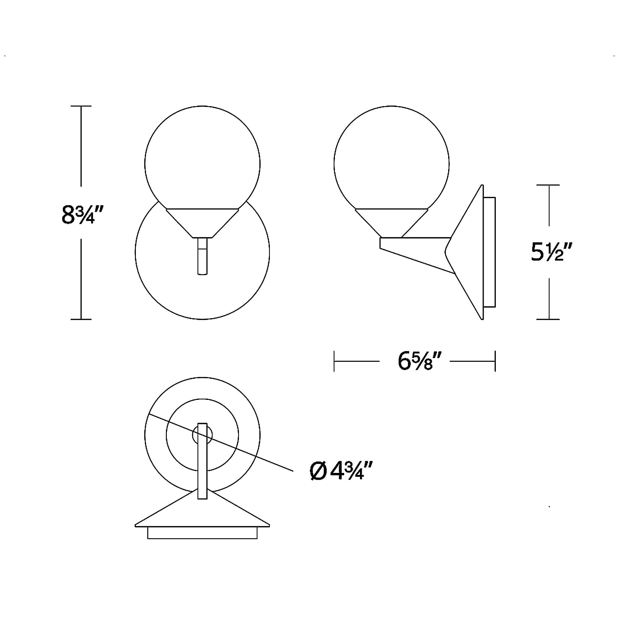 - 1-Light: 5.5"W X 8.75"H; 6.63" Extension