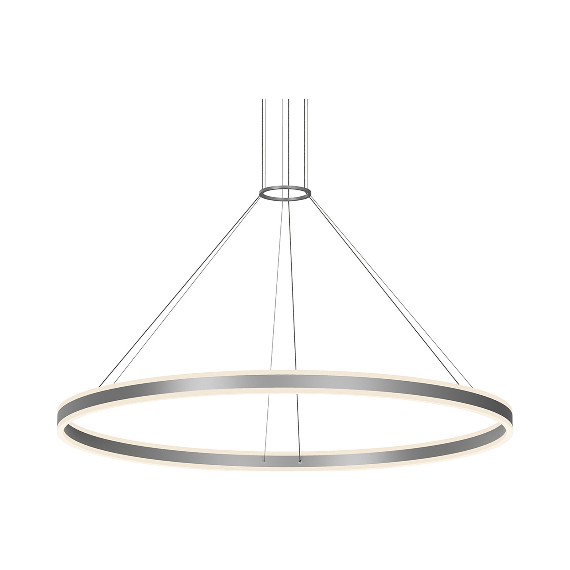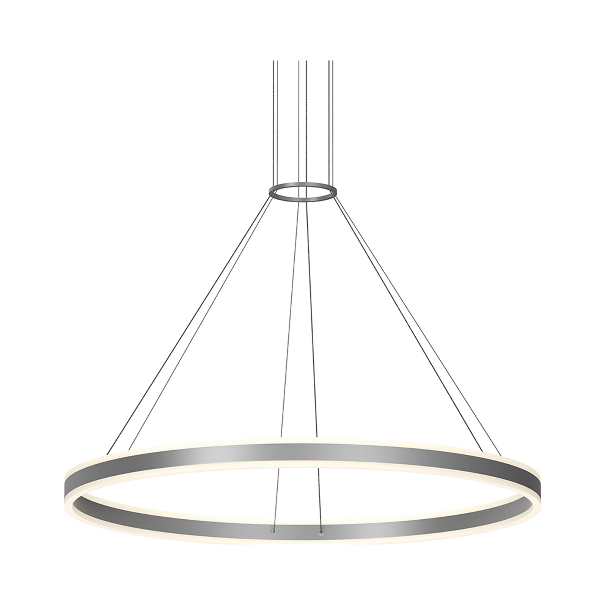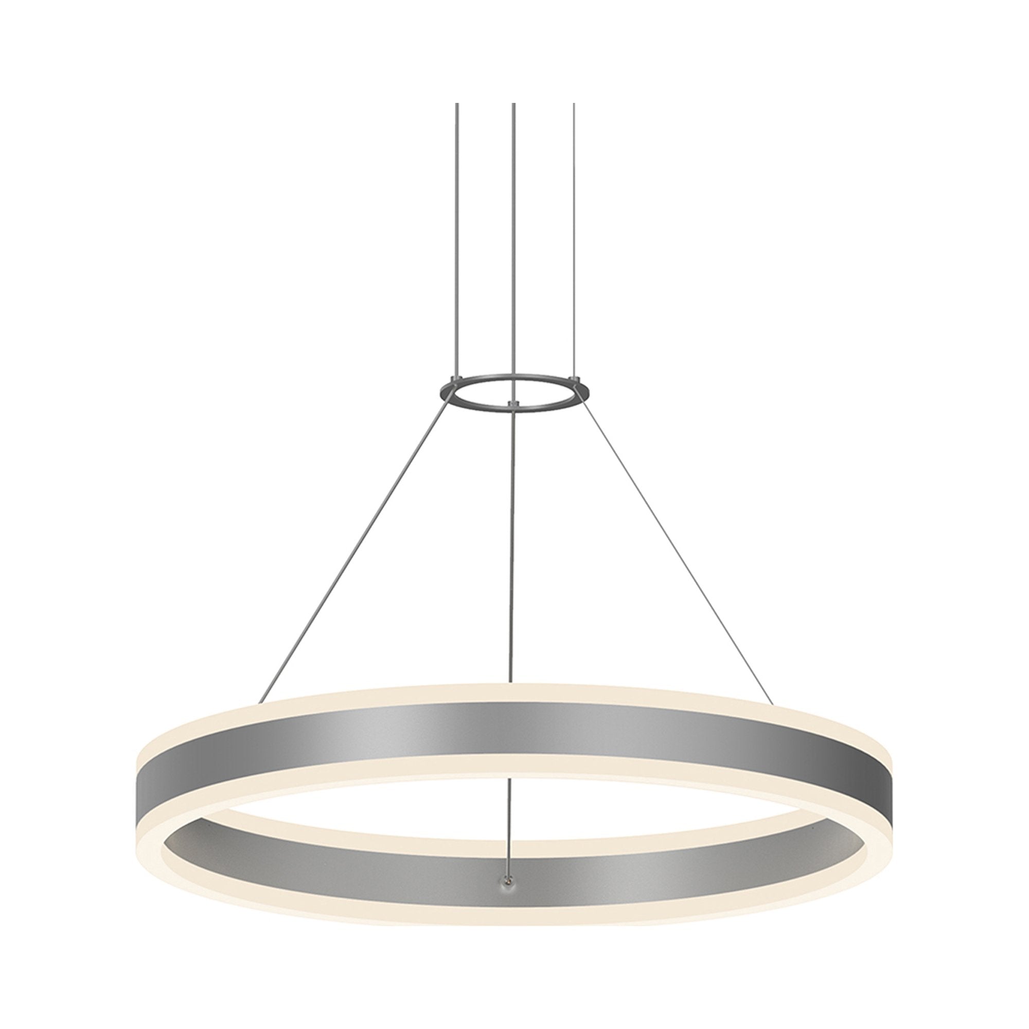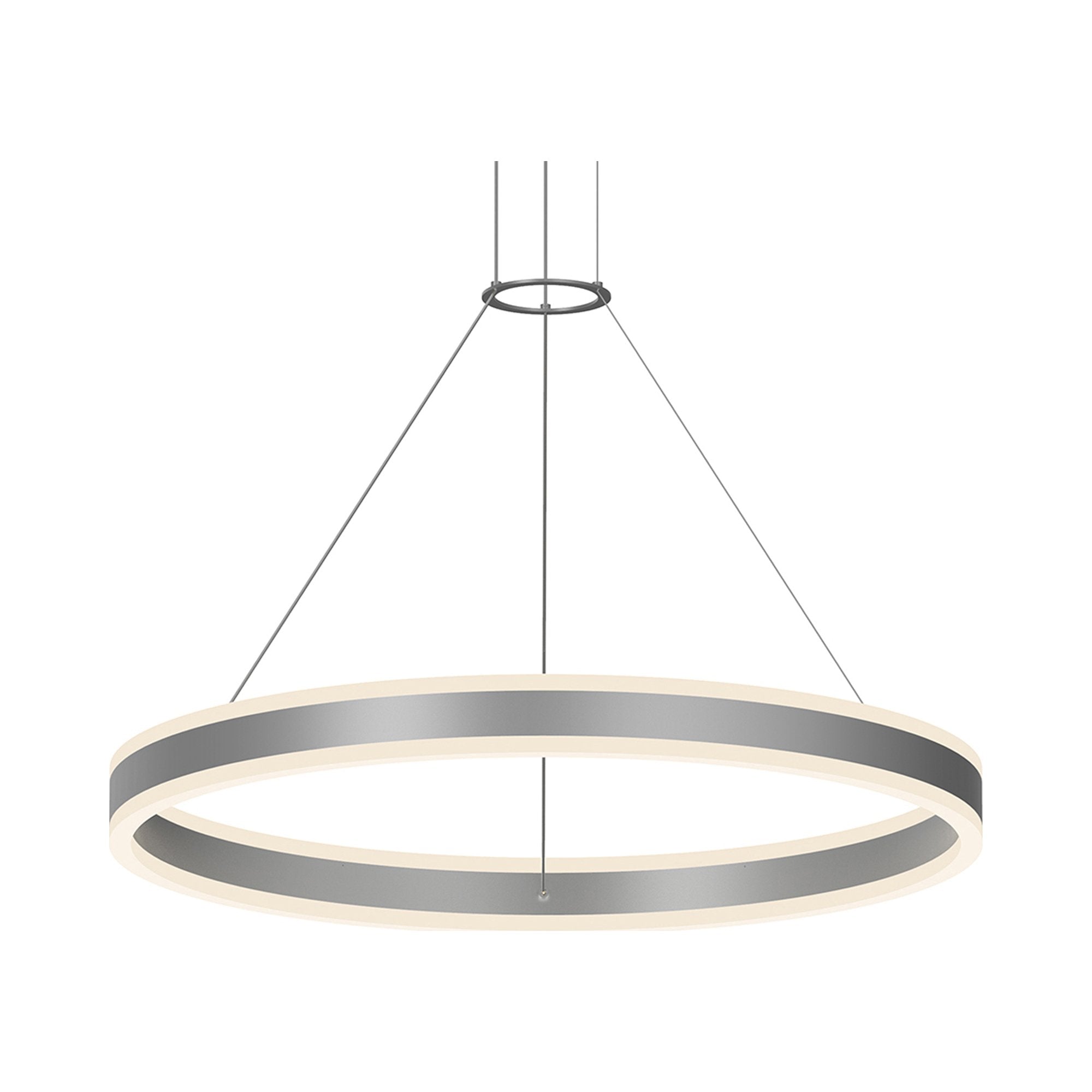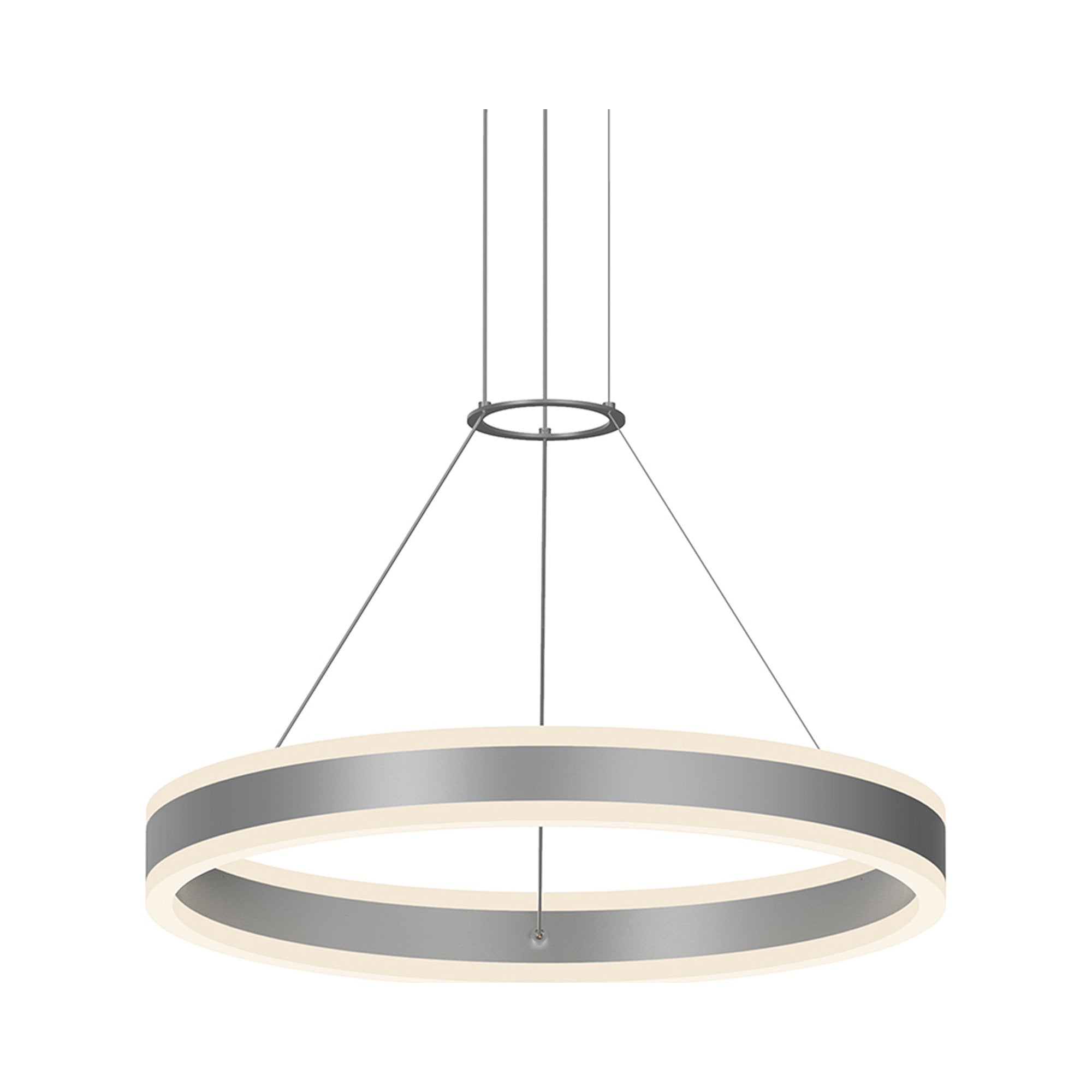 An endless circle defines the durable design power of the Double Corona™ Ring LED Pendant Light from Sonneman Lighting, a chic, dimmable fixture featuring a round aluminum frame and frosted acrylic differs at each end, suspended in a geometric fashion to suggest an ultra-modern motif.