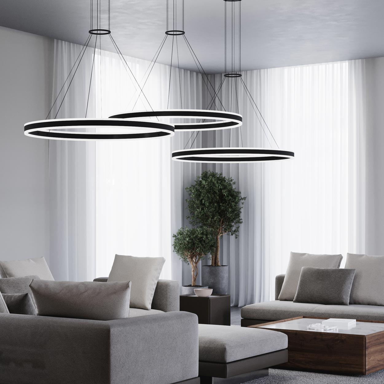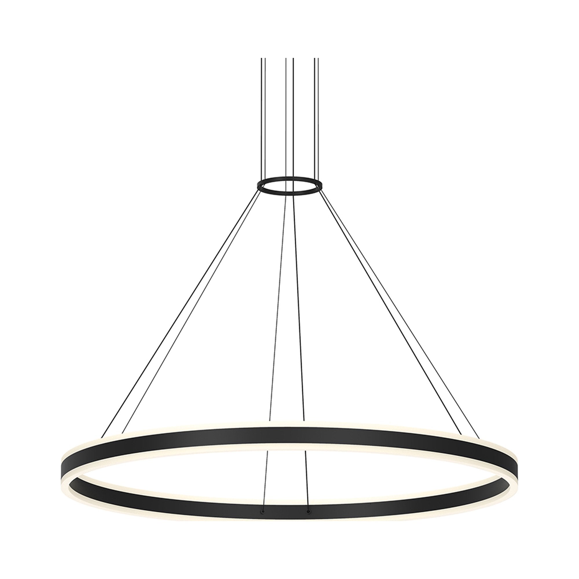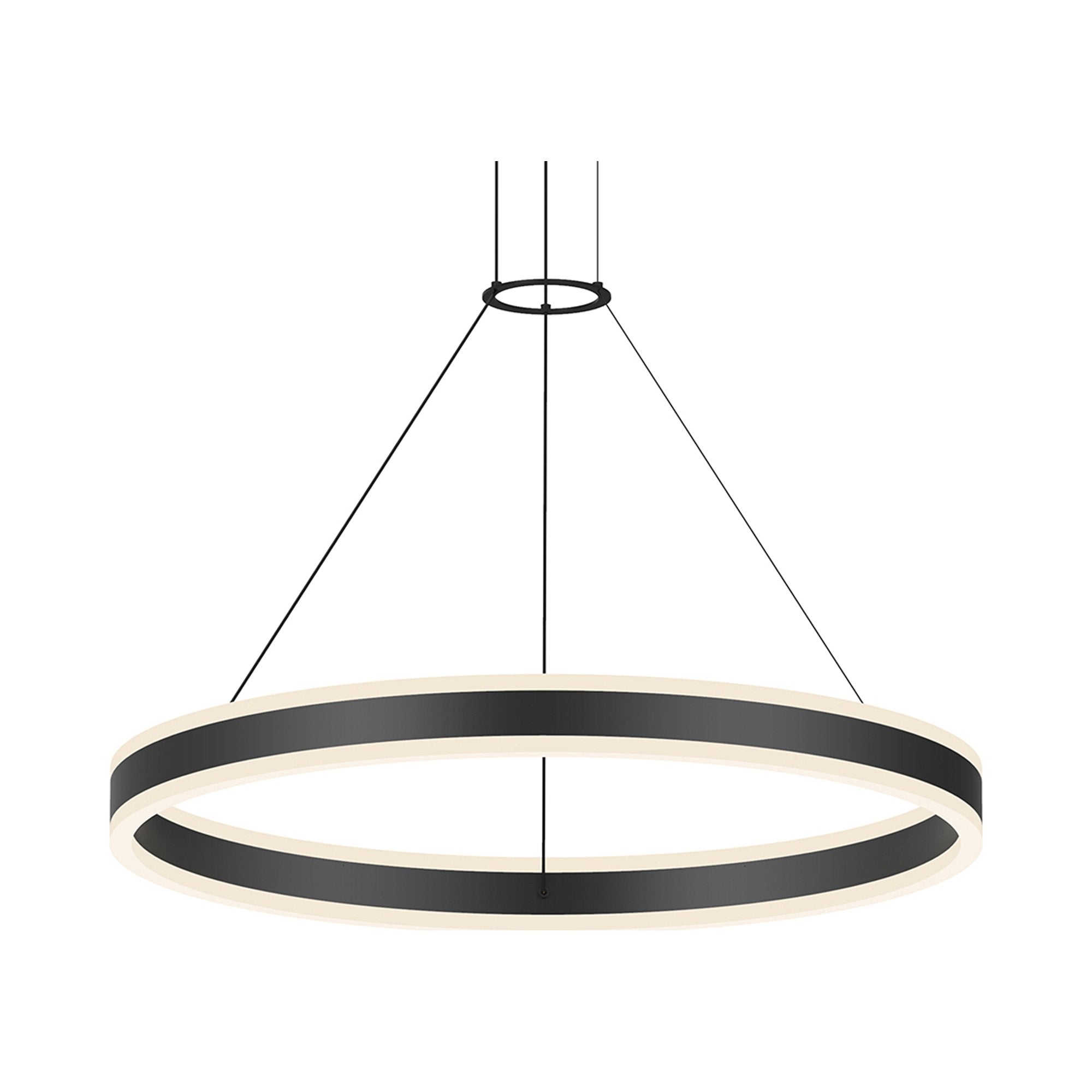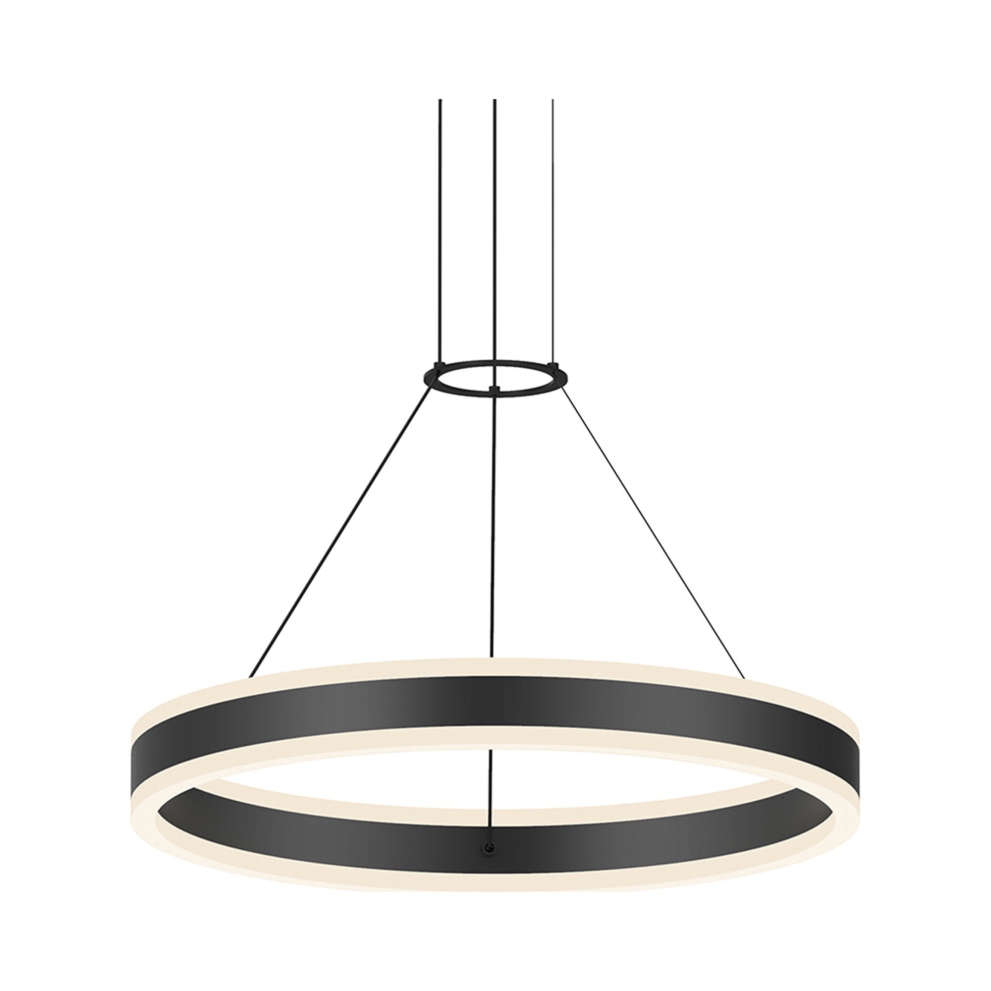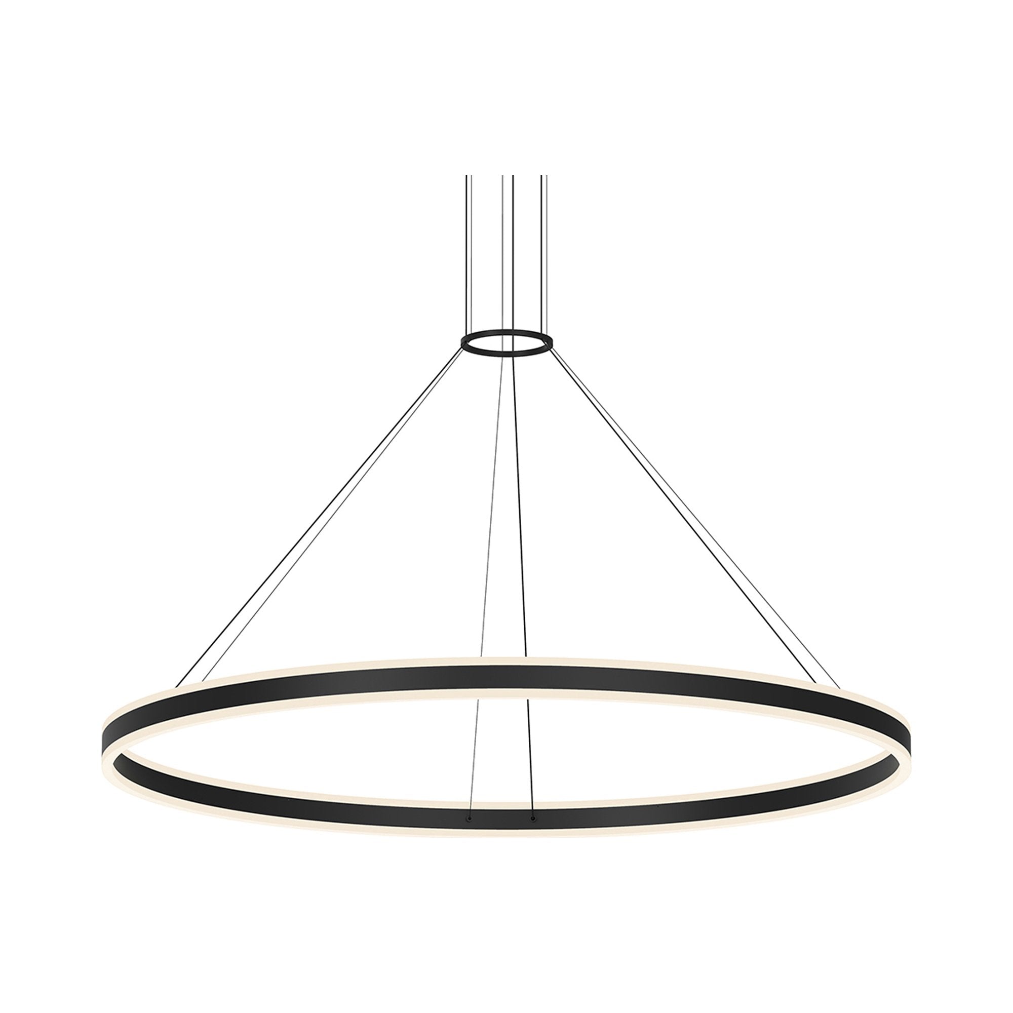 An endless circle defines the durable design power of the Double Corona™ Ring LED Pendant Light from Sonneman Lighting, a chic, dimmable fixture featuring a round aluminum frame and frosted acrylic differs at each end, suspended in a geometric fashion to suggest an ultra-modern motif.