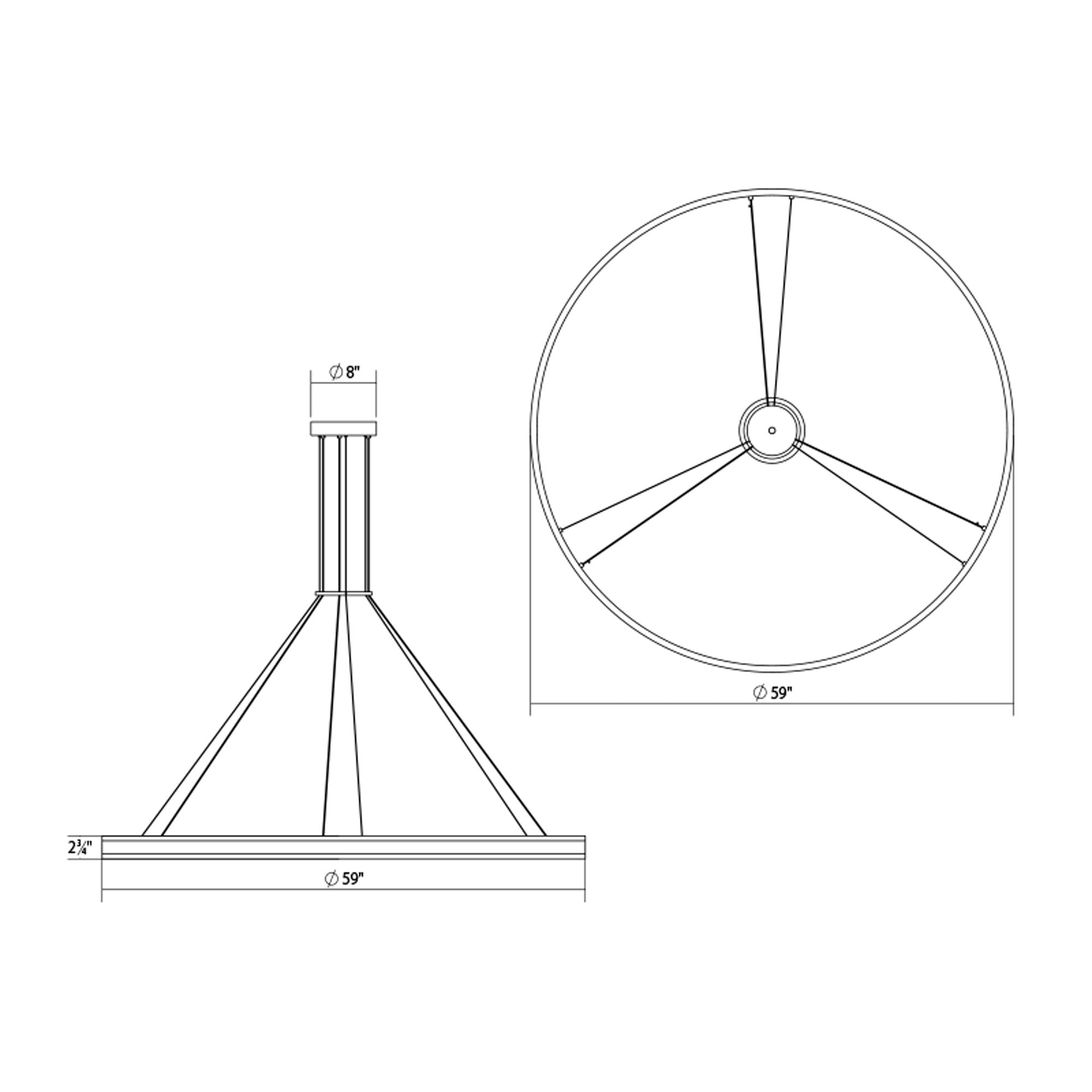 - Fixture Dimensions: 59"D X 2.75"H; 65" max height