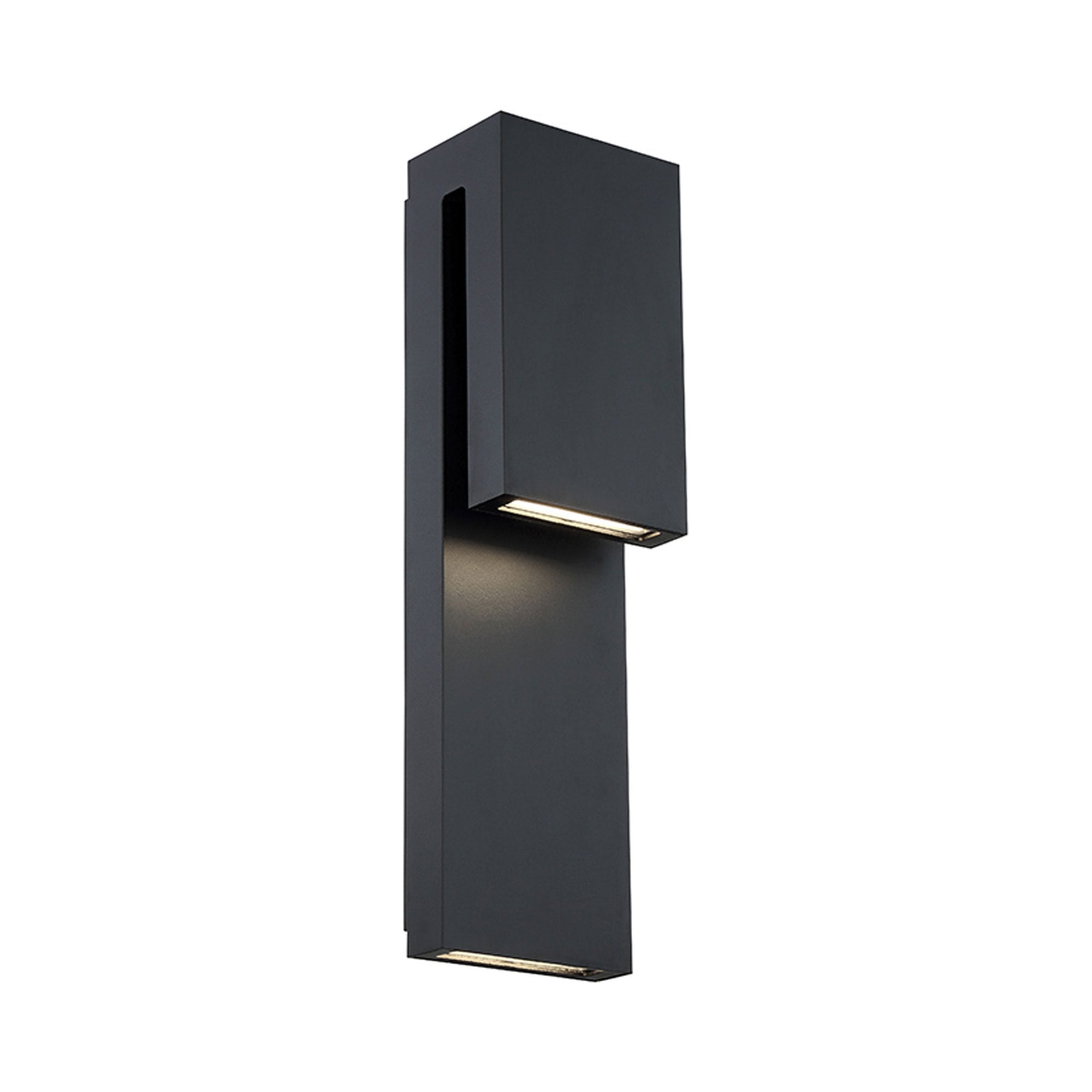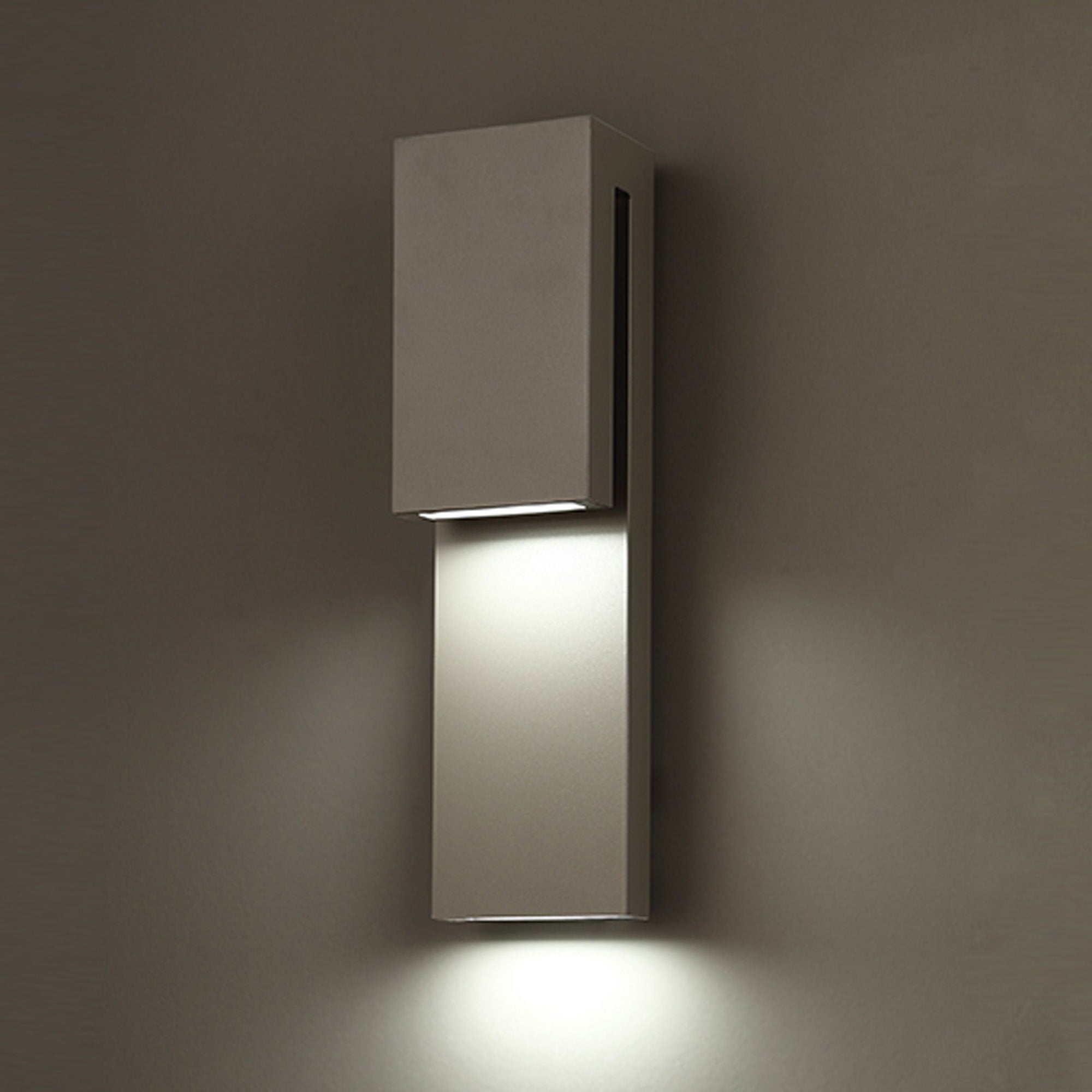 Two thin planks of precisely wrought aluminum are stacked against each other on this smart exterior sconce, a welcoming luminaire when placed at the entrance to a hotel or modern home. Its clean, simple profile and understated finishes achieve peak minimalism, while the cutting-edge LEDs inside are top of the line for powerful, energy-efficient, long-lasting illumination. With this luminaire, the odds are definitely in your favor.