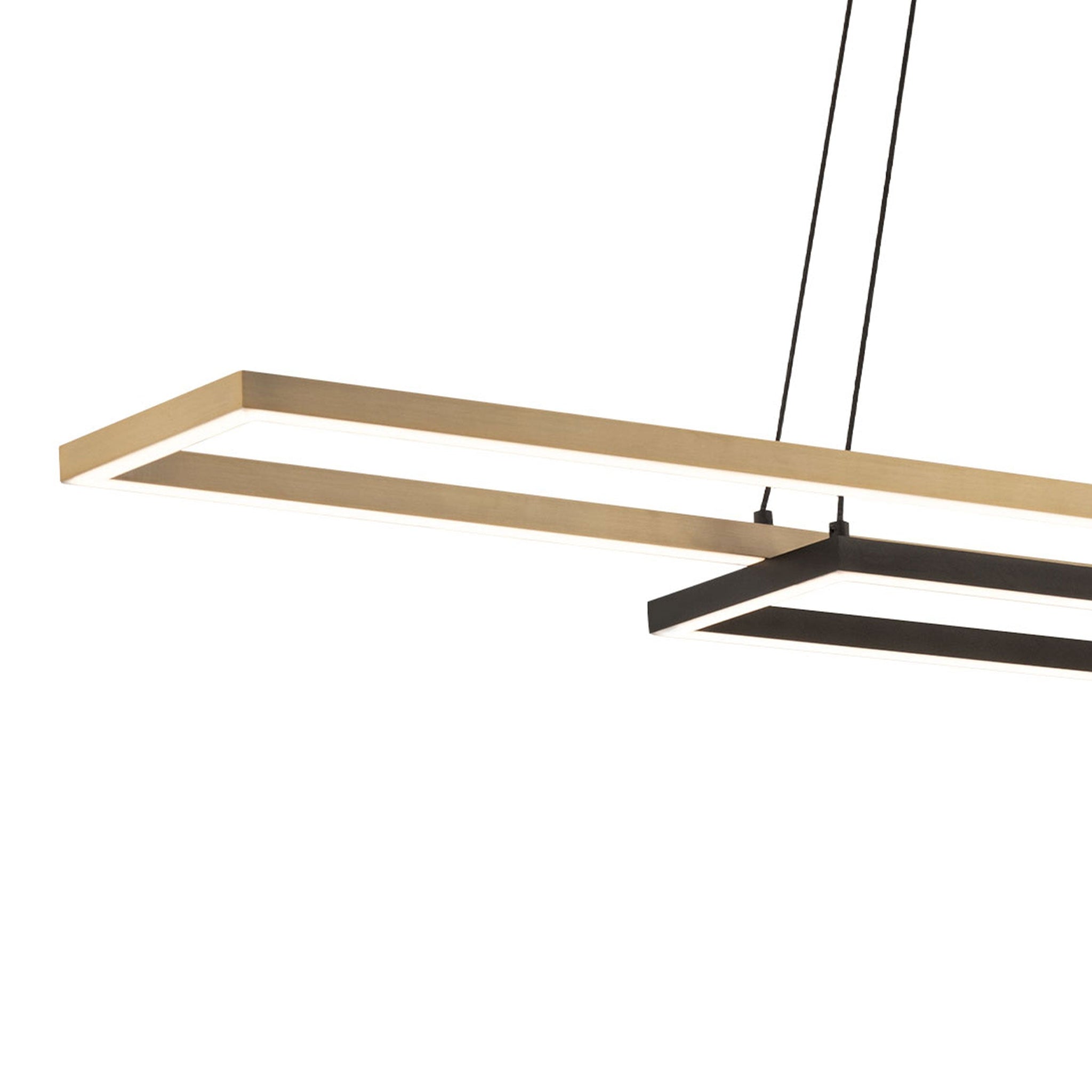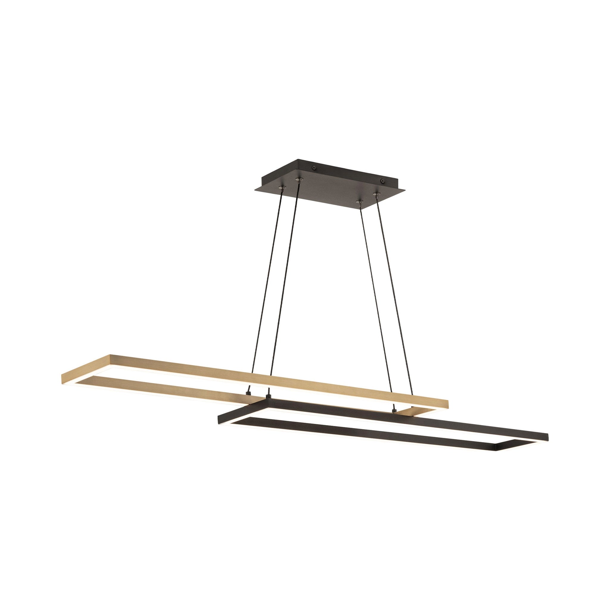 Architecture weaves its way into a lighting fixture with a minimalist look yet maximal style. The Double Entendre LED Pendant Light from dweLED emits open-space conceptualization and perfects it with a mix of aged brass and black finishes coating overlapping rectangular aluminum frames. Adjust the height of either or both with included low-profile aircraft cables offering a clean look.