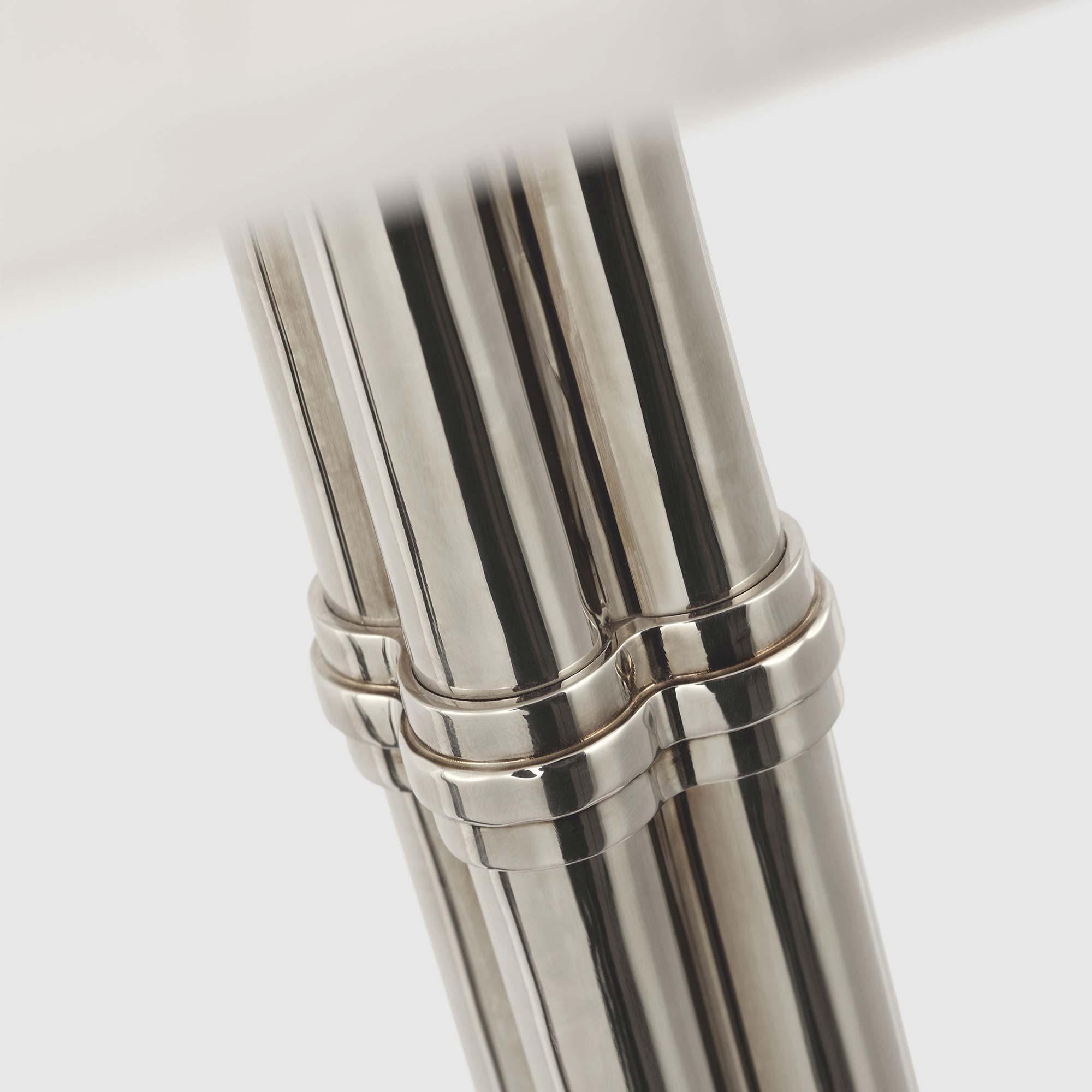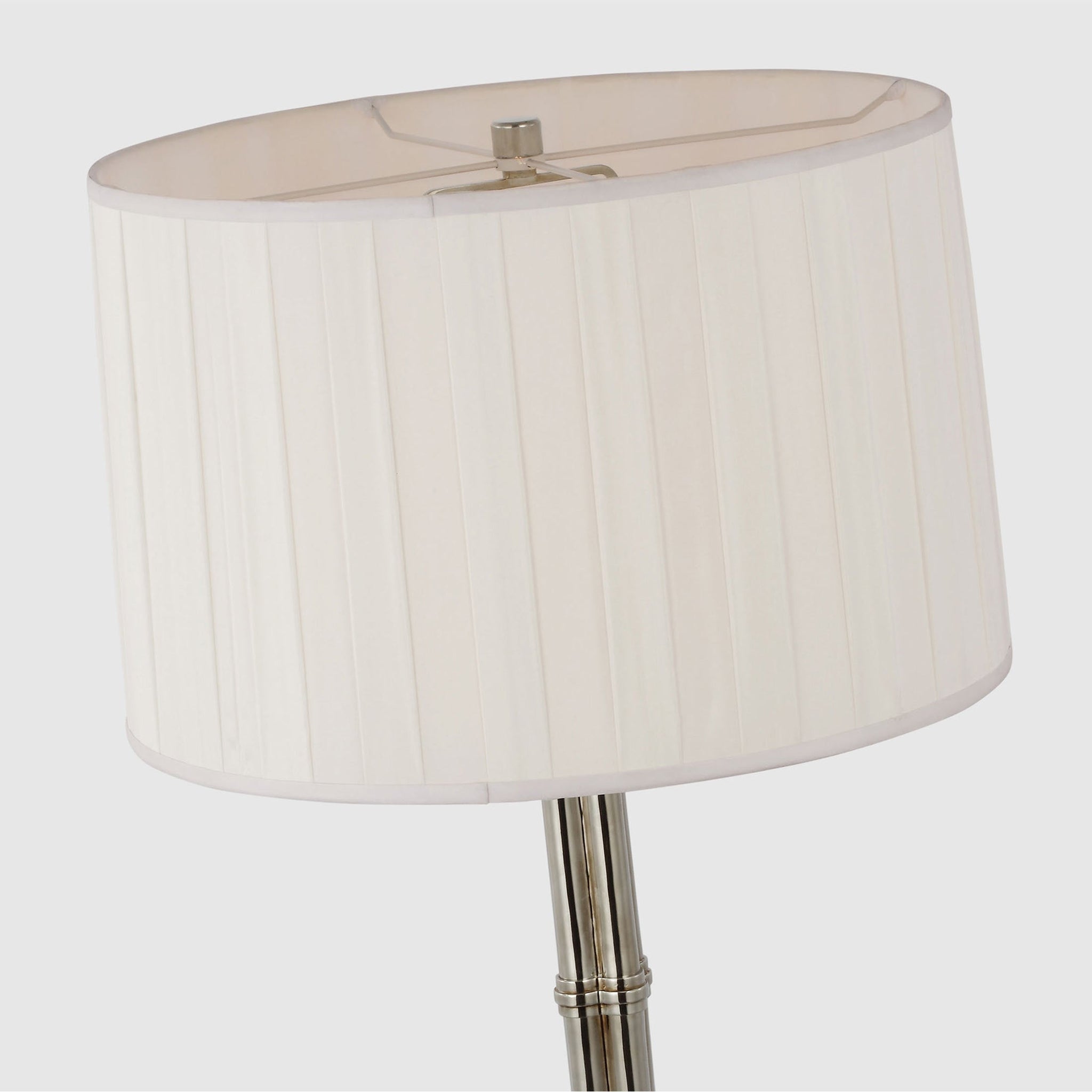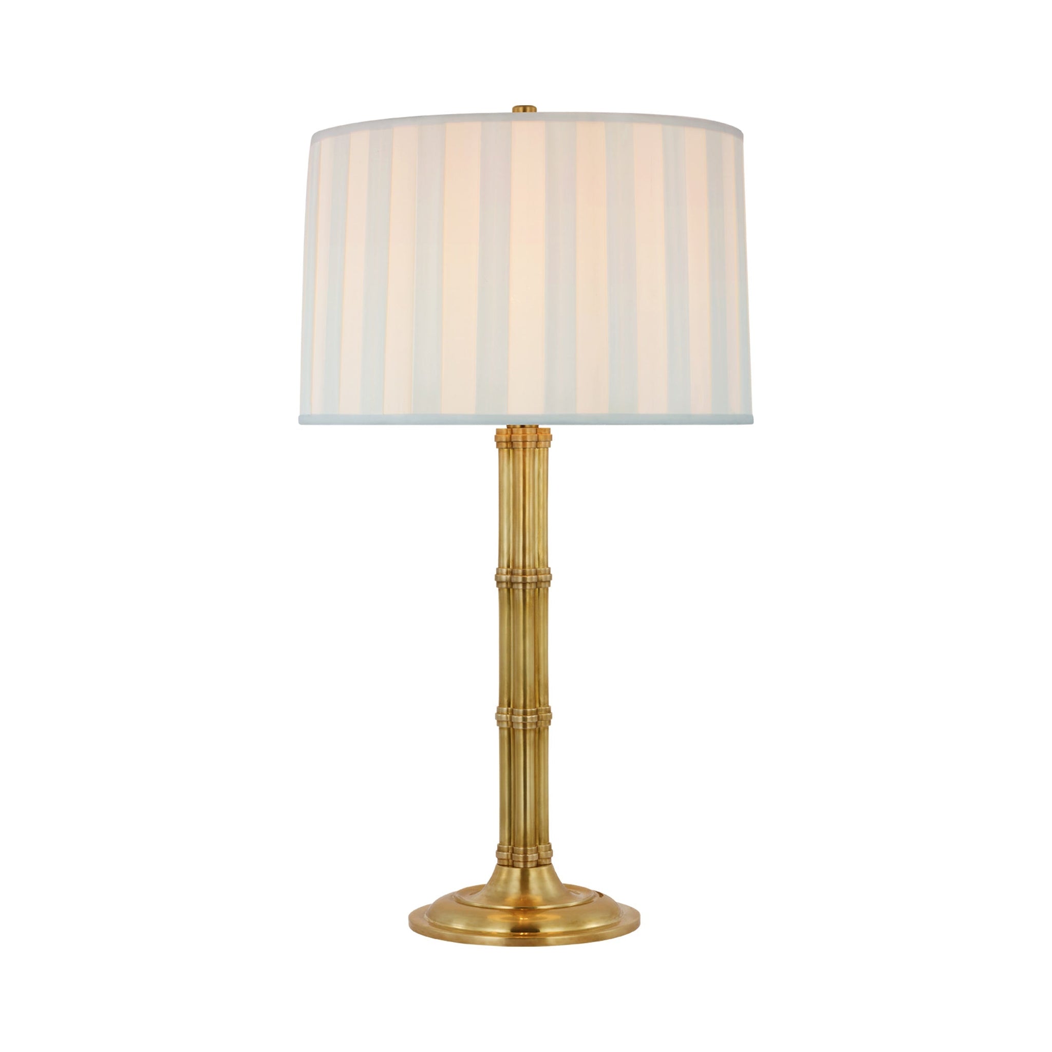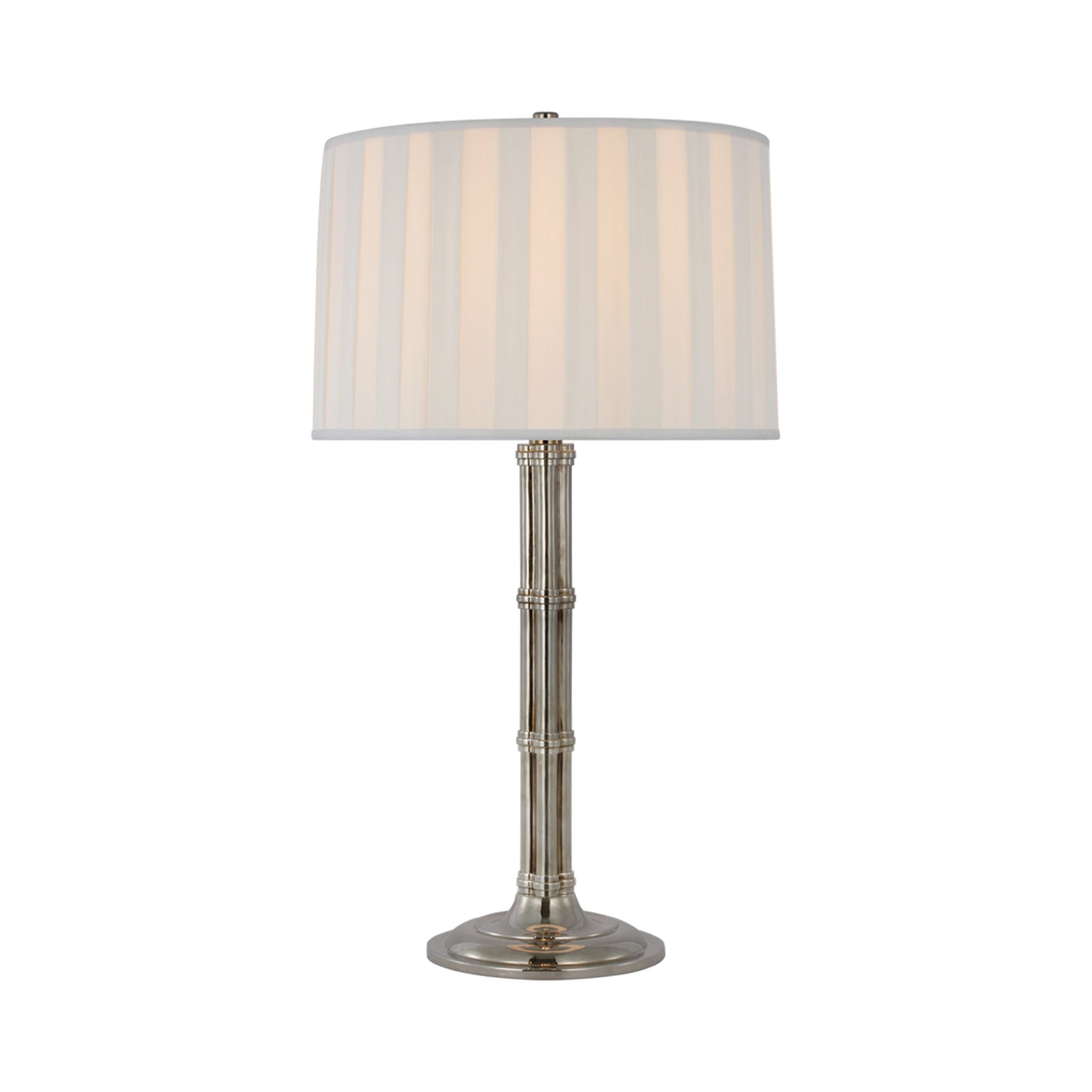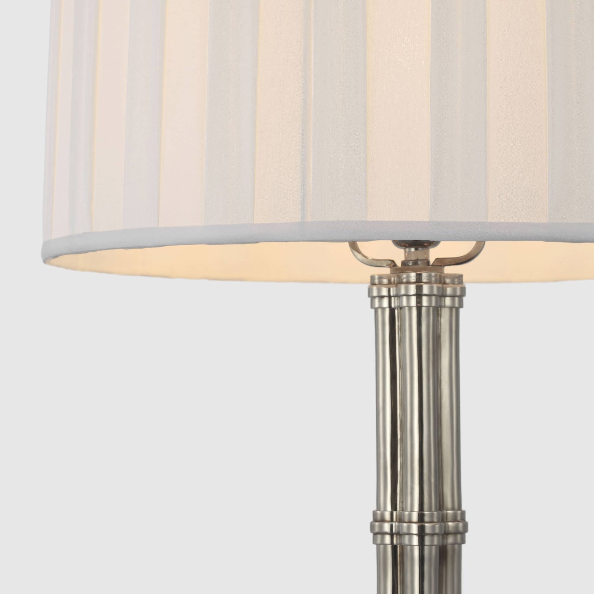Textural glam creates a distinguishing aesthetic as the Downing Table Lamp from Visual Comfort Signature reflects a sophisticated choice of interior lighting. End tables, consoles, and nightstands welcome this elegant lamp with articulated metal framing, sleek and noteworthy. A pleated silk box shade puts finishing touches on an already statement-making lamp.