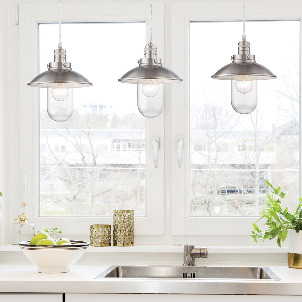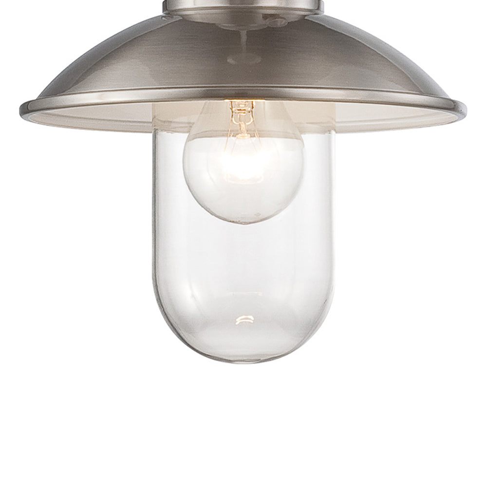 An old-time banker’s light serves as the foundational design aesthetic for a simple yet sweet fixture. Send warm illumination around a living space or dining nook with the Downtown Edison Mini Pendant Light from Minka Lavery and indulge in the iconic vintage vibe that exudes heritage. Traditional with a brushed nickel finish metal dome shade and accents, this charming mini pendant adds a classically exposed bulb to elongate its shapely silhouette.