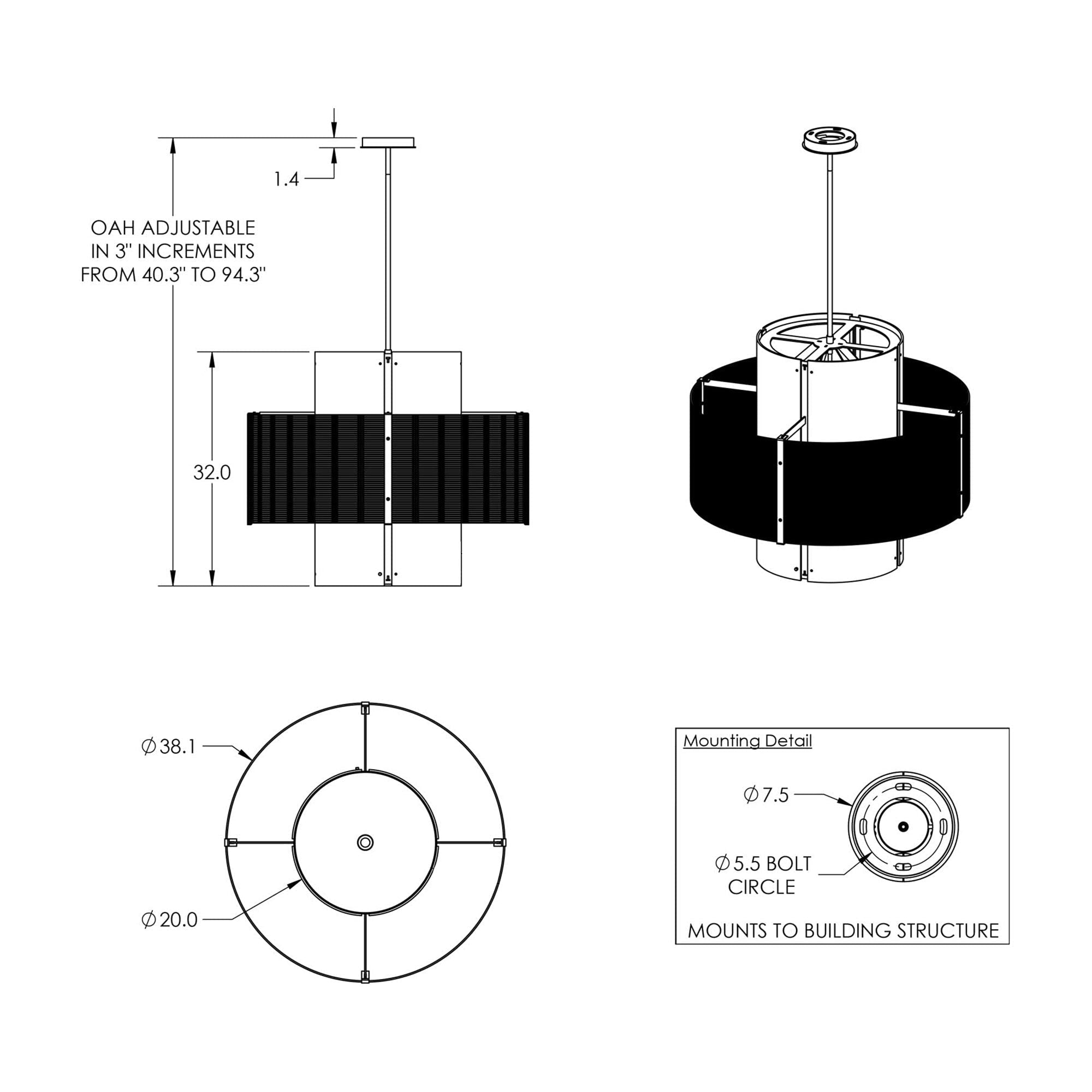 - 38.1-Inch: 8 X 60W 120V E26(medium base) A19 incandescent lamps (not included)