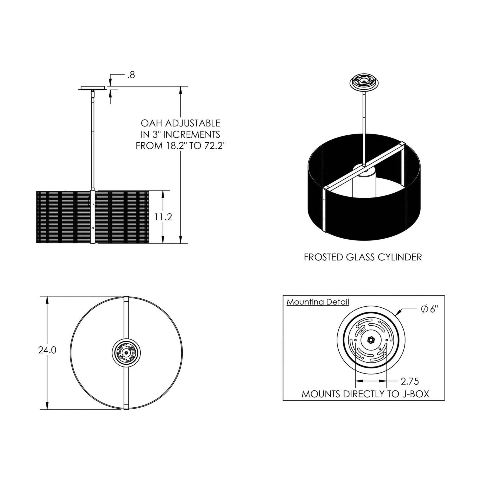 - 24-Inch: 24"D X 18.2"H; 72.2" max height