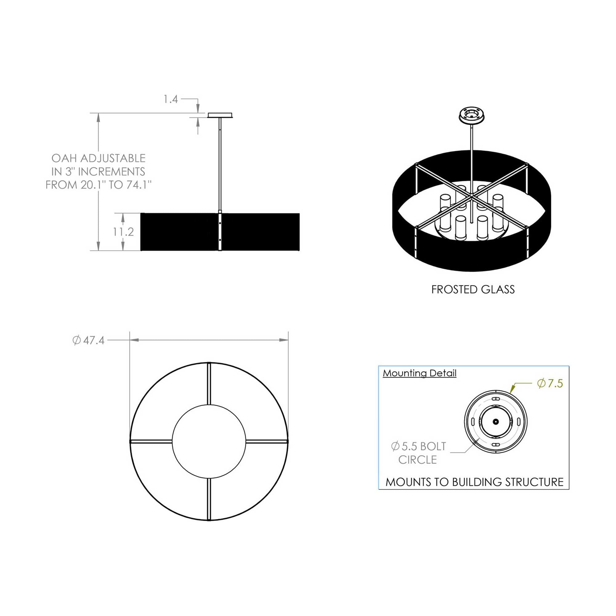 - Incandescent: 8 X 60W 120V E26(medium base) Type B incandescent lamps (not included)