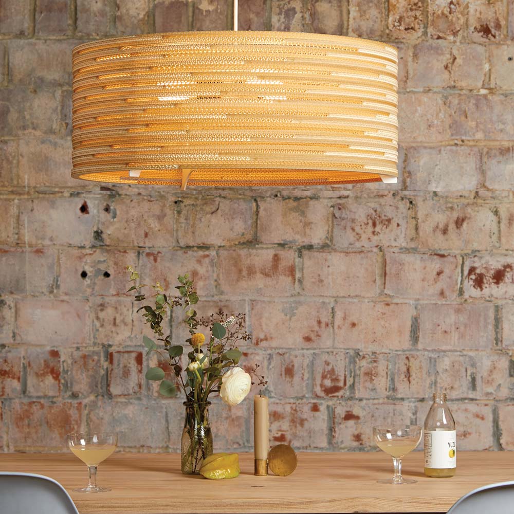 Sustainable artistry reflects a new approach to sensible and stylish interior design, beginning with a most basic function. Lighting in a casual space becomes a focal point when the Drum Pendant Light from Graypants presents a chic bit of exotic style with easy elegance. A handcrafted recycled cardboard drum shade with the texturizing effect of laser-cut striping offers a captivating presentation of soft illumination that stays true to the organic feel you’re searching for.