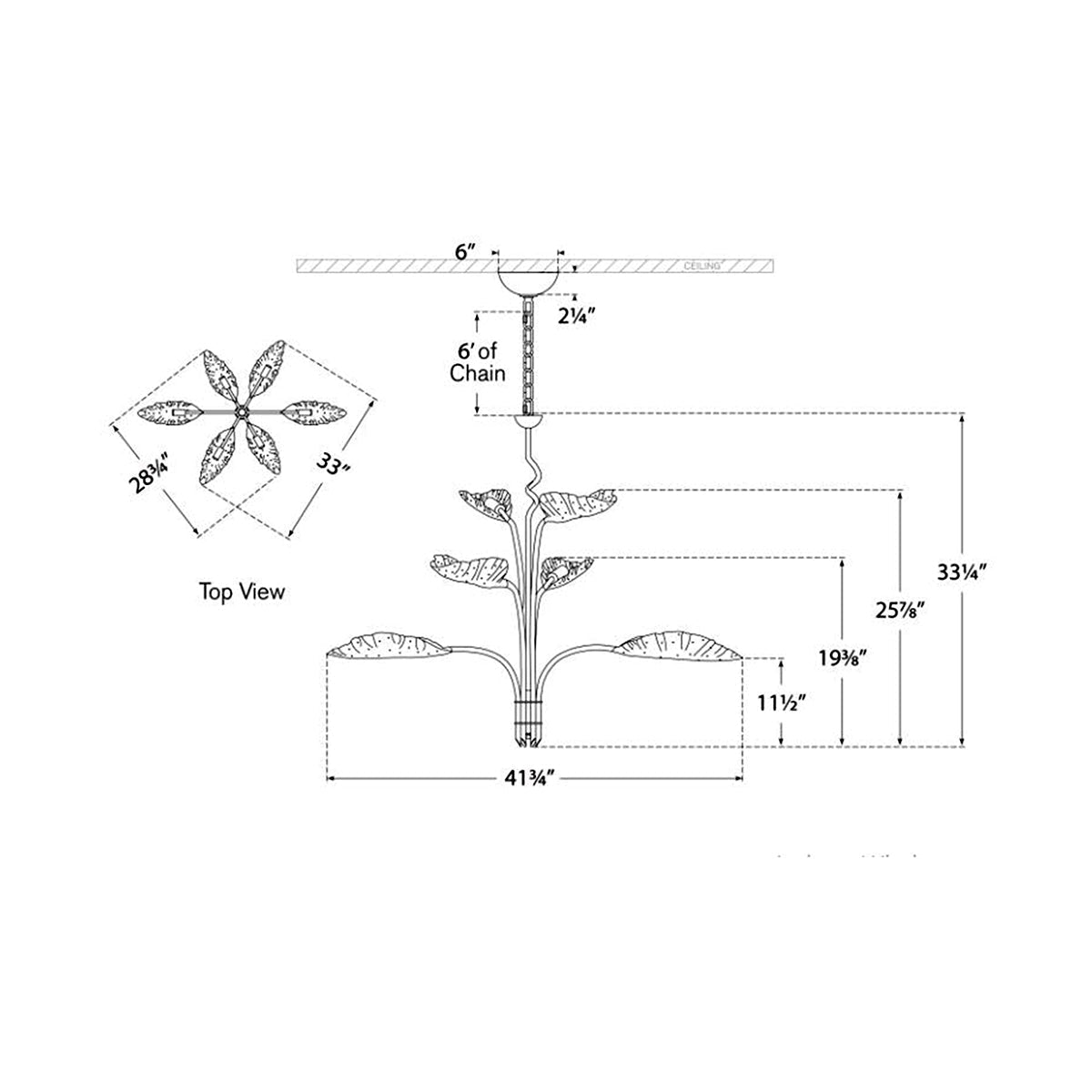 Tropical foliage creates a bold, earthy ambiance for the Dumaine Chandelier from Visual Comfort Signature. Perfect for an entry or dramatic dining space, it boasts six light that highlight beautiful texturing in each frond.