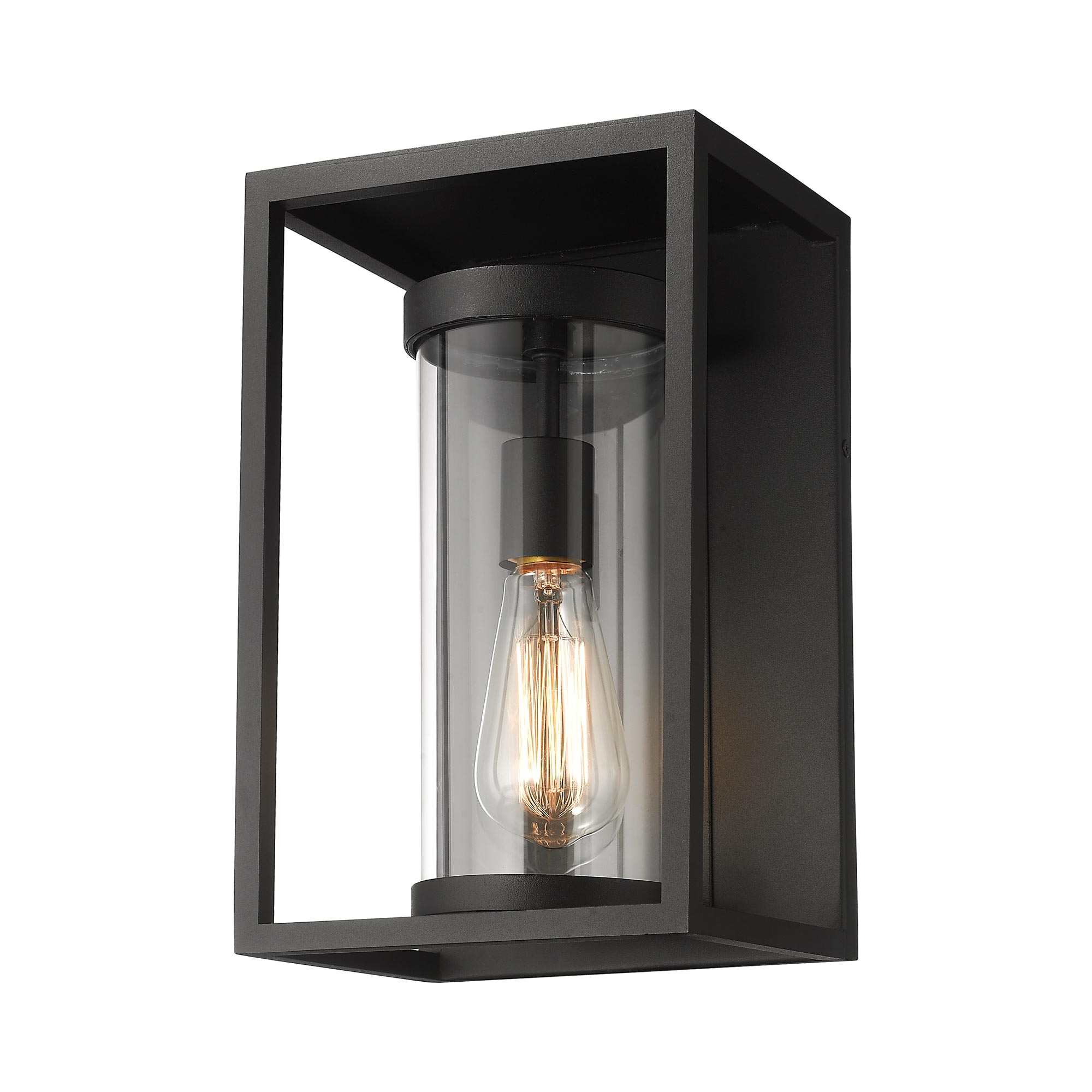 Structured with an architectural aesthetic, the Dunbroch Outdoor Wall Light from Z-Lite marries sophistication and simplicity with a boost. This elegant outside light captures the essence of a cage design with little fuss to deliver minimalism. A clever assembly of aluminum and metal and glass, this fixture expands the linear flavor of a commercial or residential structure.