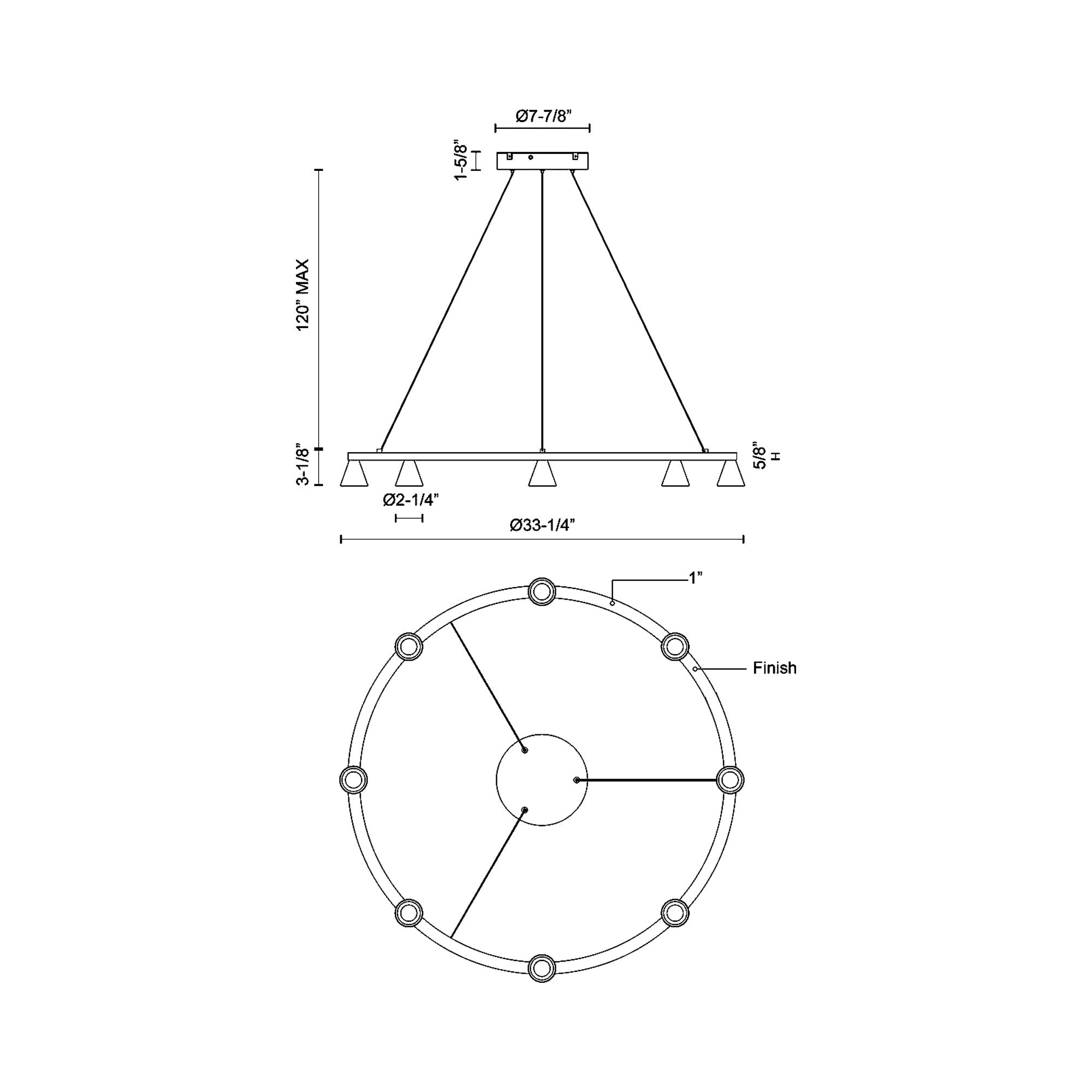 - Dimensions: 33.25"D X 3.13"H; 124.51" max height